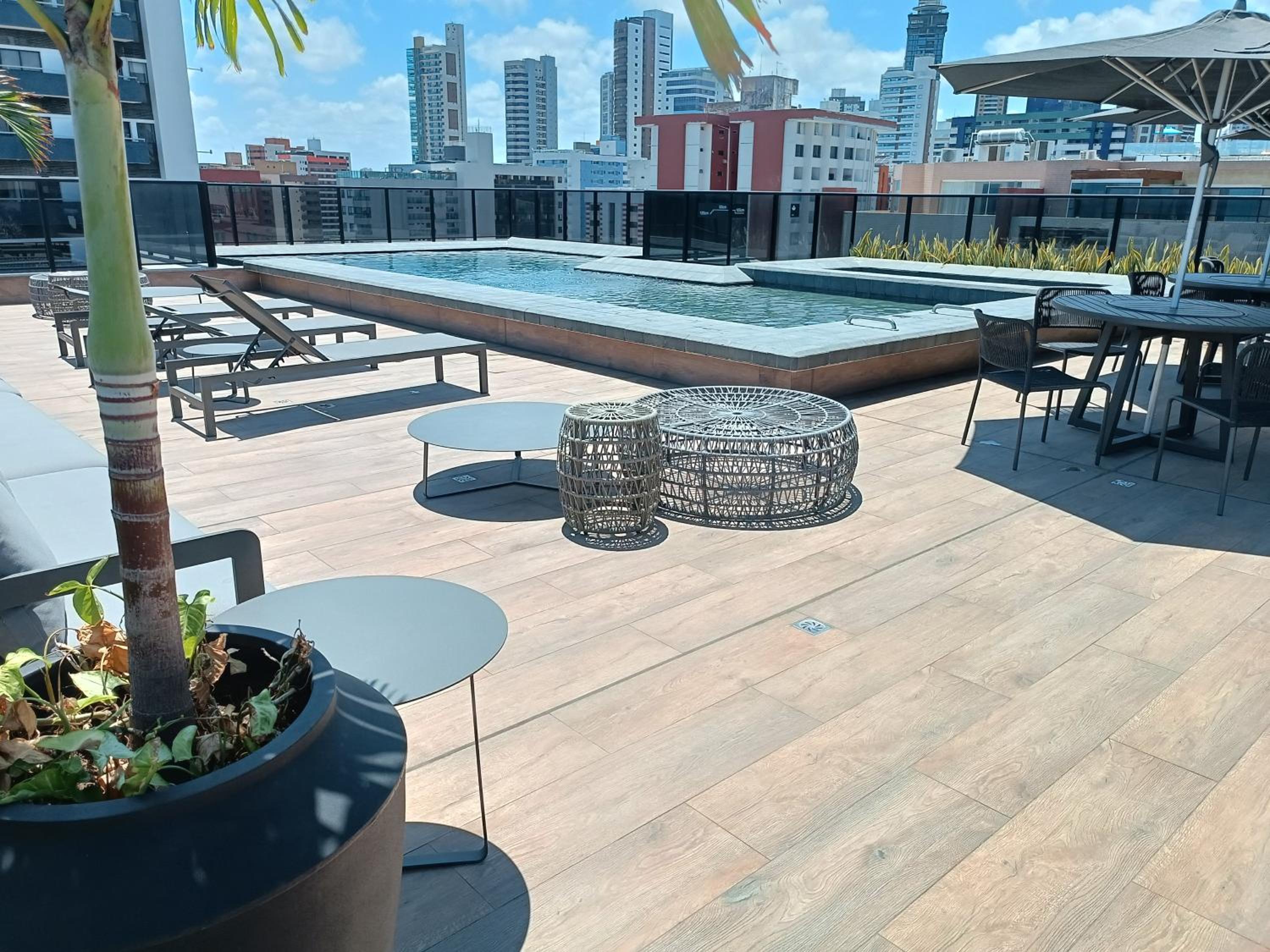 Enjoy stunning sea views while lounging by the rooftop pool at WAY Tambáu - Pé na Areia.