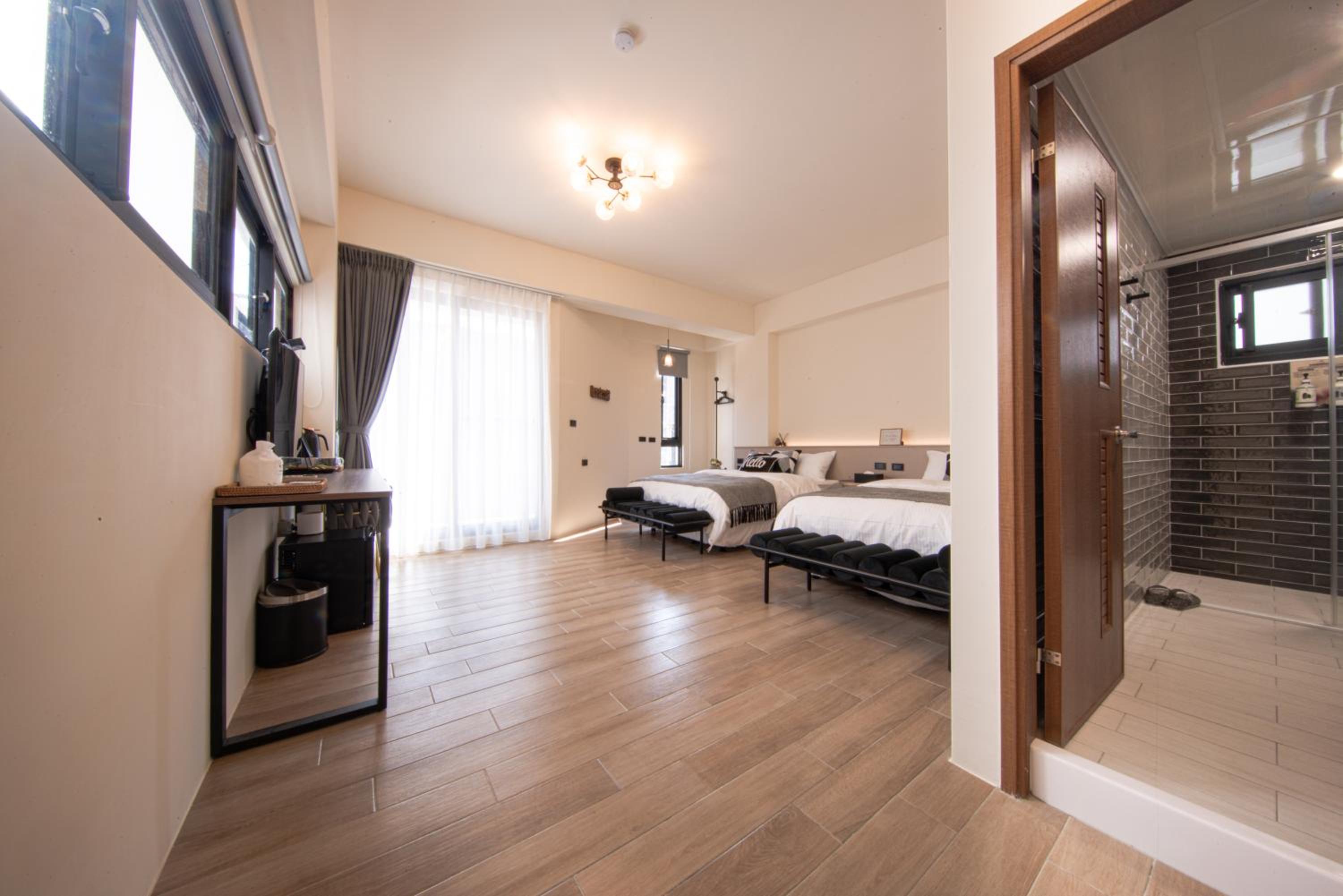 Beachfront Property with Balcony View: Enjoy a quiet street view and access to a shared lounge at 沐暮MooMoo in Magong. Experience the beauty of Penghu from the comfort of a beachfront property with a balcony and free WiFi.