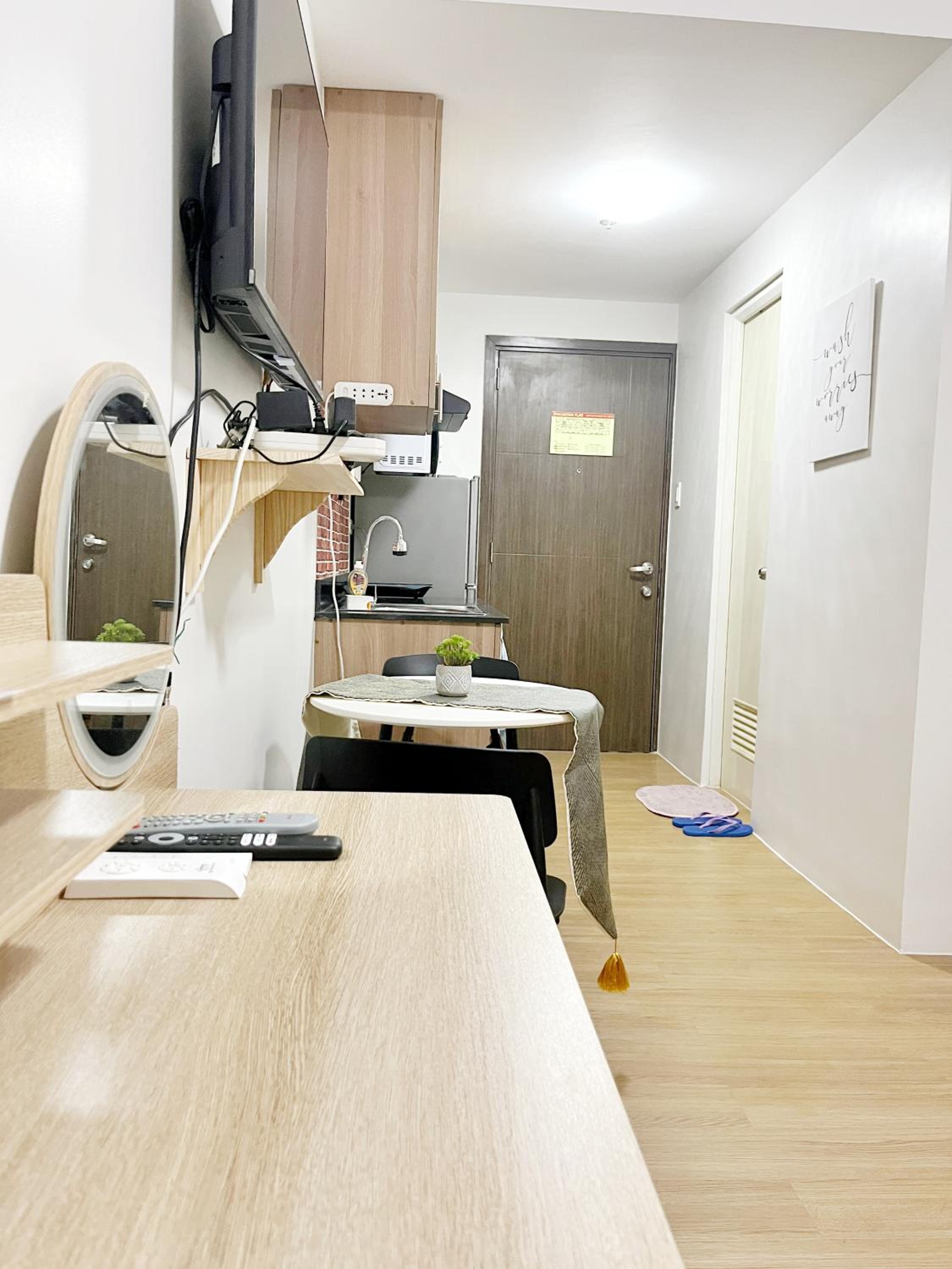 The apartment is too cramped in person with very tiny space to work in the kitchen sink for anything. The dining table is too small and not much space to sit down and feel comfortable. Only 2 towels are provided with no spare so very hard when you stay at the place for several days. There is no communication from the host to check if you're comfortable, need anything, or have any concerns about your stay. No dustpan or broom is available to make your cleaning. Different types of maps are stacked at the veranda above but all are dirty and not functional. The most disappointing is, that there's no swimming pool as advertised.