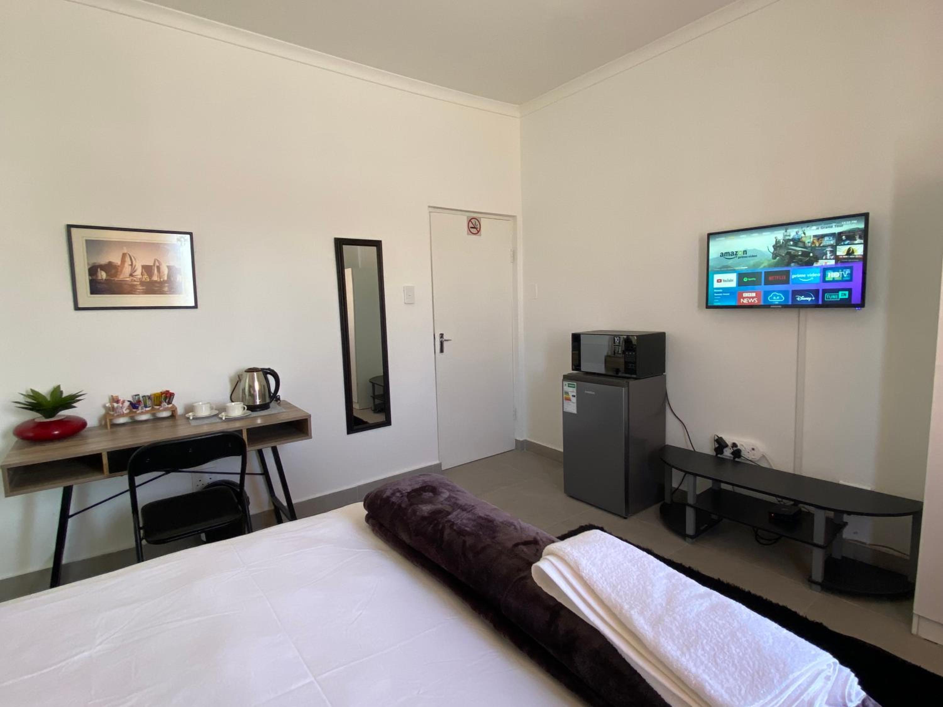 Attitude of Sandie, the reception. 1 minute good & in a second cheeky & loud. My wife, a light sleeper, dogs from area, loud. Loud talking one morning in yard, woke us up early, I'm assuming next door room, reception (actually don't know & didn't complain). While my wife having a bath, shower curtain fell down, I lifted it up. Was loosely fitted on wall. Front, sliding aluminium glass door, we had to figure out how to open, close & lock it. We didn't want any one to come in while we not there or sleeping & preferred closing window. Didn't want resident or stray cat jumping in. Had to be very vigilant in Cape town. Not my turf. I'm a Jozi man, born & brought up & love my town, never mind what. At no. 1 guest house, every body we came into contact with, even if it was, only a nod, with the head or hand were very friendly!