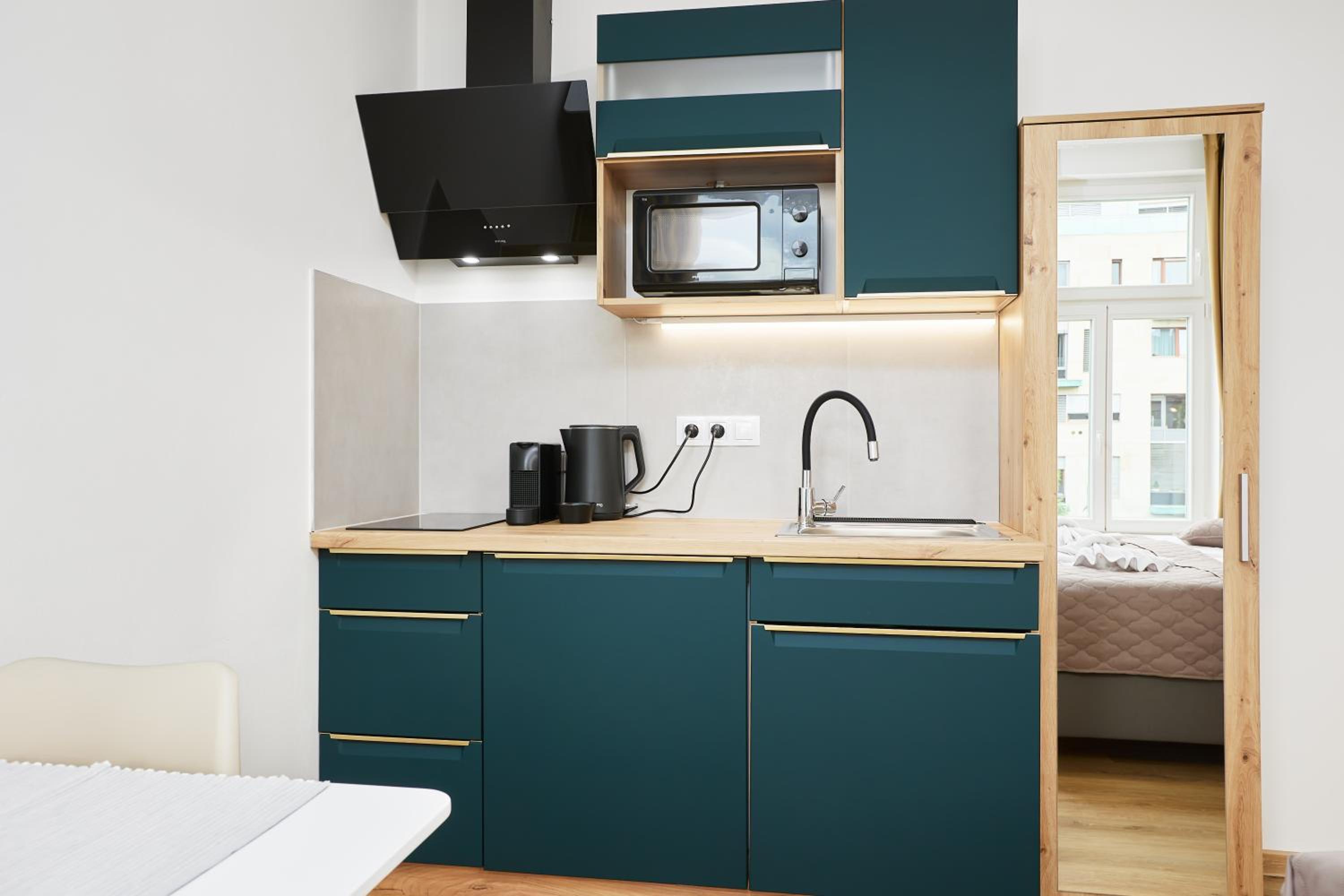 Easy check-in, very clean. It is located on a quiet street that is next to a lively neighborhood. Easy accessible by public transportation. We would definitely choose this place again.