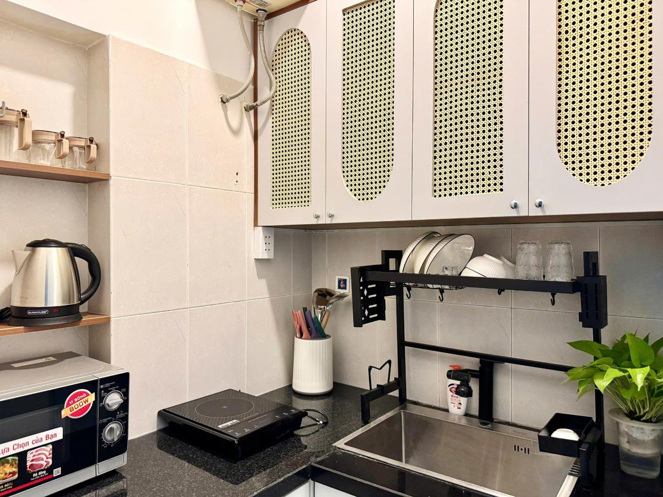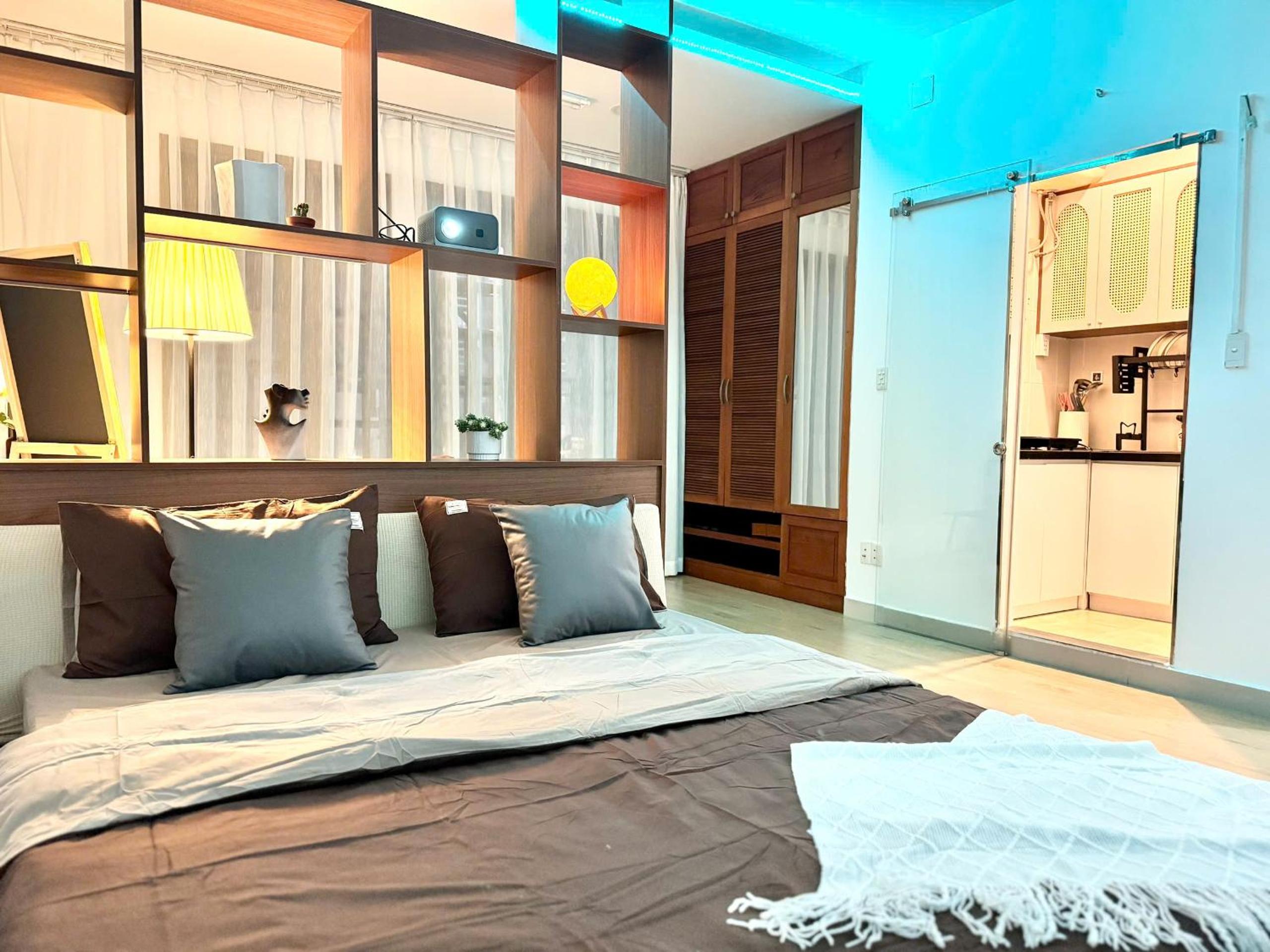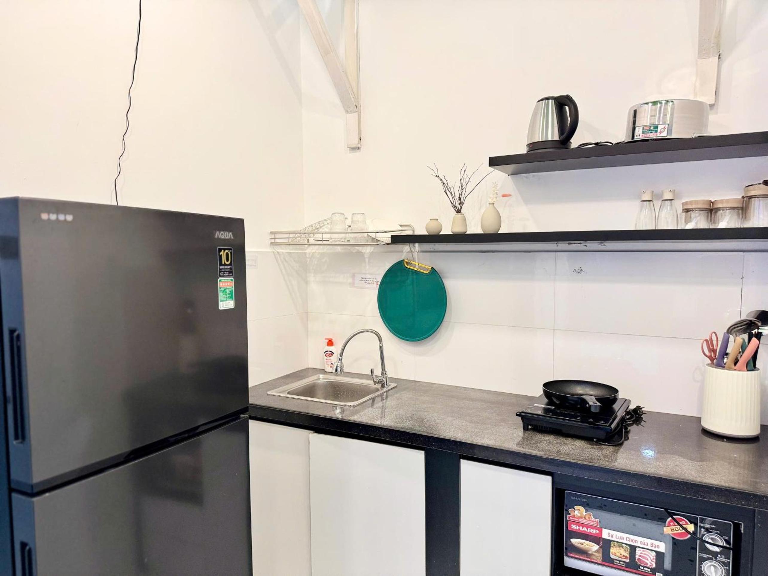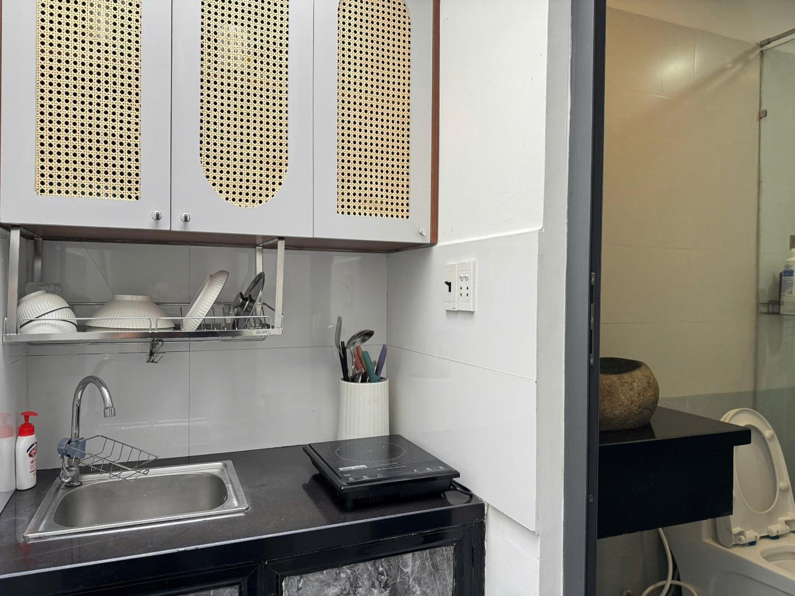 Located in a very sweet area, with local market street around the corner. Easy to walk to main areas of District 1 (but location is more on the edge of the district). Tiny kitchen which was enough for making breakfast. Responsive host.