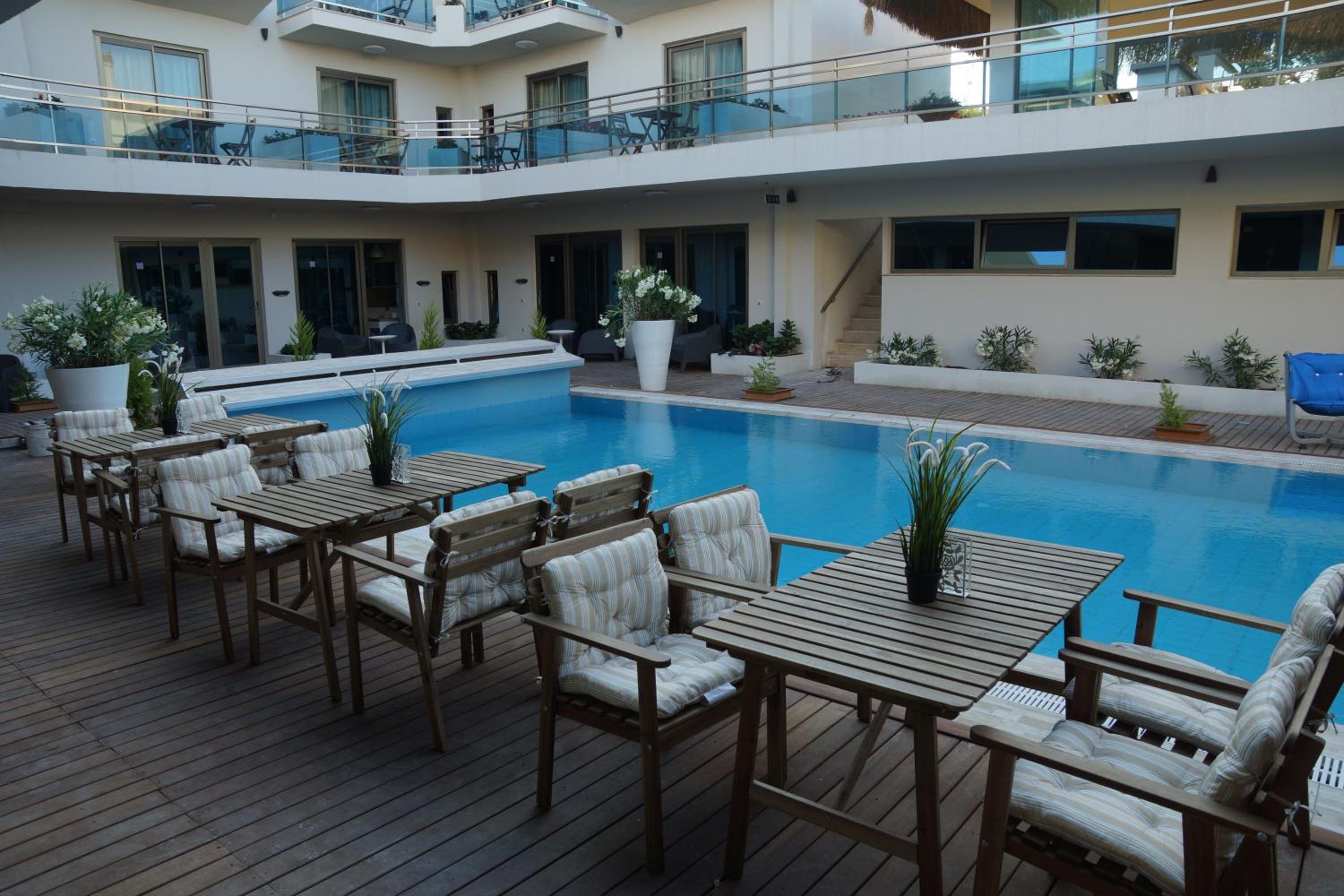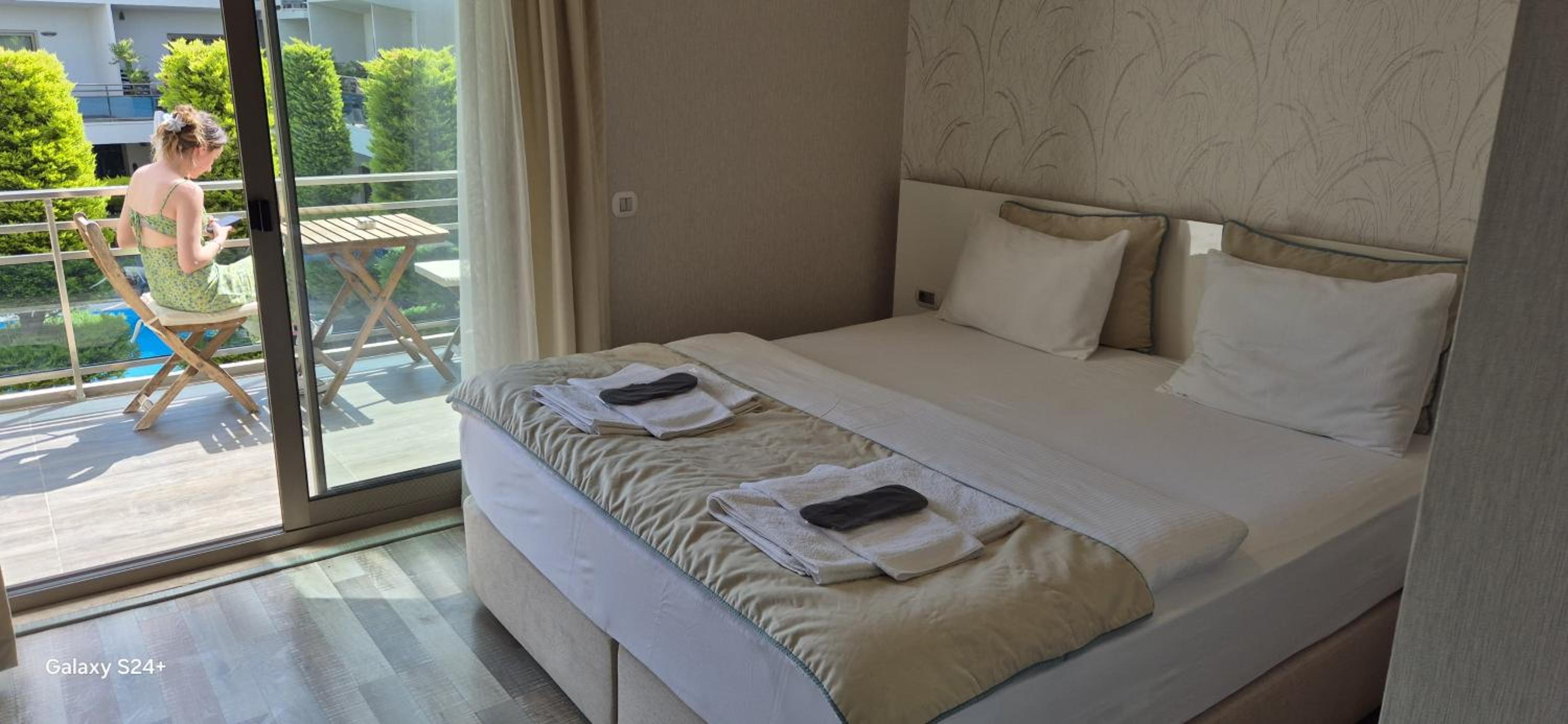 The staff were always smiling, friendly, and ready to help. The swimming pool (140 cm deep) was very clean and cleaned every morning. The hotel grounds are beautiful and green; flowers are watered daily. The design is stylish and modern, with many cozy spots like swings, sunbeds, and tables to relax. We especially loved the small balconies in front of each room — a great place to spend the evening with a table and chairs. Such a warm and welcoming atmosphere — it’s the kind of hotel you don’t want to leave.