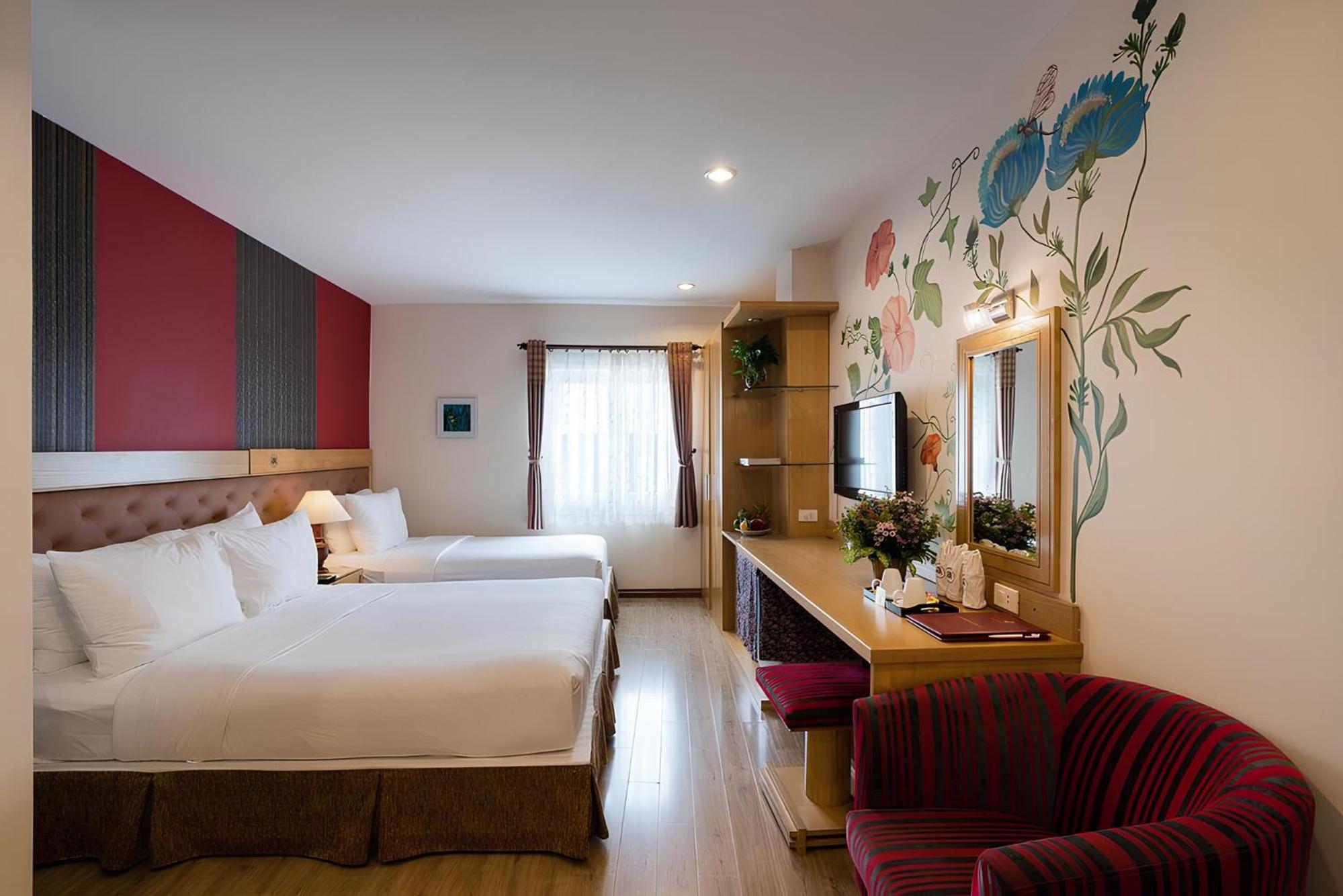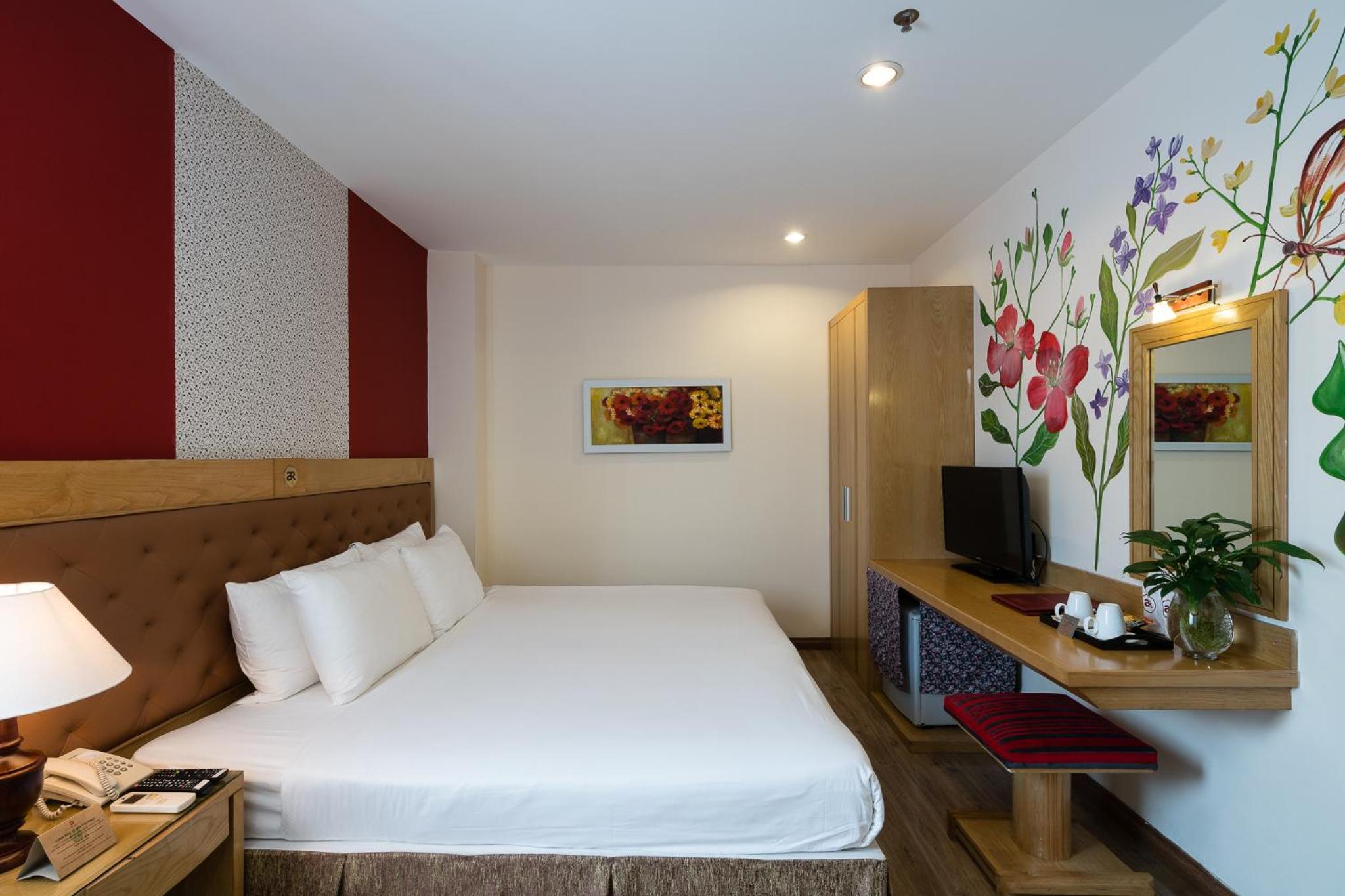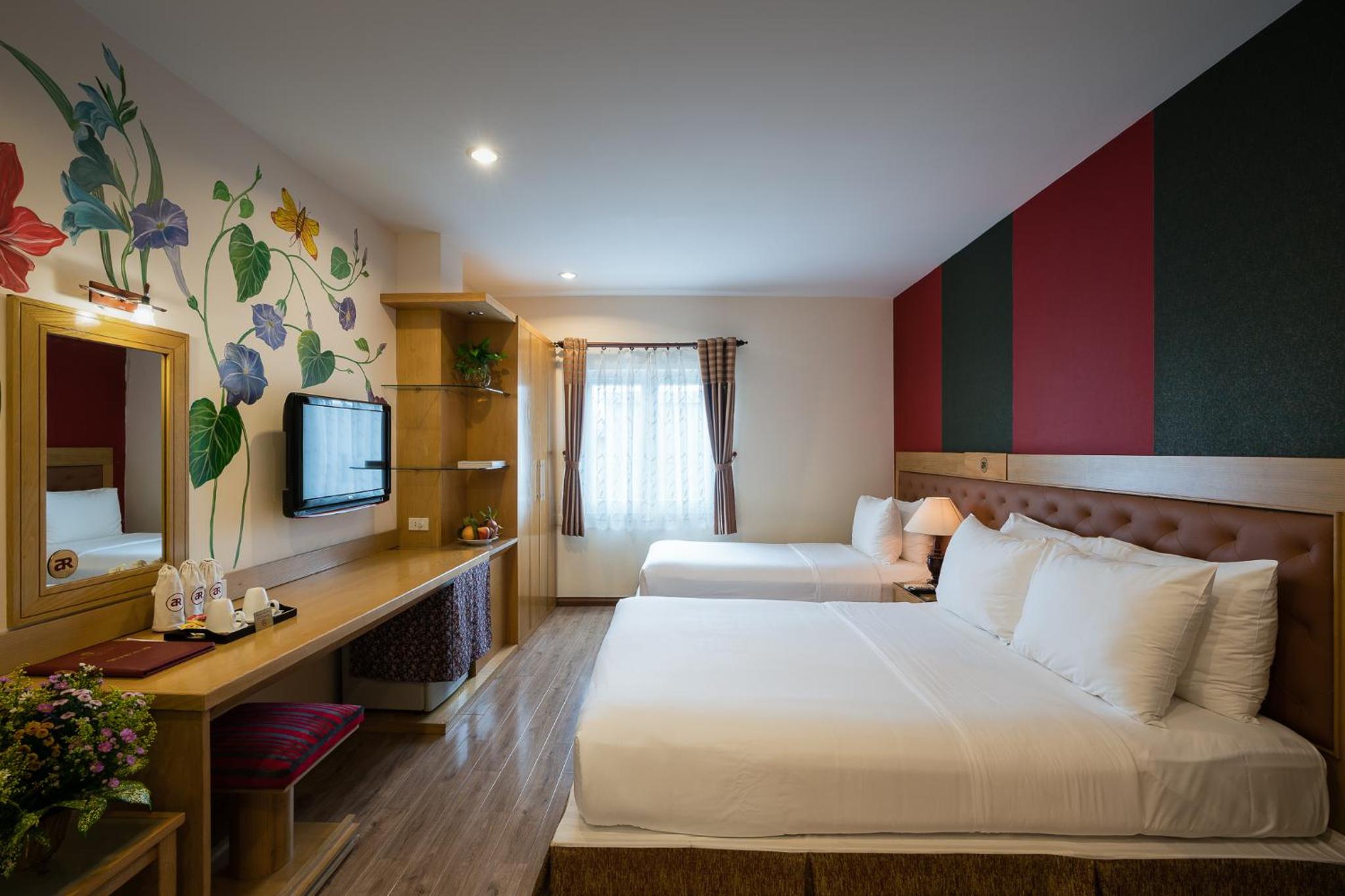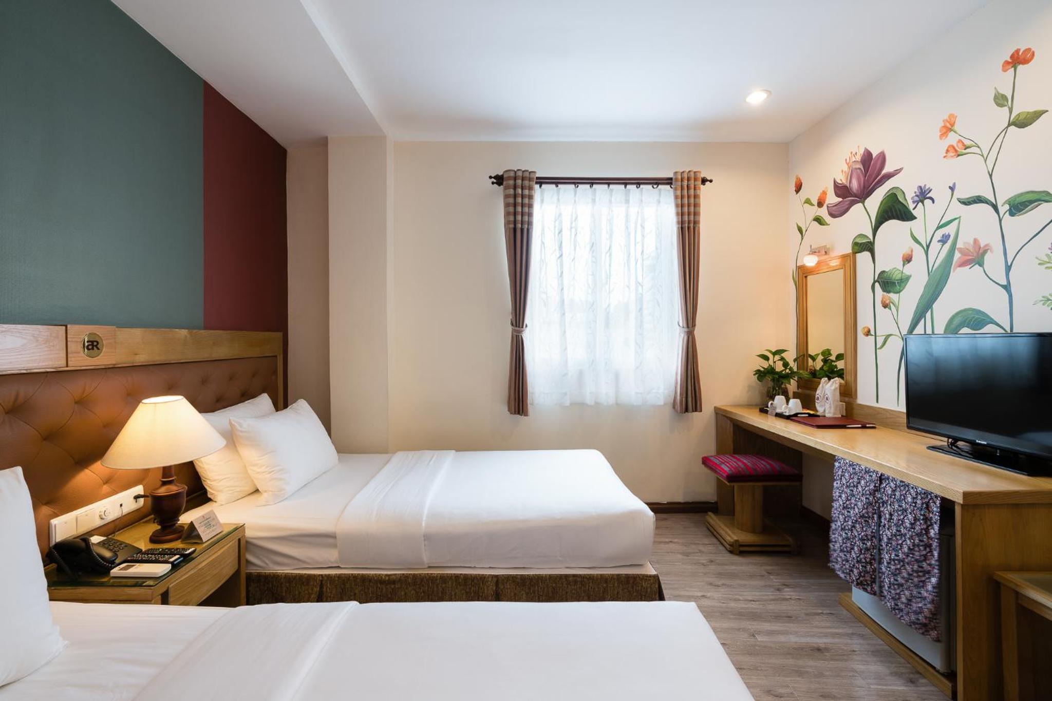 We booked the Asia Ruby hotel for our trip to Vietnam. I was very shocked when I arrived to check in. The room we booked was a Deluxe Double Room with bath, but when we got to the room, all the furniture was very old and the layout was nothing like what was shown online and on Google. I was moved to the 7th floor, and they said this was the largest VIP room they had at this location and their branch. We were really disappointed because everything in the bathroom was very dirty and water was leaking from the shower. They came to check but couldn't fix it. We couldn't leave because we had paid with a credit card, and they didn't want to refund us. We really need to be more careful about these kinds of customer deception. Meanwhile, the room rates were too high. The hotel apartment was worse compared to nearby hotels. The food was just terrible. I'm very sad that my vacation turned out to be like this.