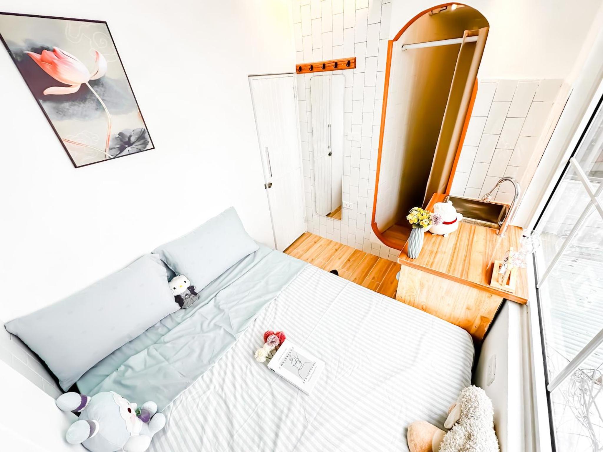 Lovely little room in a great location. It was easy to find the place which was well lit in a shared alley, and the instructions to get in were clear. They've been able to fit a lot into a small space. I liked the bench under the window which gave me lots of space for my travel bags and stopped the room from feeling cluttered. Plenty of power outlets. The bed was very comfortable and the area wasn't too noisy compared to other places I stayed. There was a cool view of the world passing by.