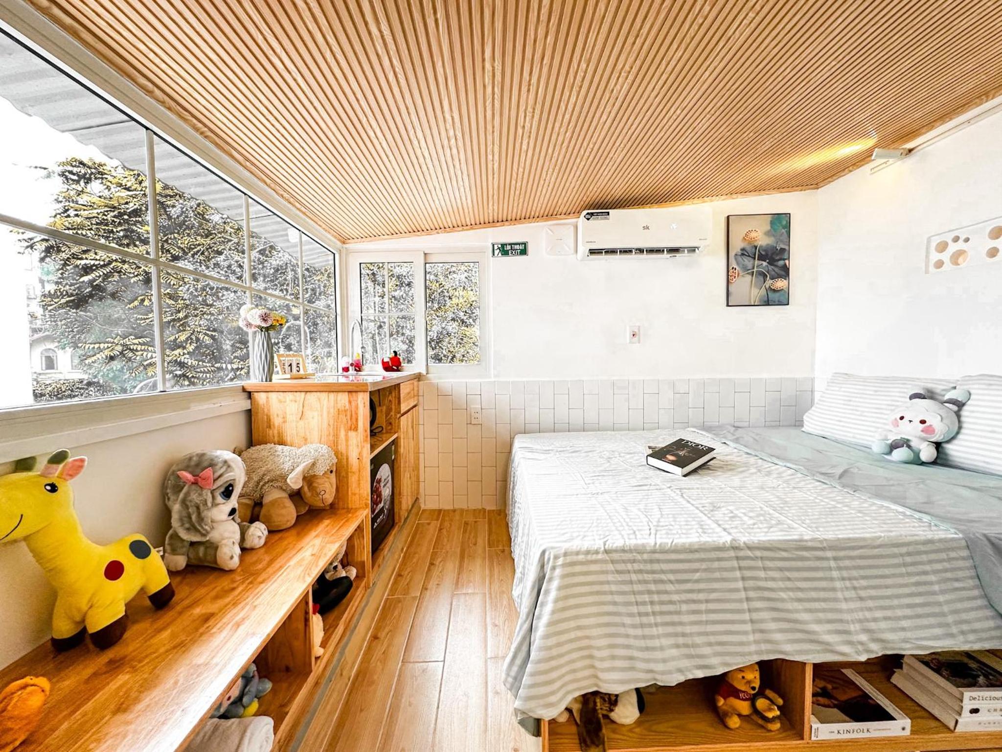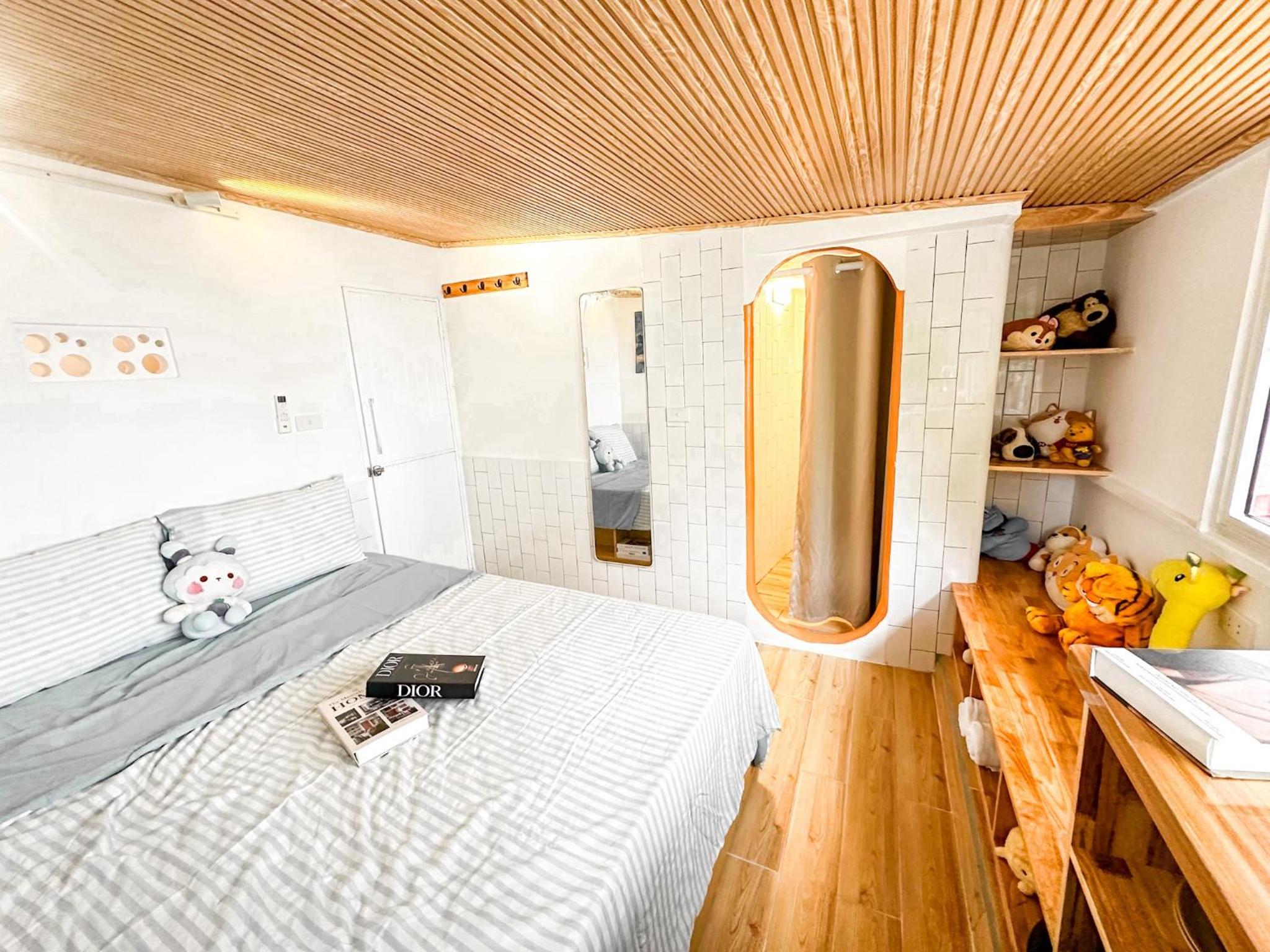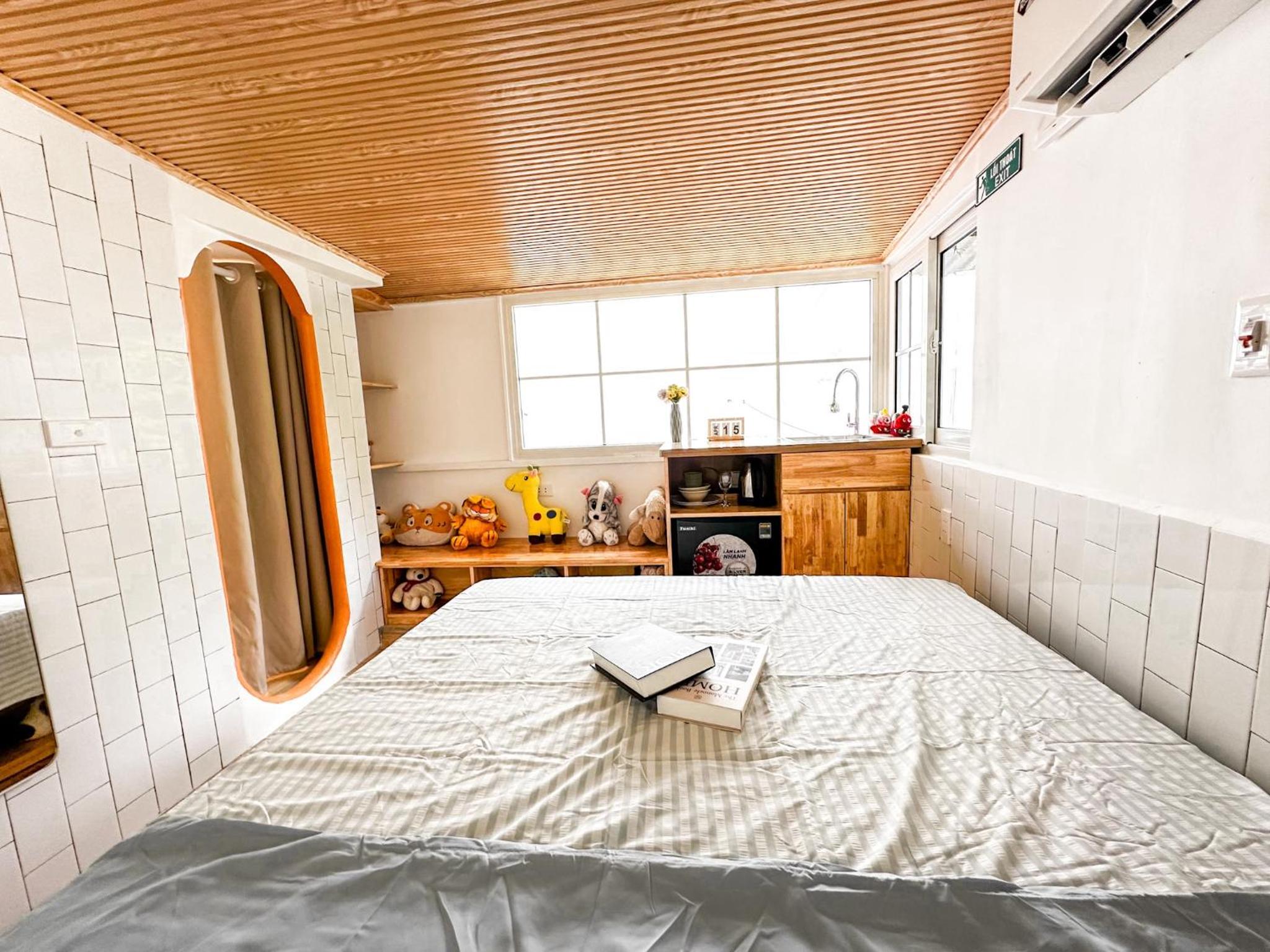 Không gian tiện lợi, gọn gàng, sạch sẽ. Giường êm, có điều hòa. Vị trí đẹp có thể nhìn được đường phố. 100 điểm chất lượng.