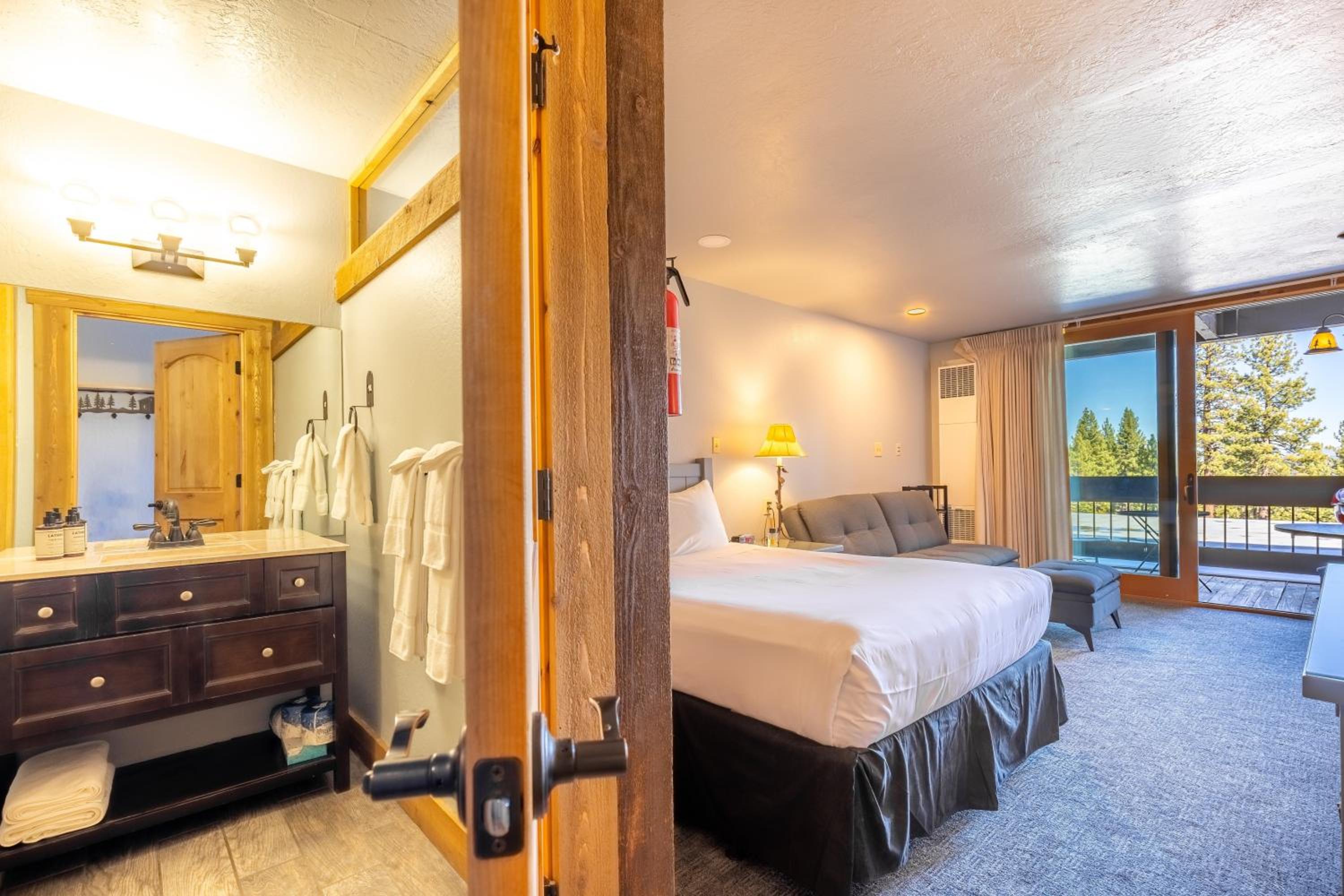 Book your stay at Hotel Style Room in The Timber Creek Lodge condo for a delightful and convenient experience during your Truckee getaway.