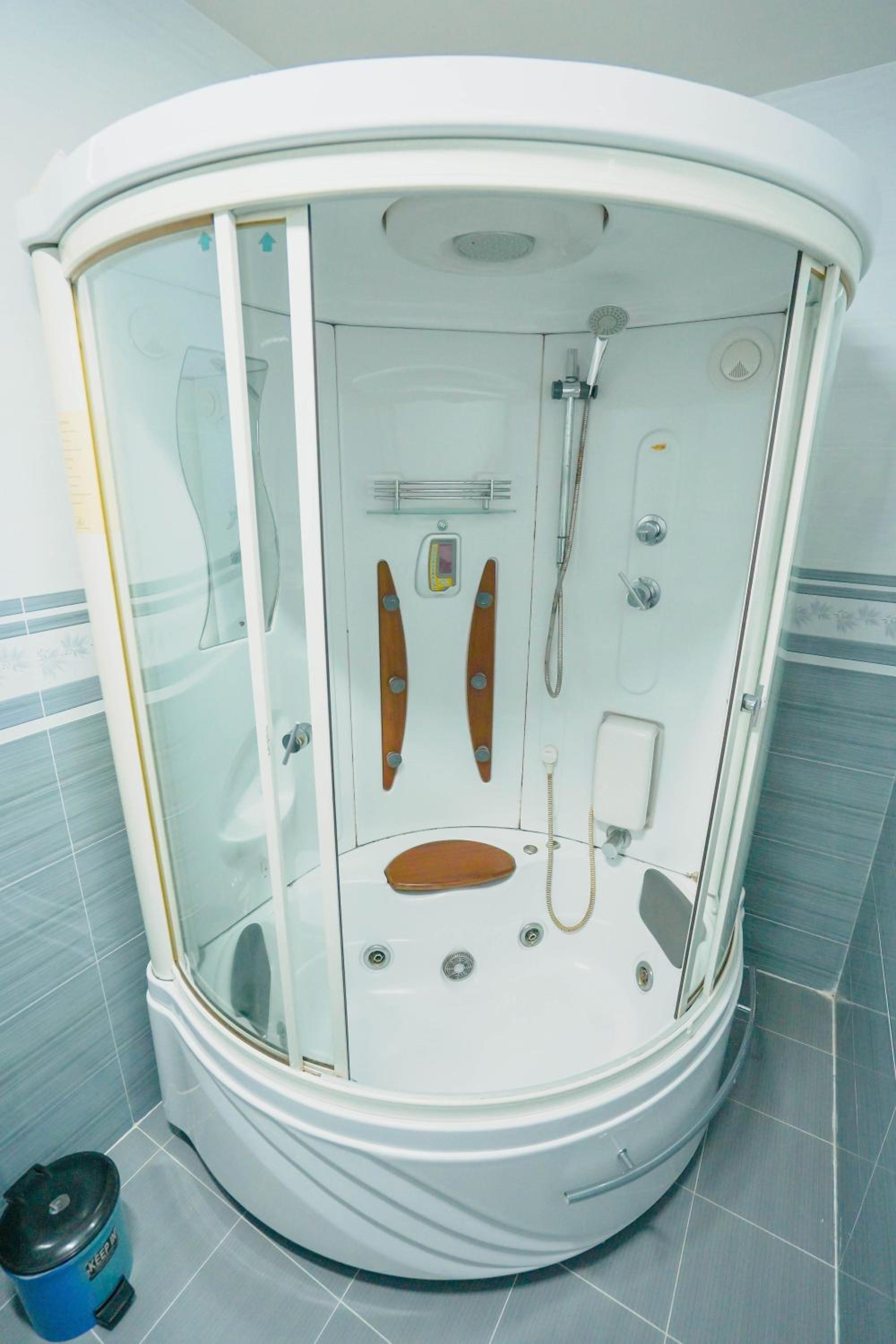 7. Nhà tắm hiện đại, có nước nóng và sạch sẽ, gọn gàng, thiết bị nhà tắm mới và mạnh.