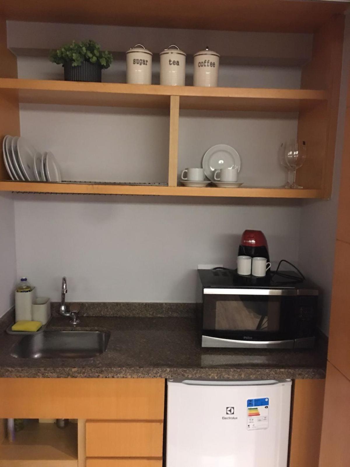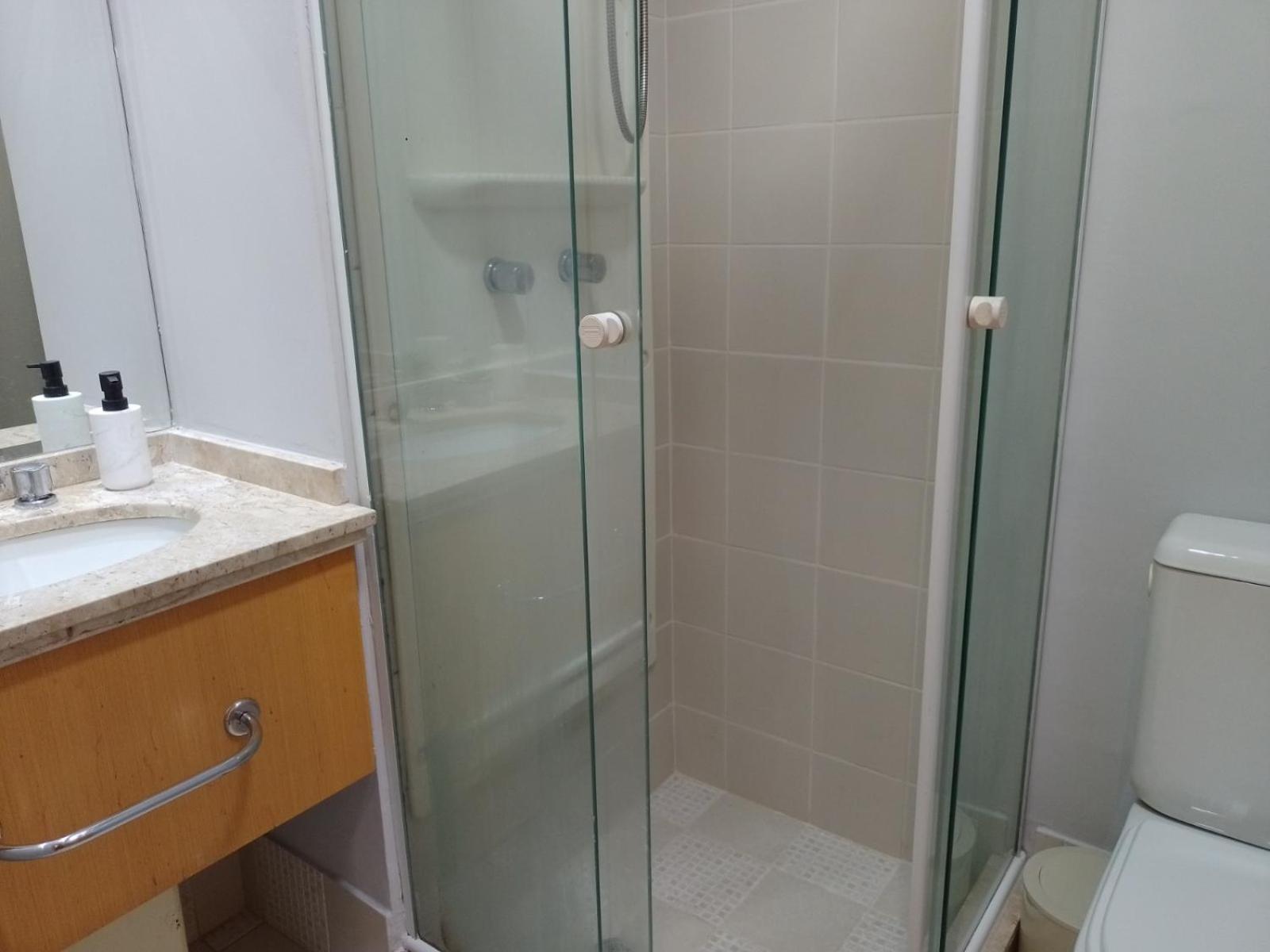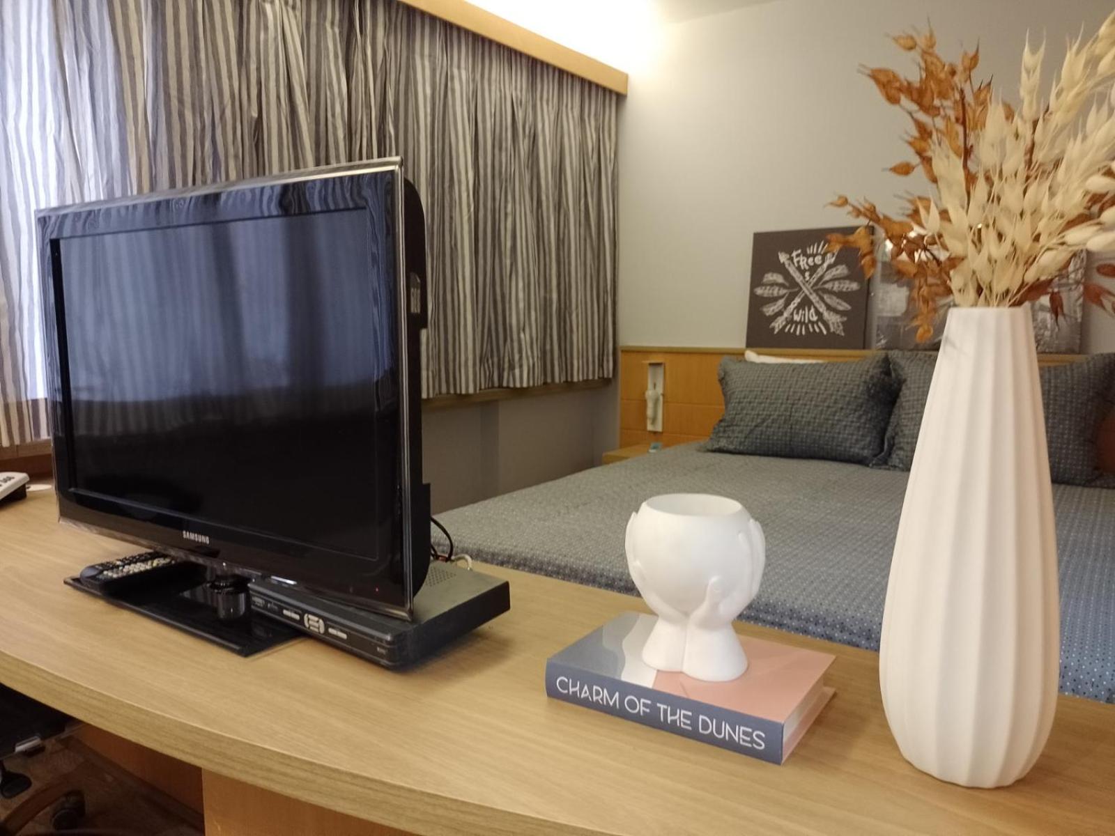 Discover the comfort of air-conditioned rooms with private bathrooms, TVs, and kitchen facilities at Flat com 02 suítes no Jardins.