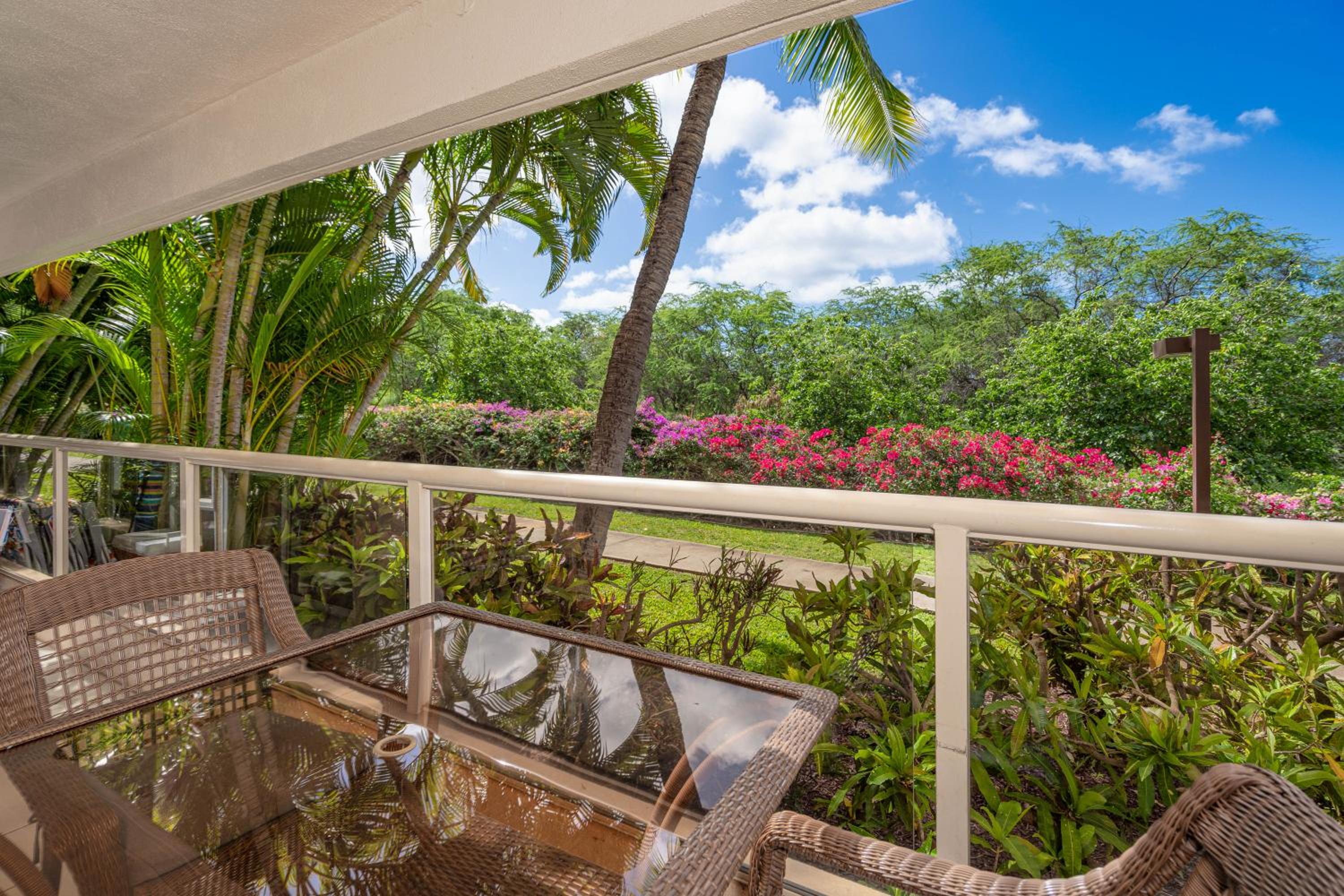 Unwind in our garden oasis after a day of exploring Maui. Whether you're looking to sunbathe or enjoy a leisurely stroll, our tranquil garden provides the perfect setting for relaxation.