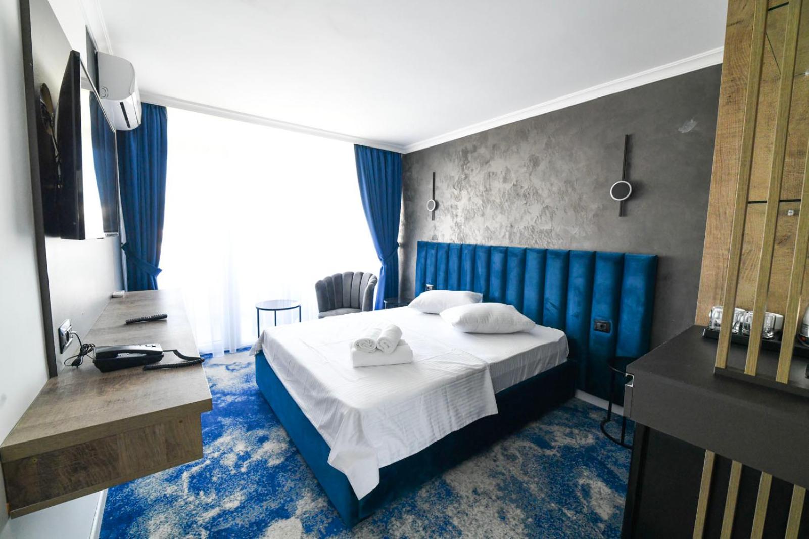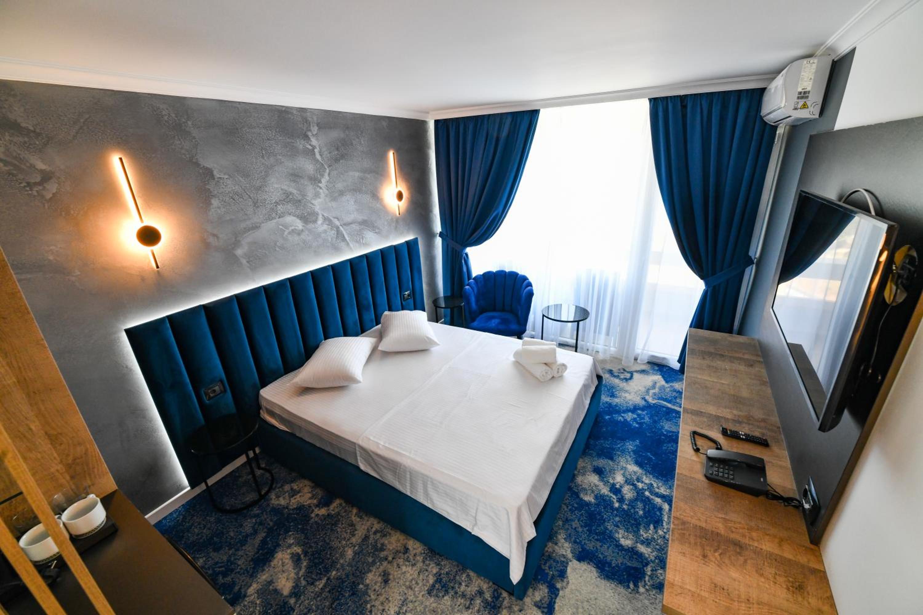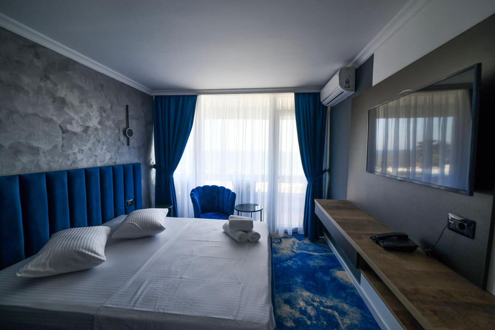Hotel curat, personal amabil, plaja aproape, lift, televizor modern și foarte mare, cu toate opțiunile. Wi-fi foarte bun. Șezlonguri gratuite, prosoape pentru plajă.