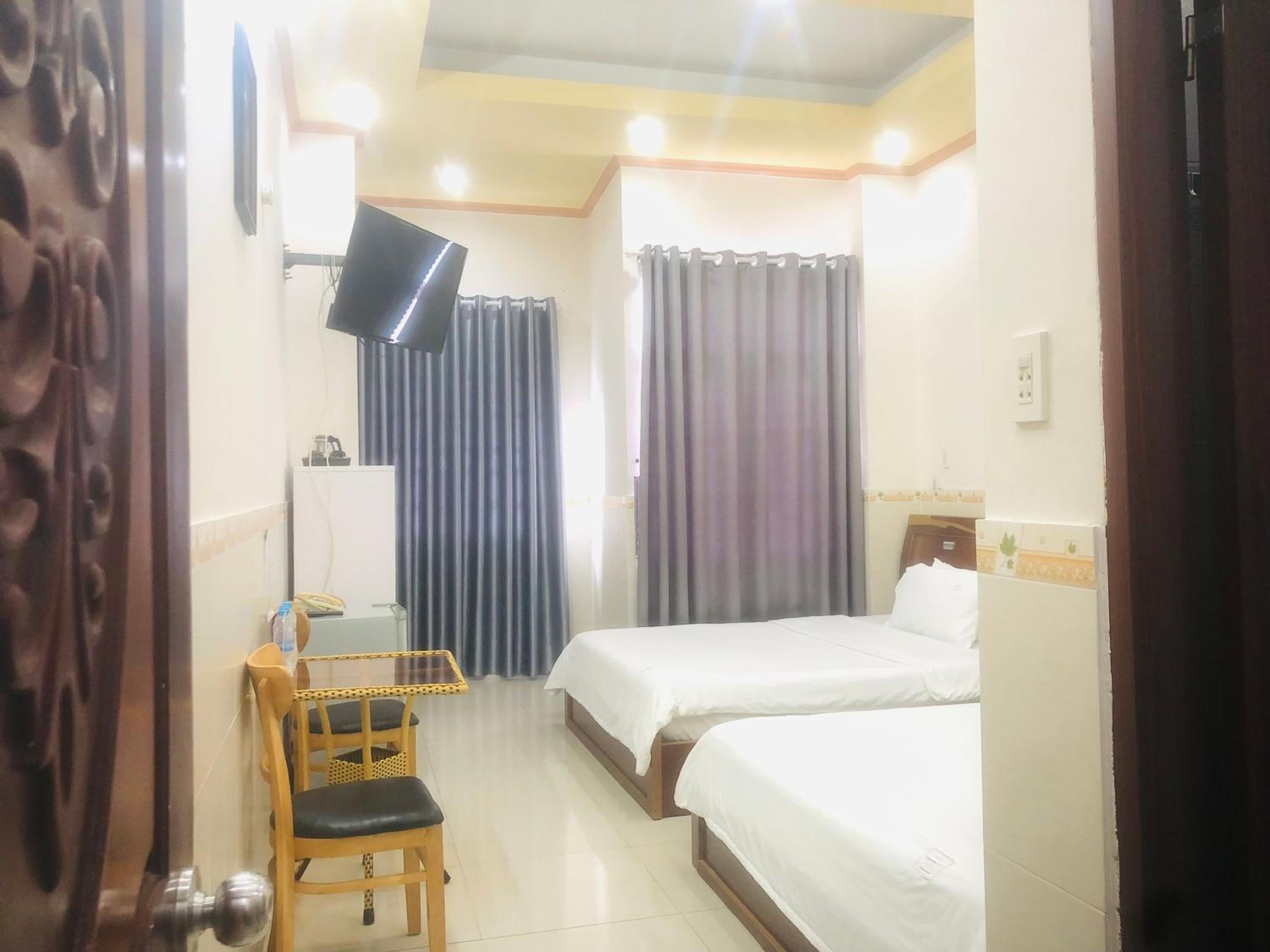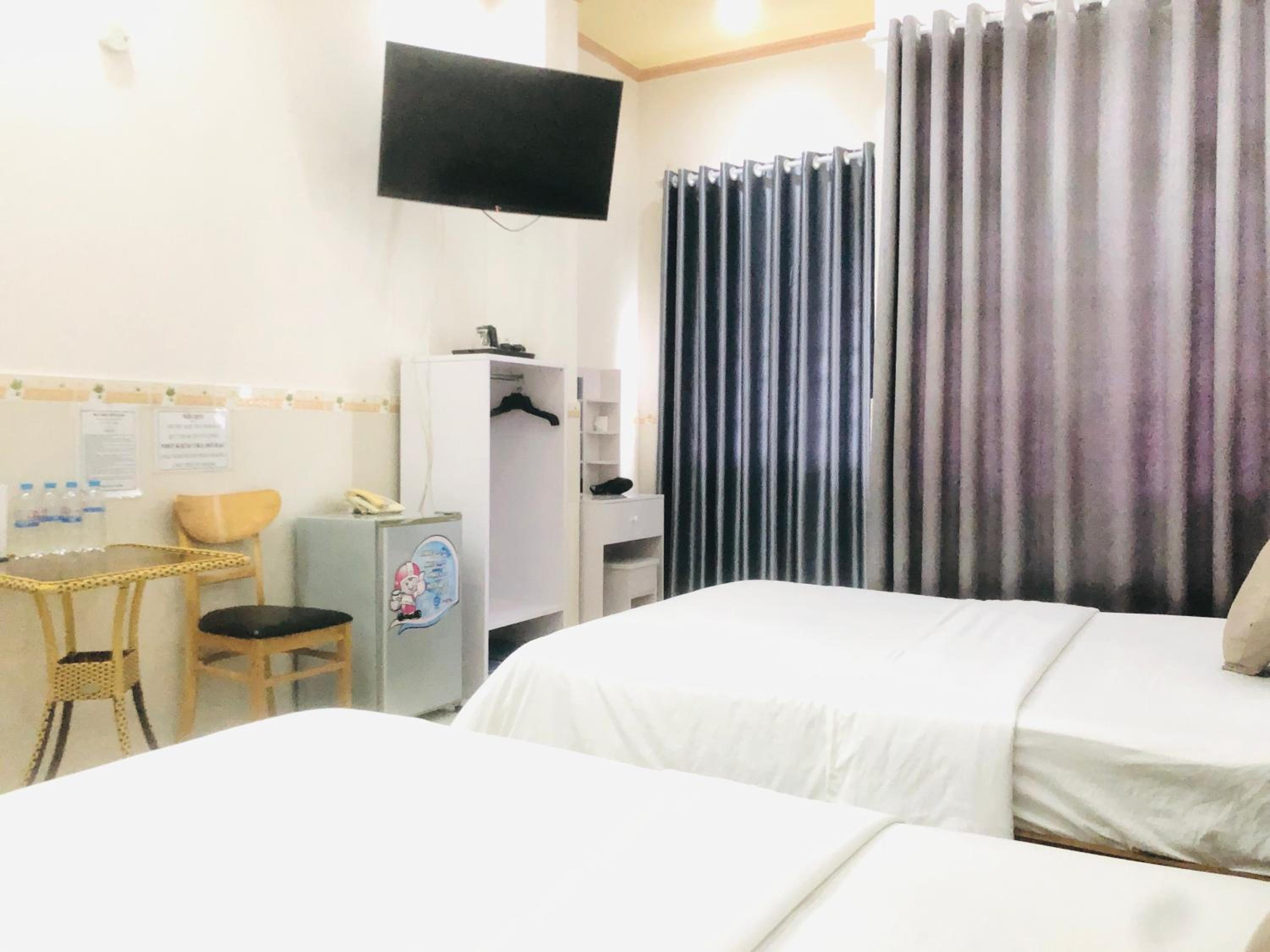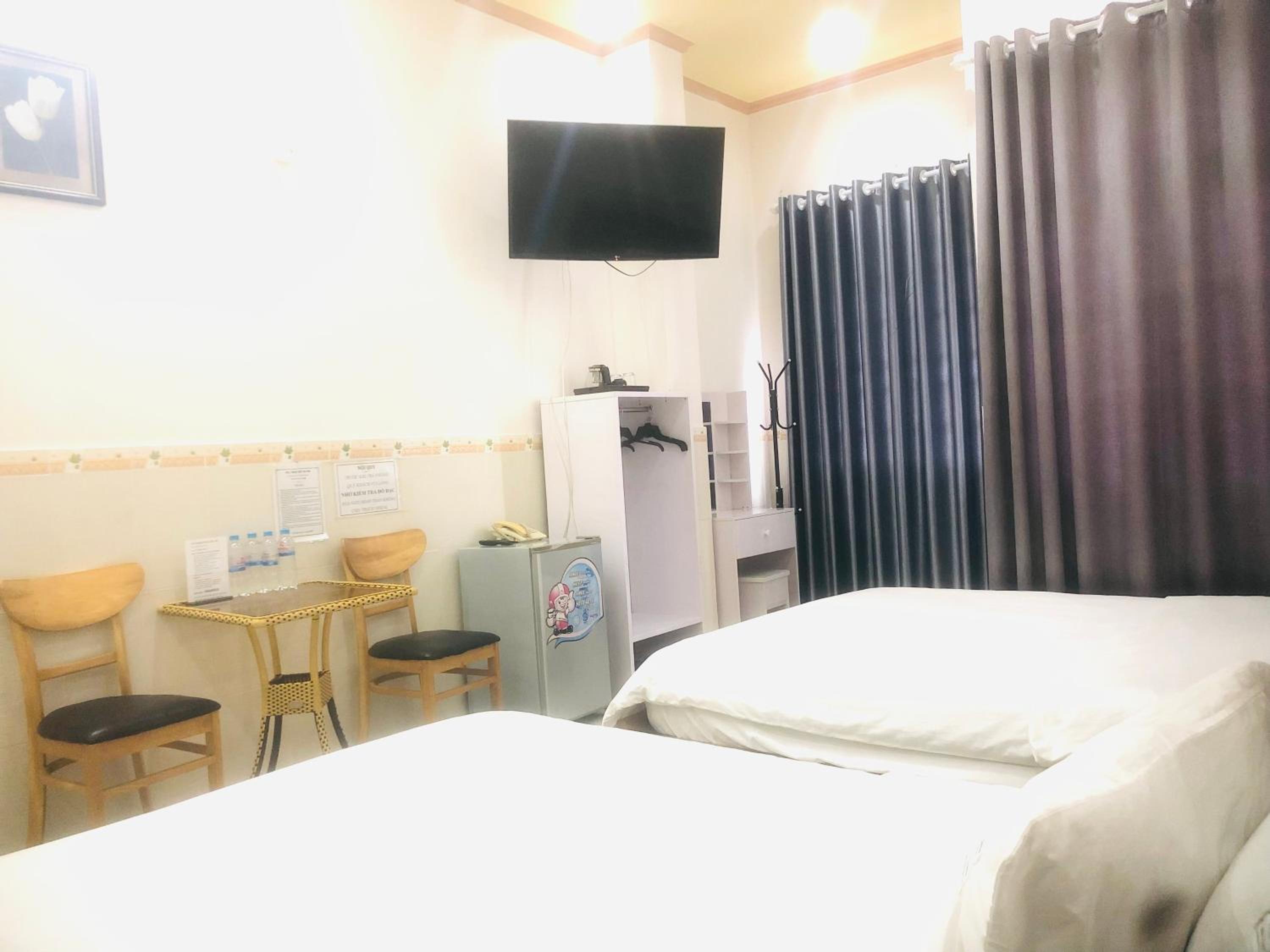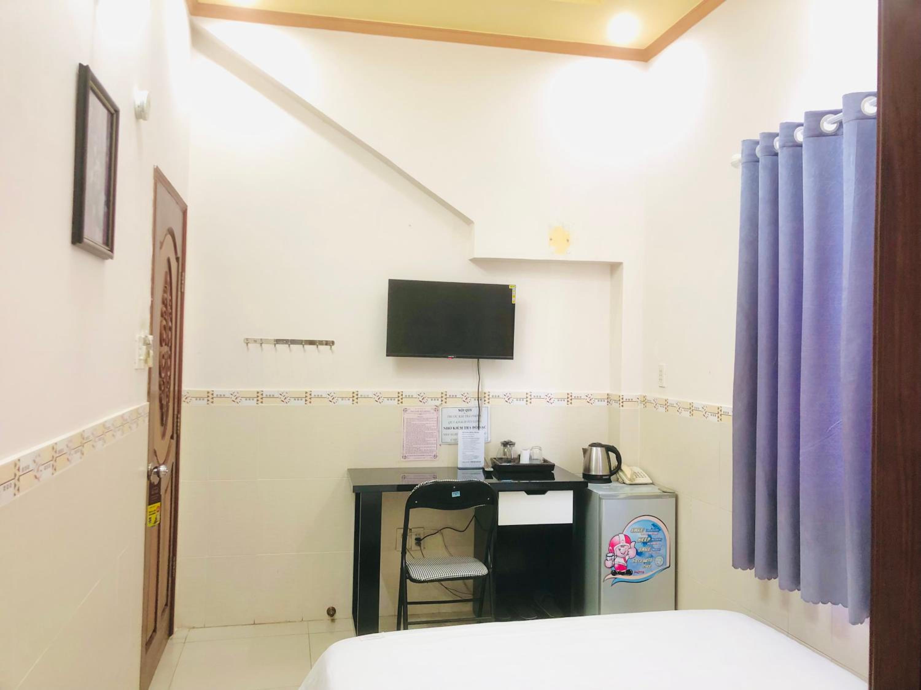 Anh chu nhiệt tình, giường nệm êm, phòng có tivi, có bàn trang điểm, vị trí gần trung tâm mà giá hữu nghị