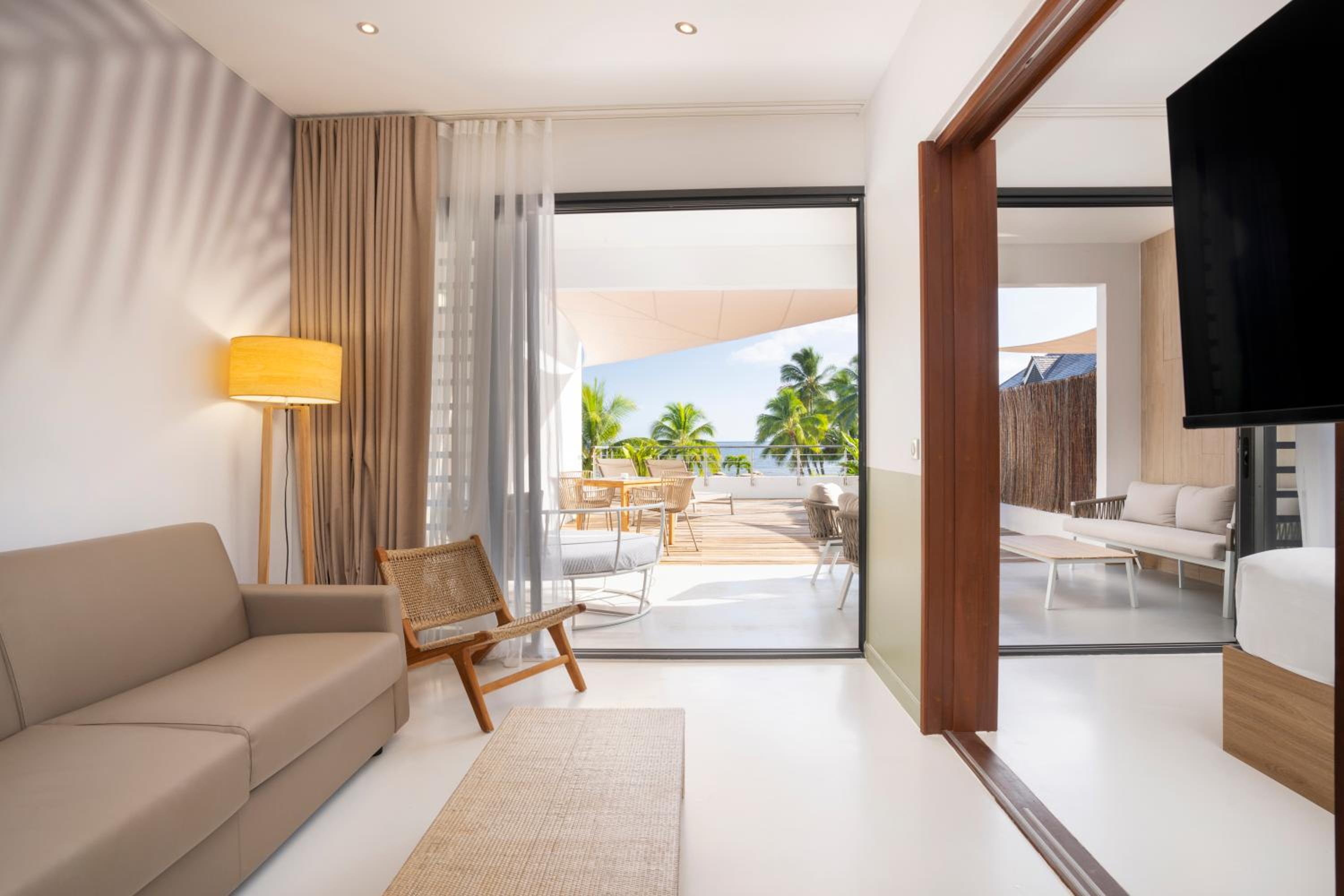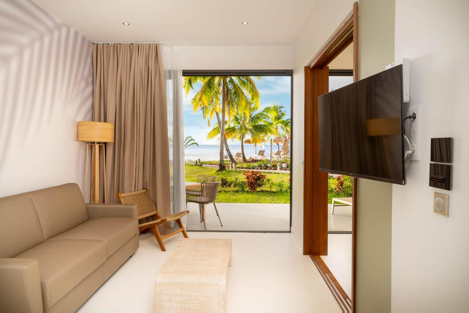 Each room at Cook's Bay Hotel & Suites is designed for comfort, featuring air conditioning, a flat-screen TV, and a private bathroom. Guests can enjoy sea or pool views from their room, and some rooms even come with a balcony. The hotel's 24-hour front desk, free WiFi, and concierge service ensure a seamless stay for all guests.