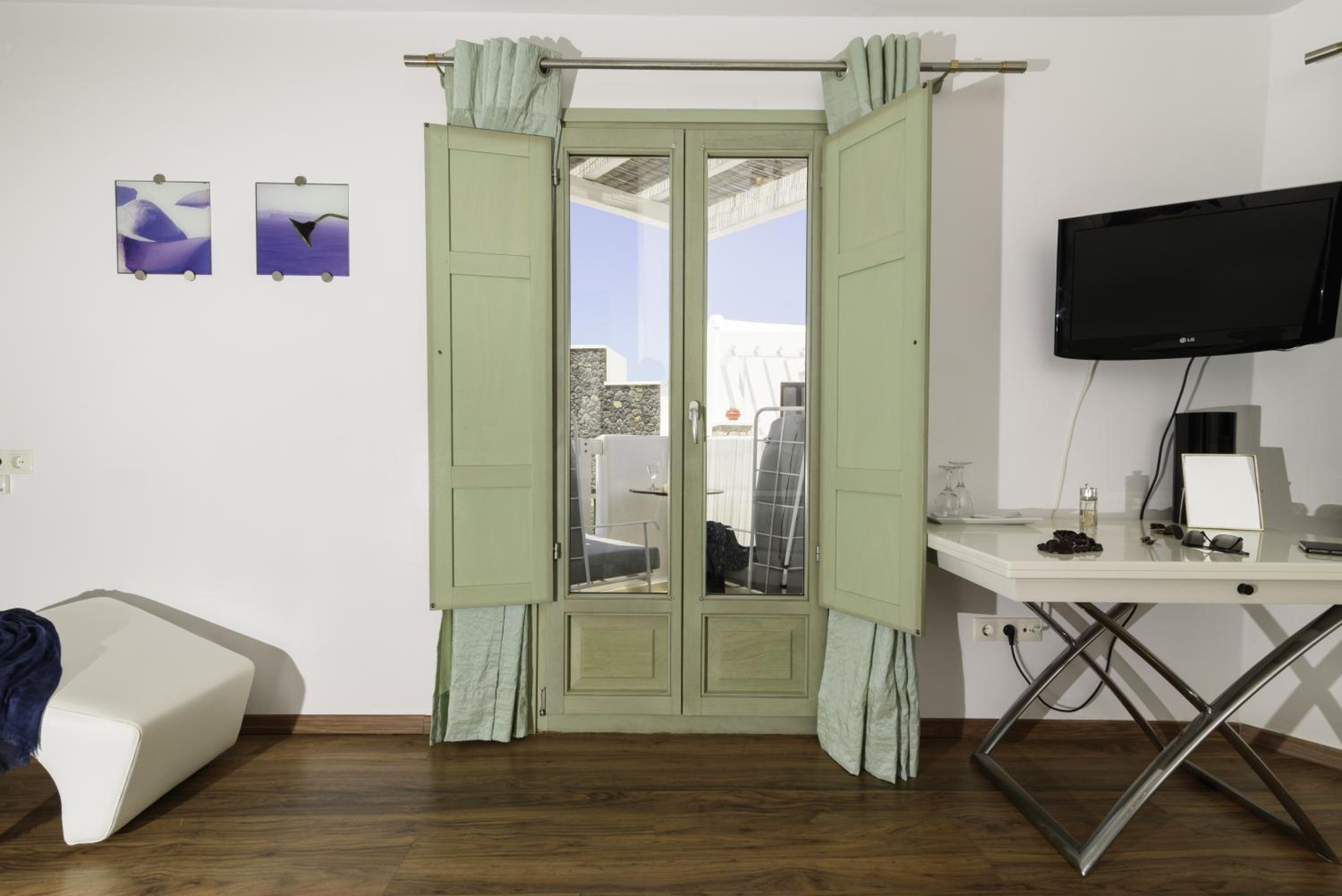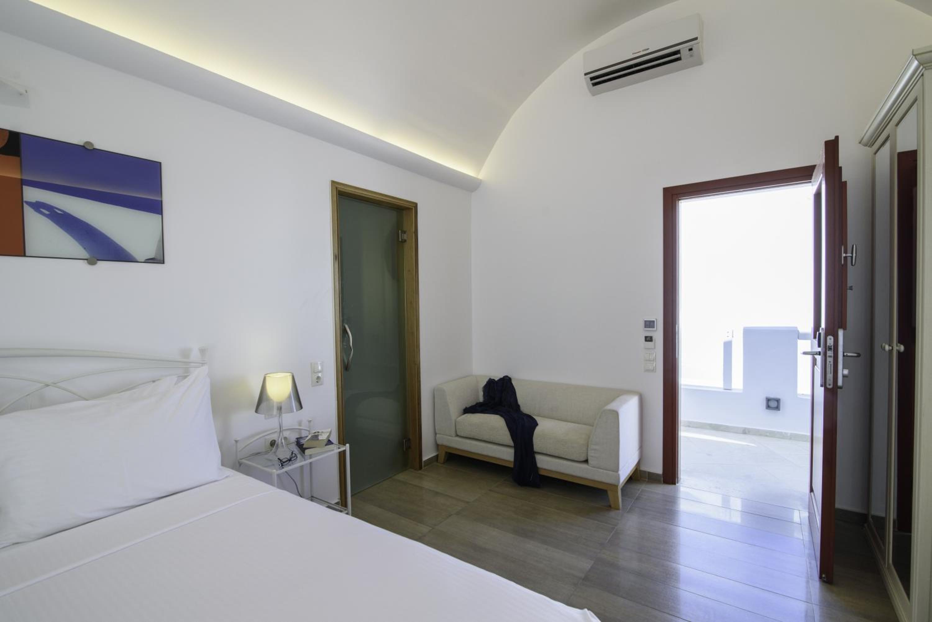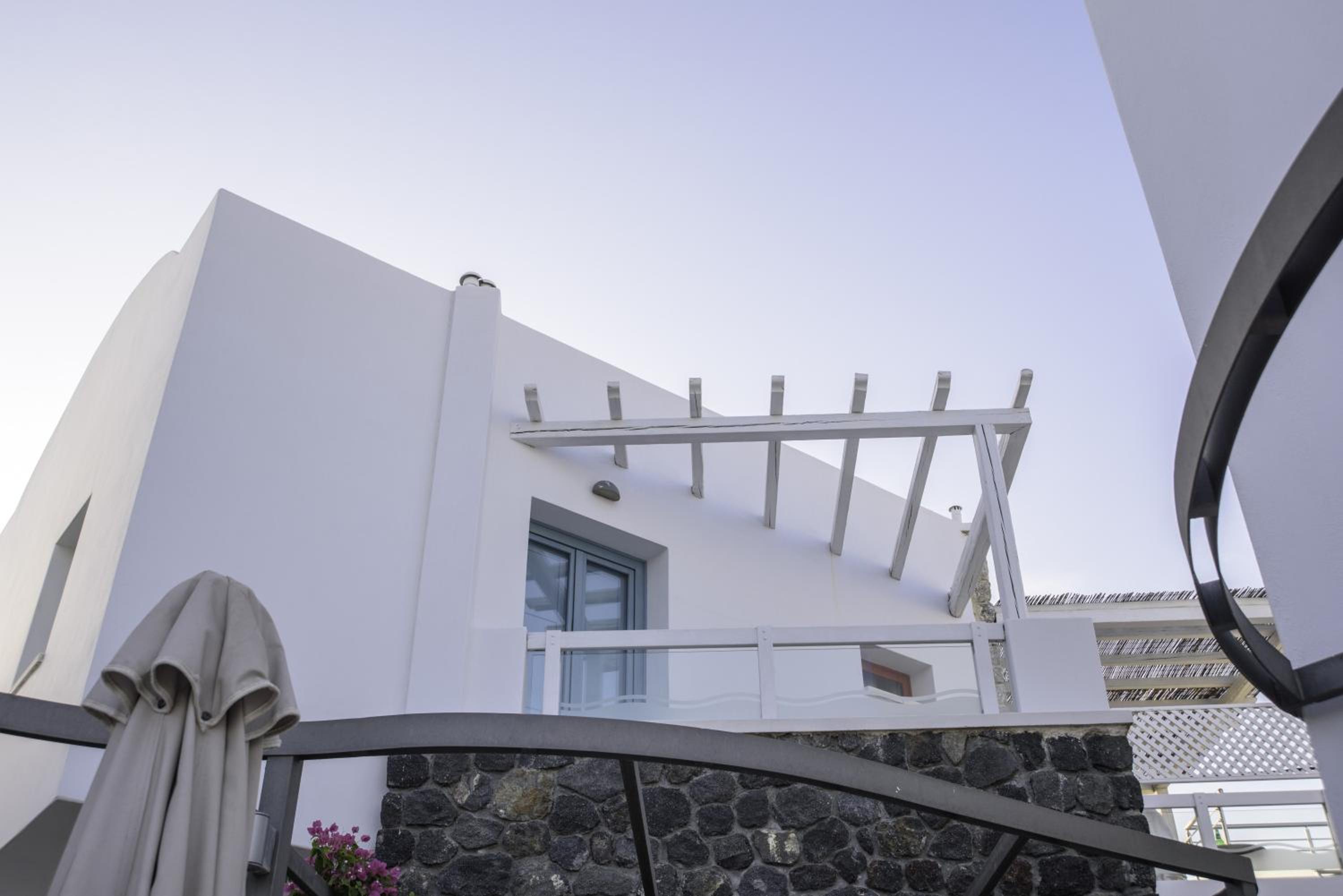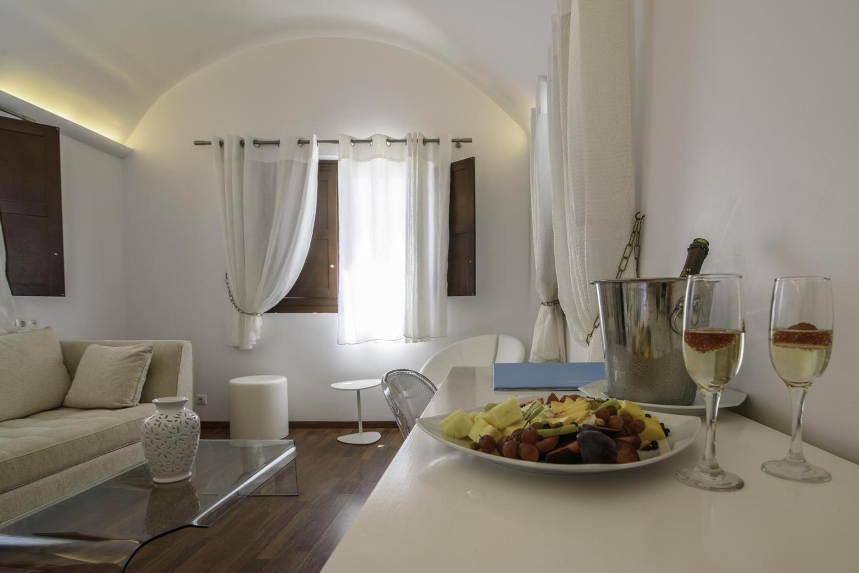 La Mer Deluxe Hotel & Spa, located just steps away from Kamari Beach, offers elegant rooms blending traditional Cycladic design with modern amenities. Enjoy a hydromassage tub or shower, flat-screen TV, and free Wi-Fi in every room.