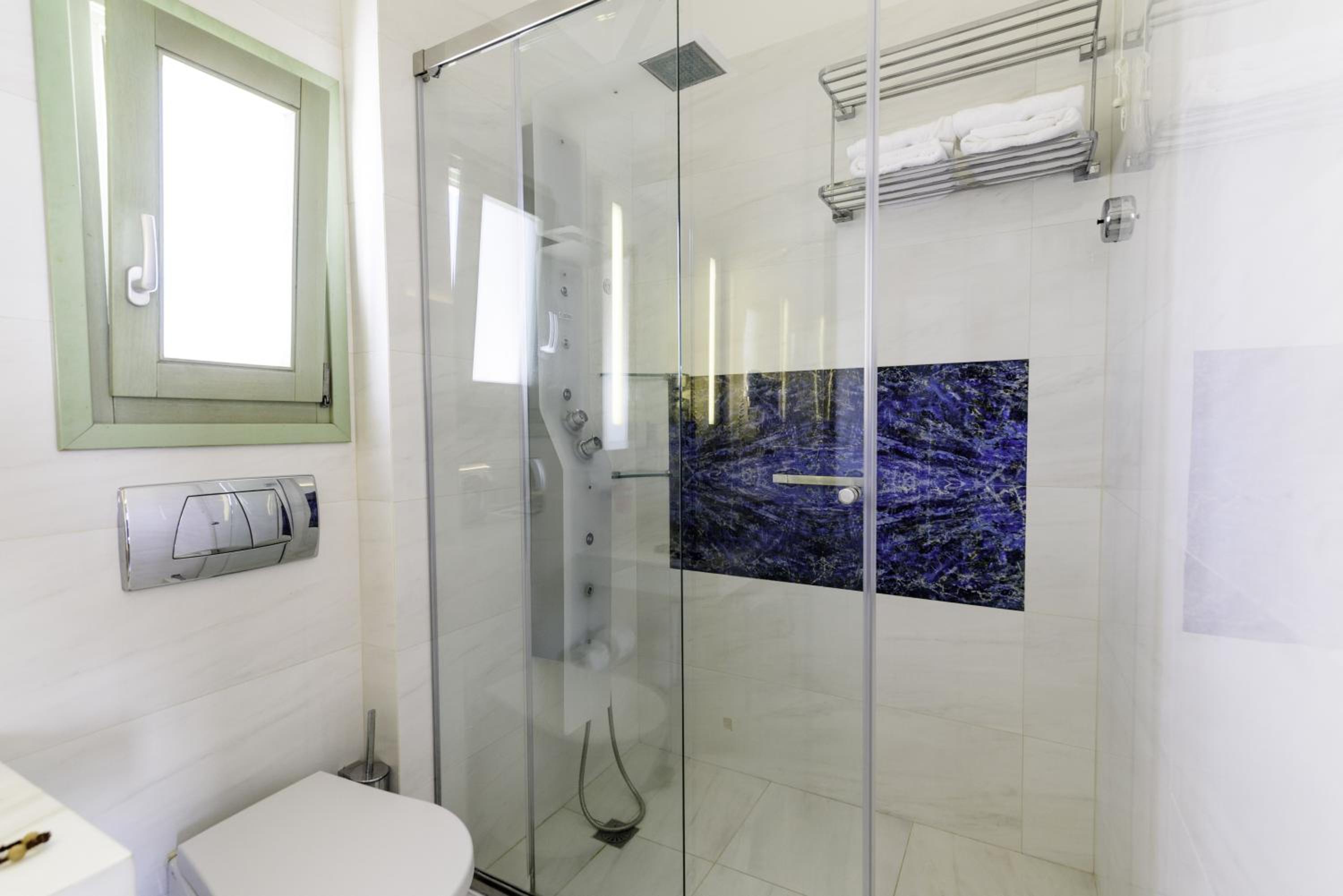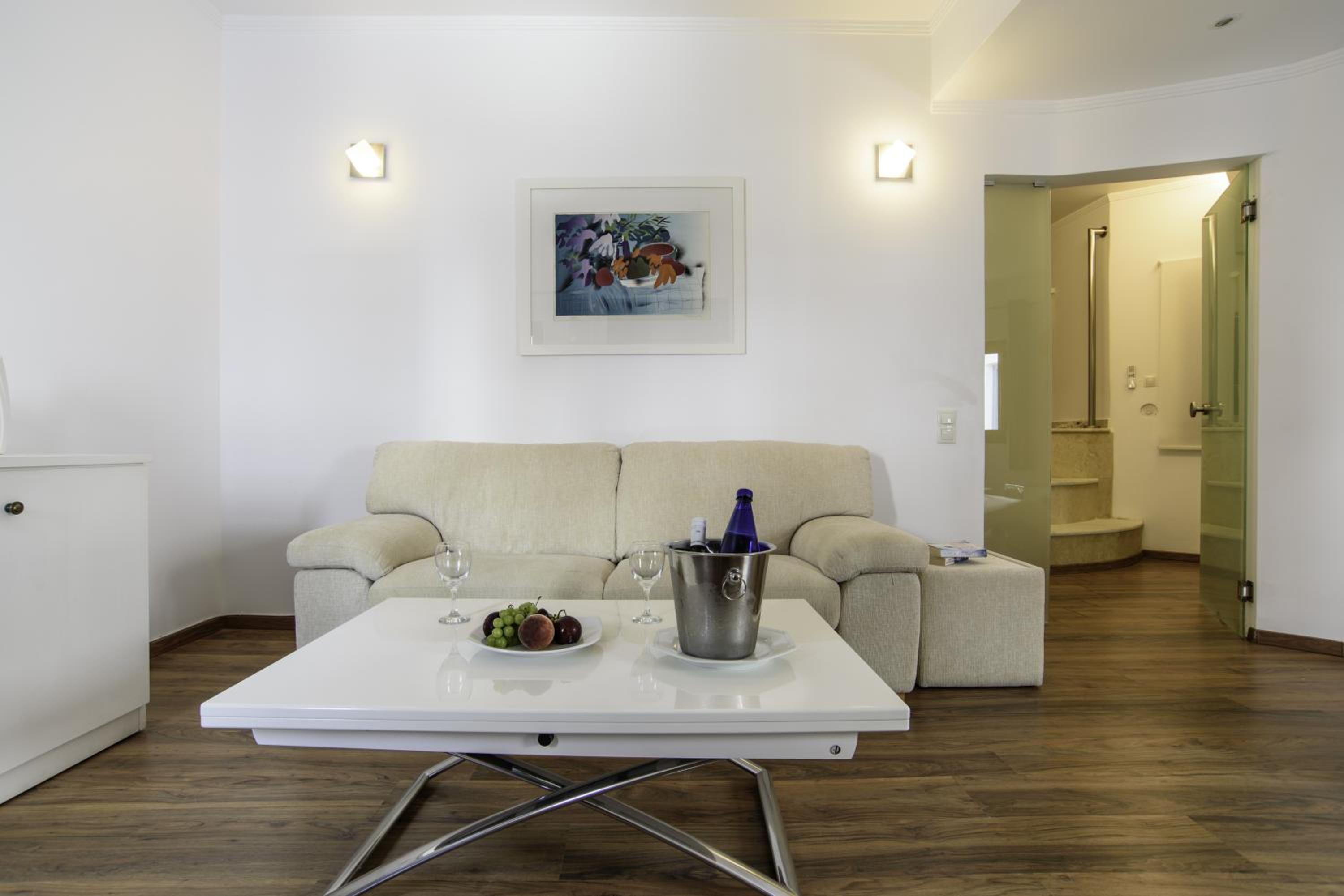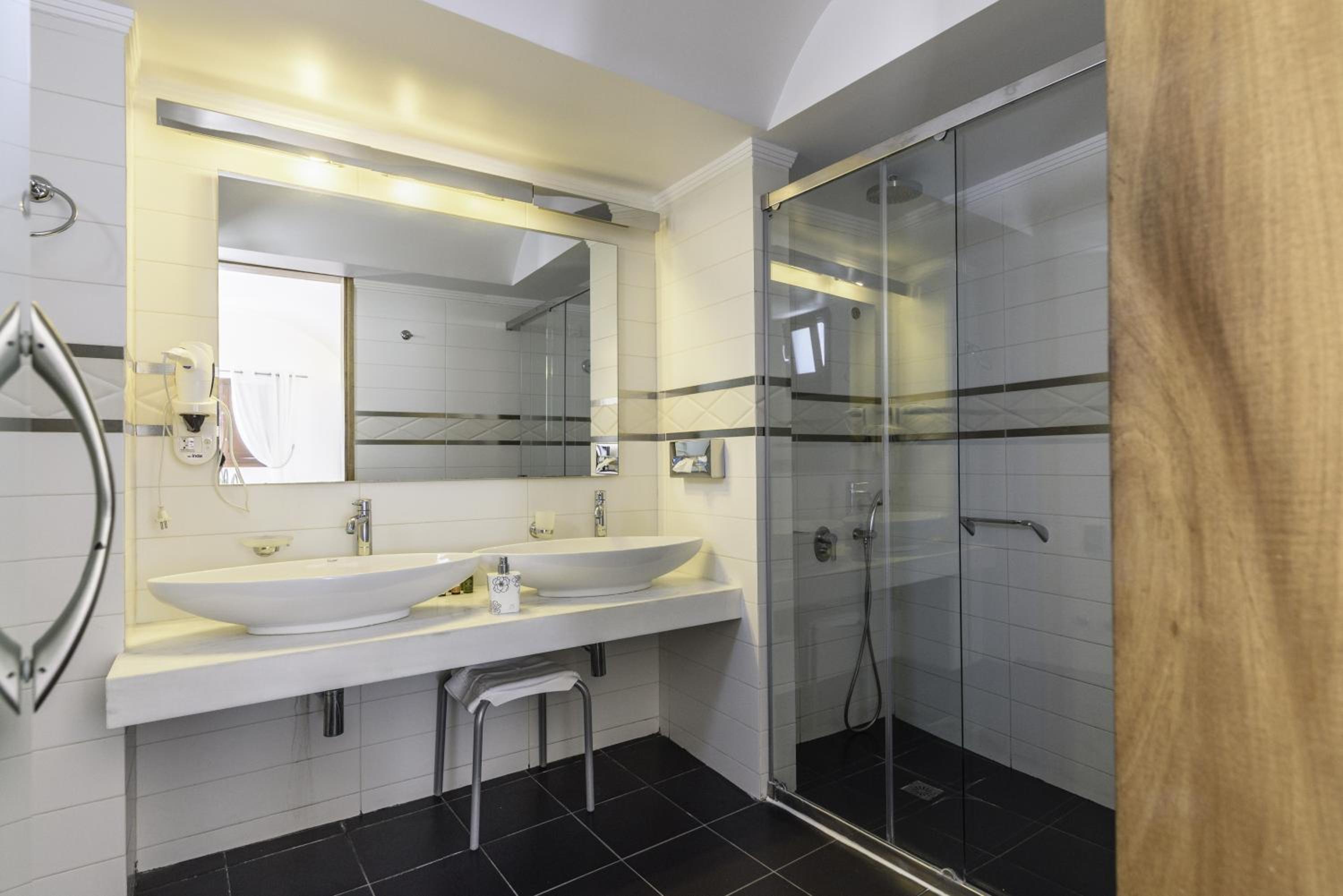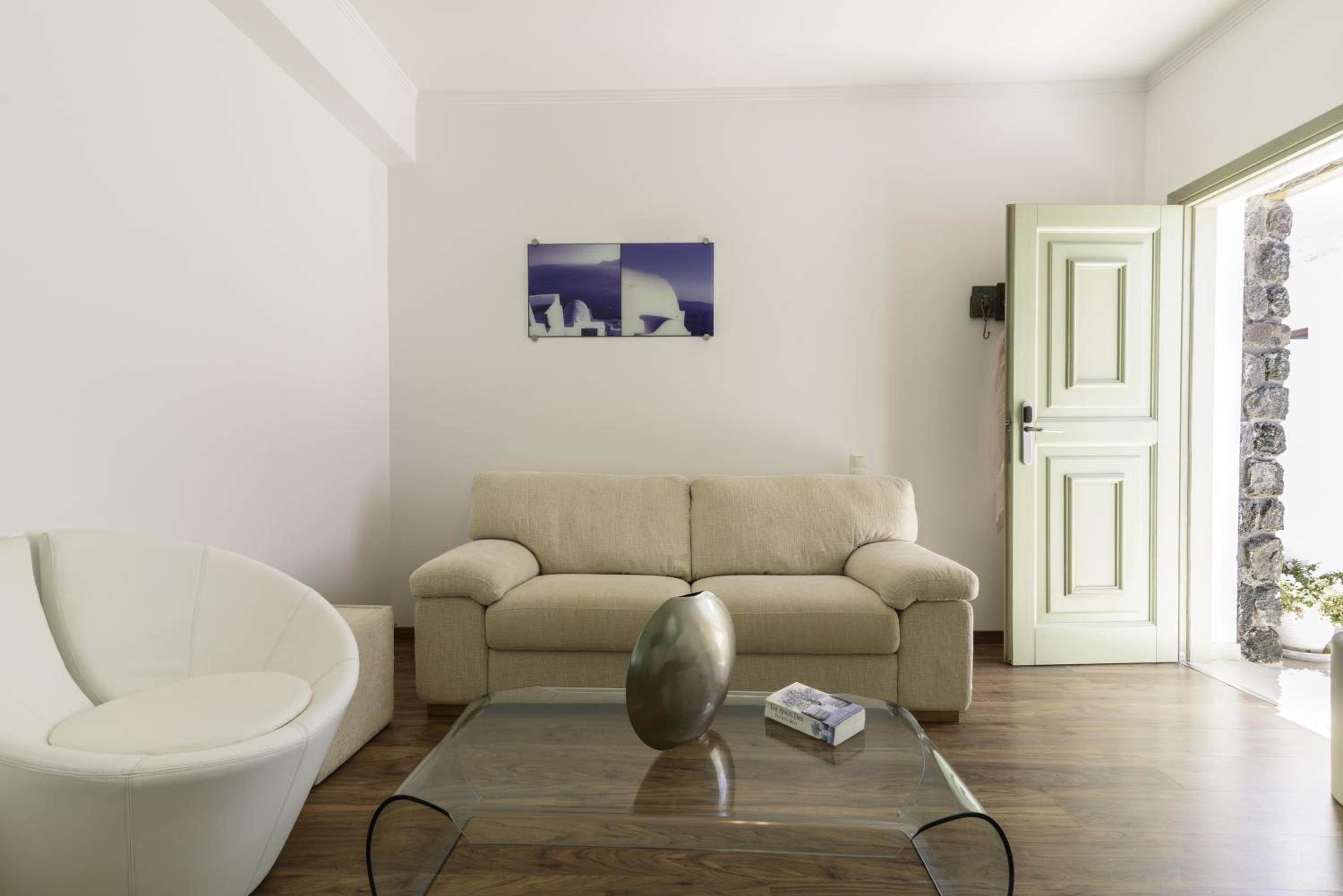 La Mer Deluxe Hotel & Spa, located just steps away from Kamari Beach, offers elegant rooms blending traditional Cycladic design with modern amenities. Enjoy a hydromassage tub or shower, flat-screen TV, and free Wi-Fi in every room.