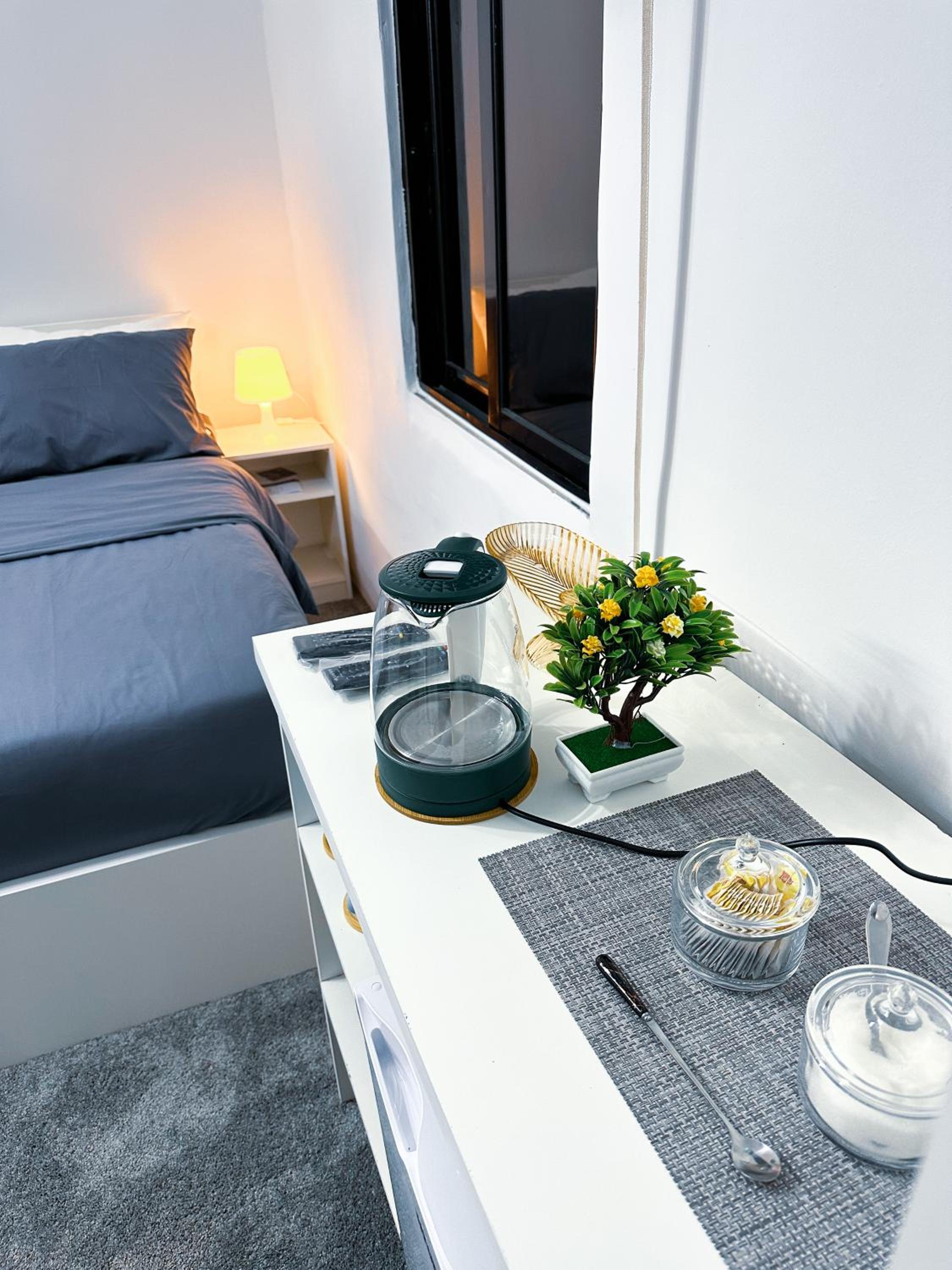 The room is very tidy and it comes with a balcony.