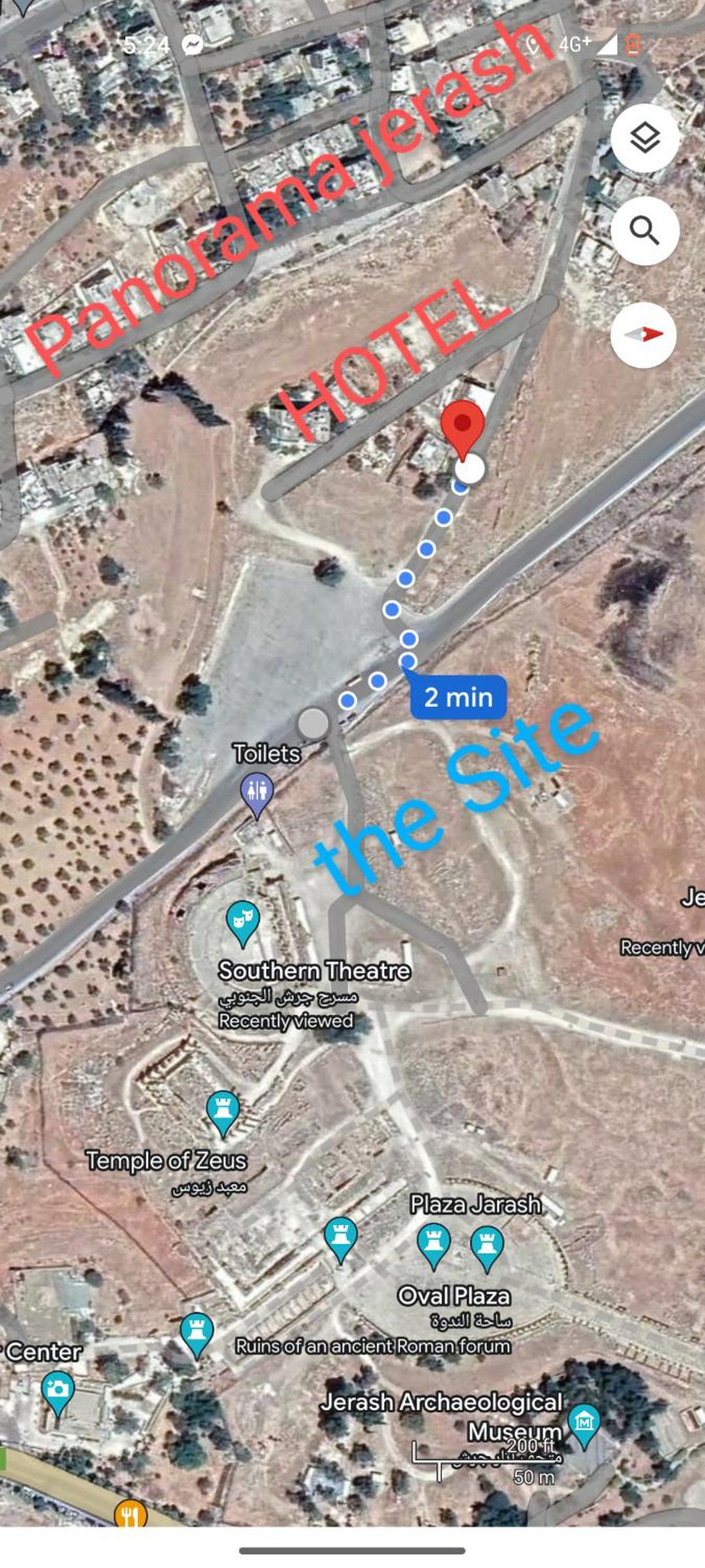 This hotel is right in the middle of Jerash, with a terrific night view of the city , walkable distance from the Jerash Historical Site. The property was cute and comfortable with beautiful balconies in lush greenery around. One minor discomfort you may notice are the bathroom doors, which are very fragile and partially open. But that is a minor issue, when you are on a single night stay. Everything else is worth every penny.