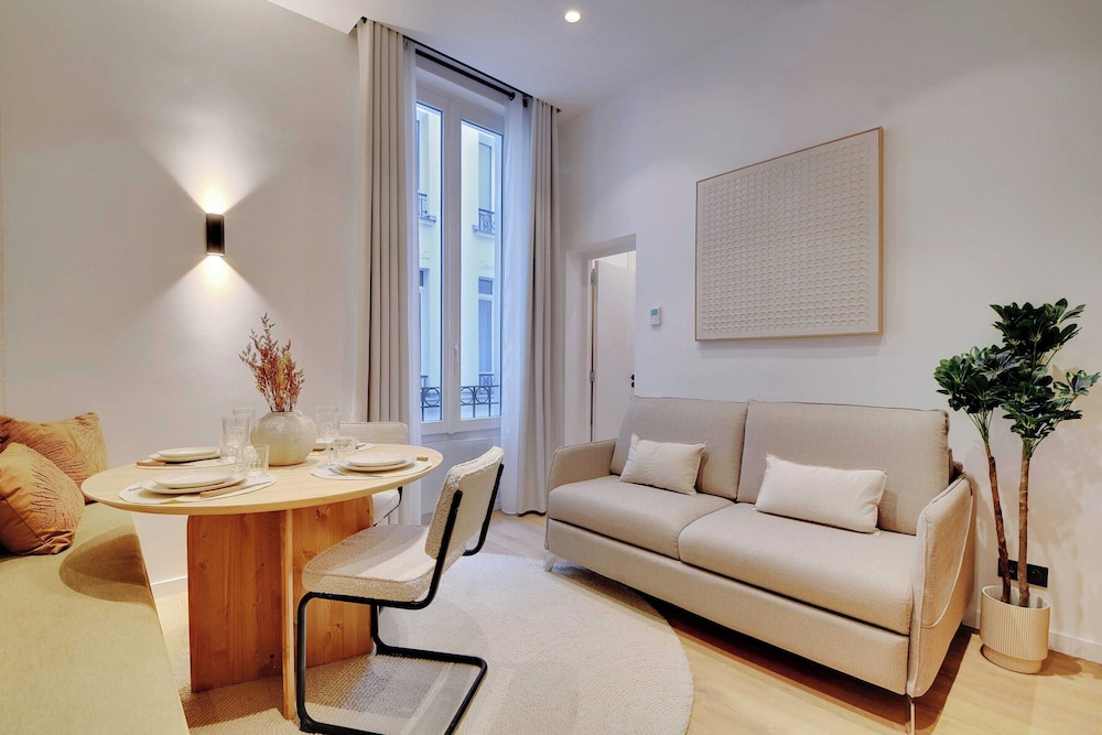 Stay close to popular attractions like Sacré-Cœur Basilica and Moulin Rouge in this chic apartment in the 18th Arrondissement of Paris. Explore the city with ease.