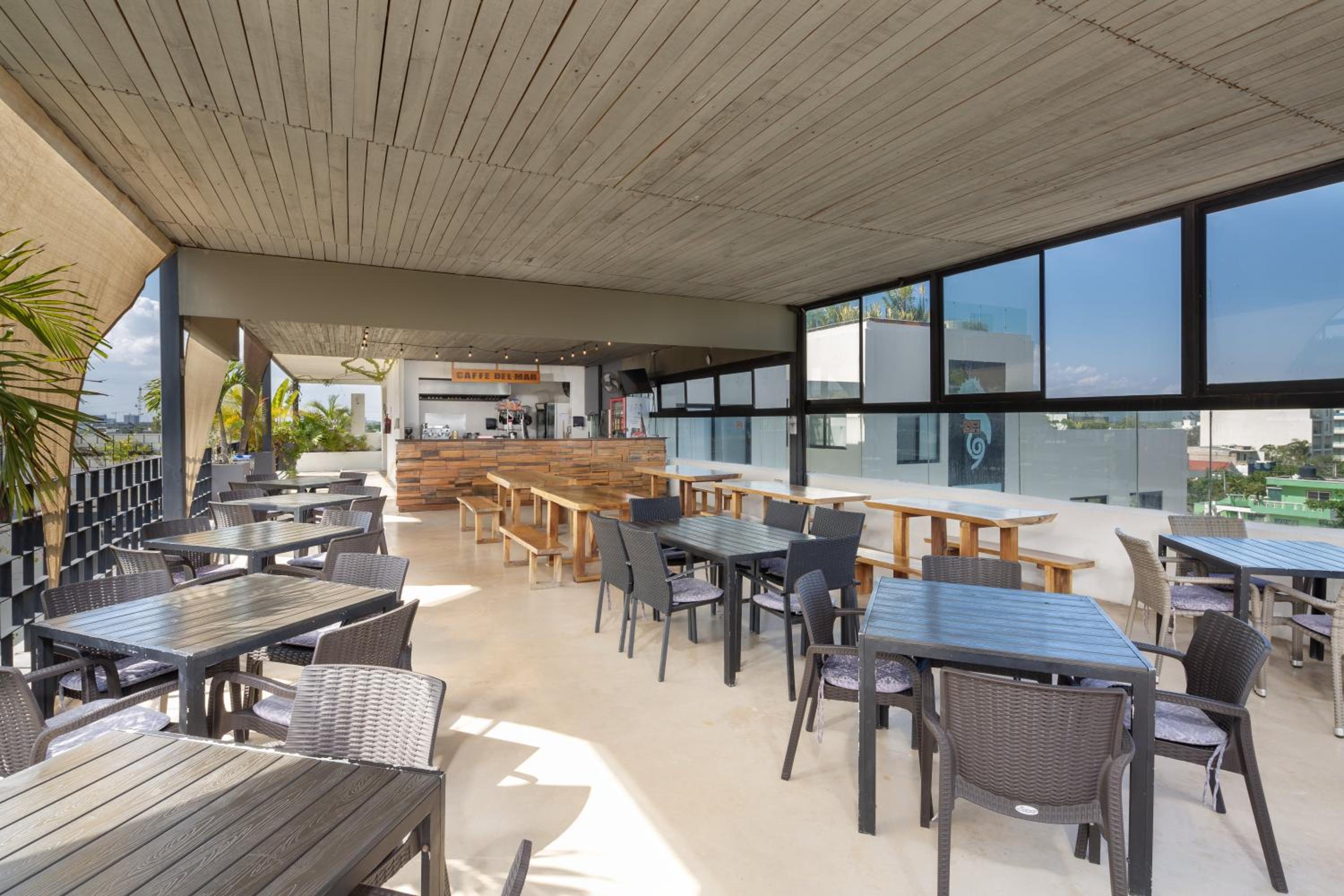 Piscine, resto à déjeuner et palapa sur le toit. Super belle vue.