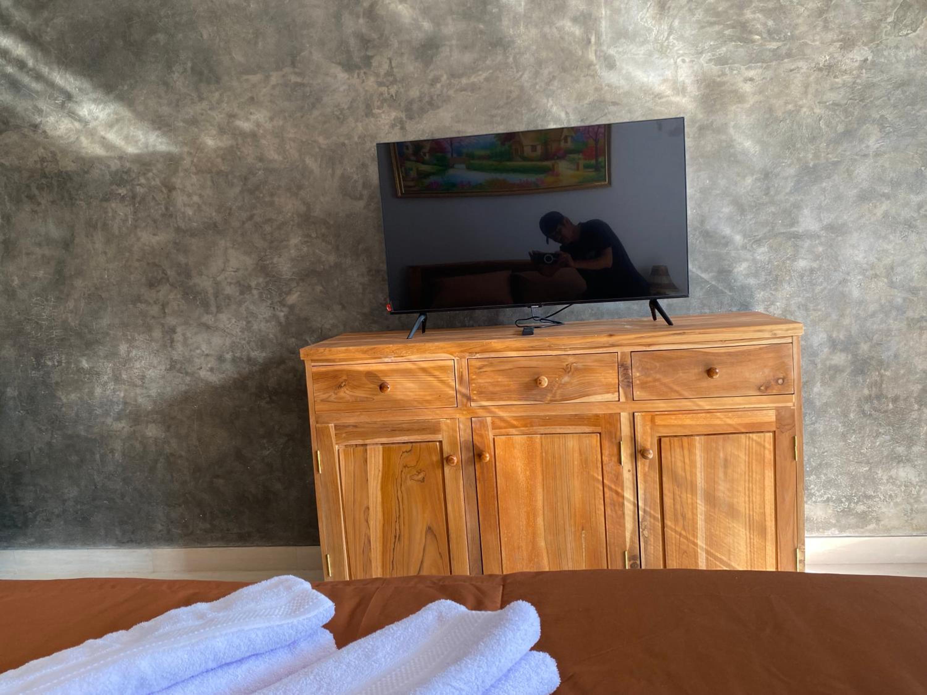 The room has a noticeable smell cz of the humidity is quite high. The road leading to this facility is not paved, so it is gravelly, and the pool is not clean.