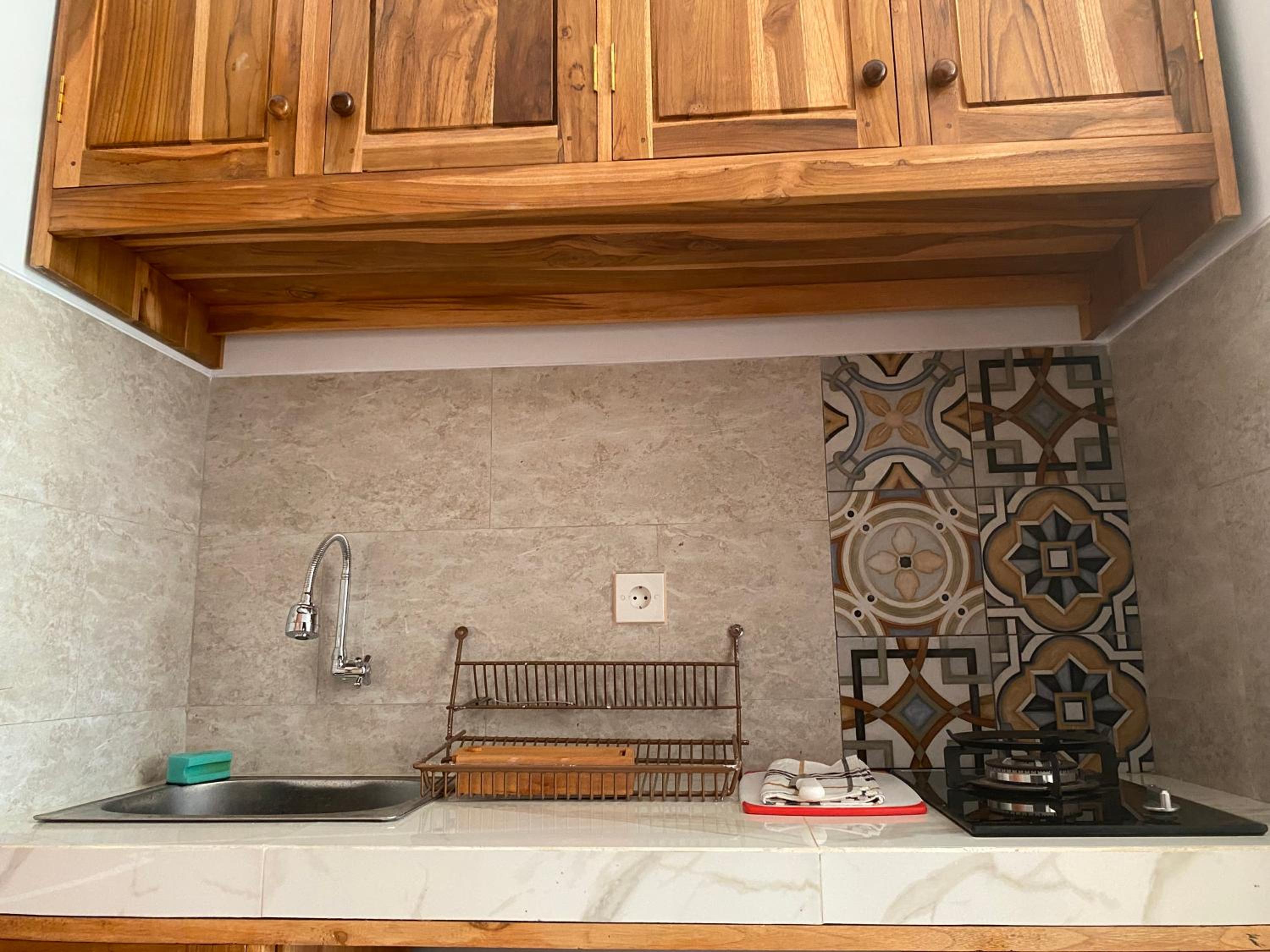 Enjoy a fully equipped kitchenette, pool views, and a balcony at Ningmas Residence 203.