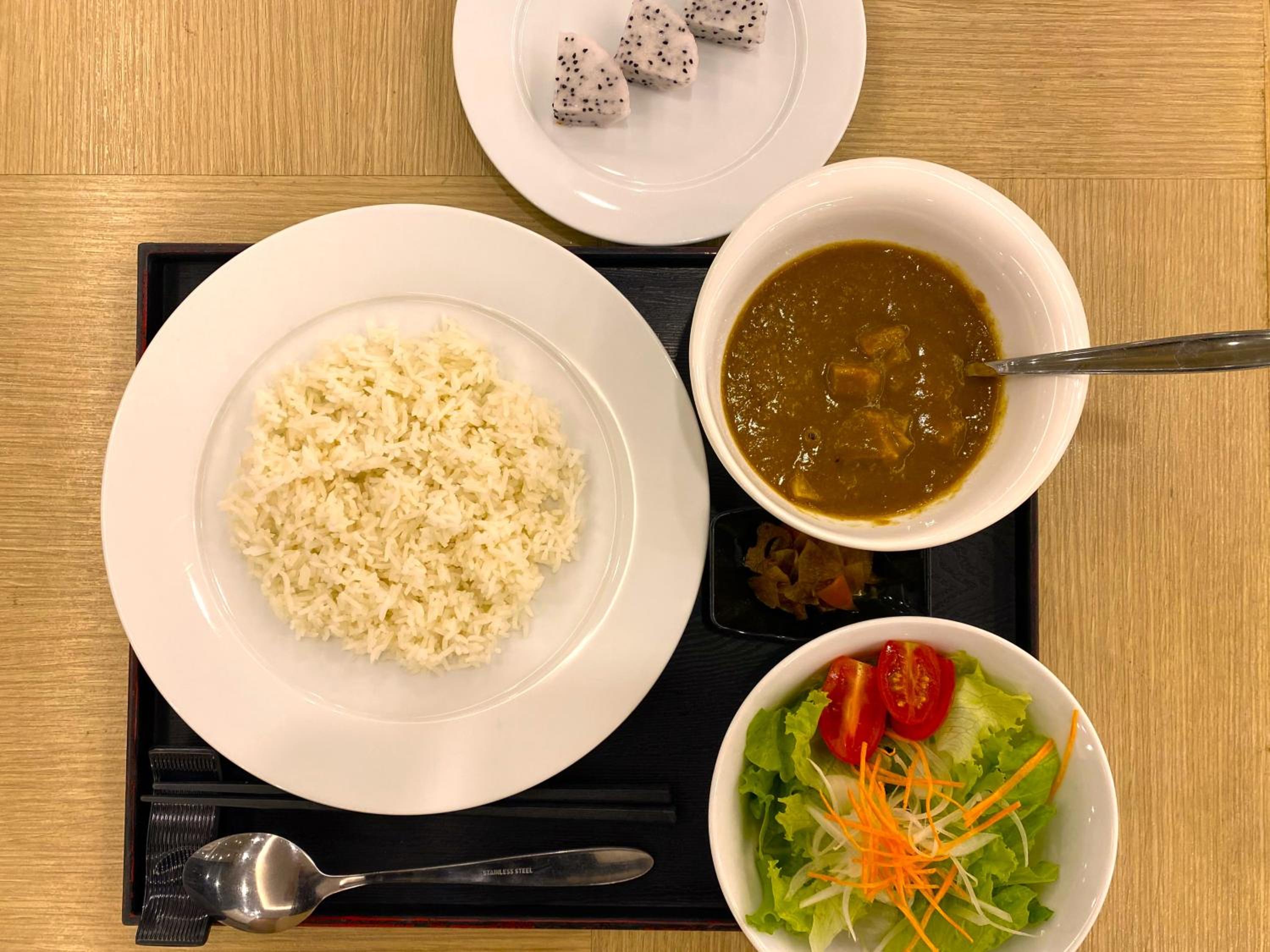 エレベーターもあるのでお部屋までの移動も楽だし、なにより、夕食サービスでのカレーと、夜食サービスのおにぎりと味噌汁が、海外長期滞在の際には非常に嬉しかったです。