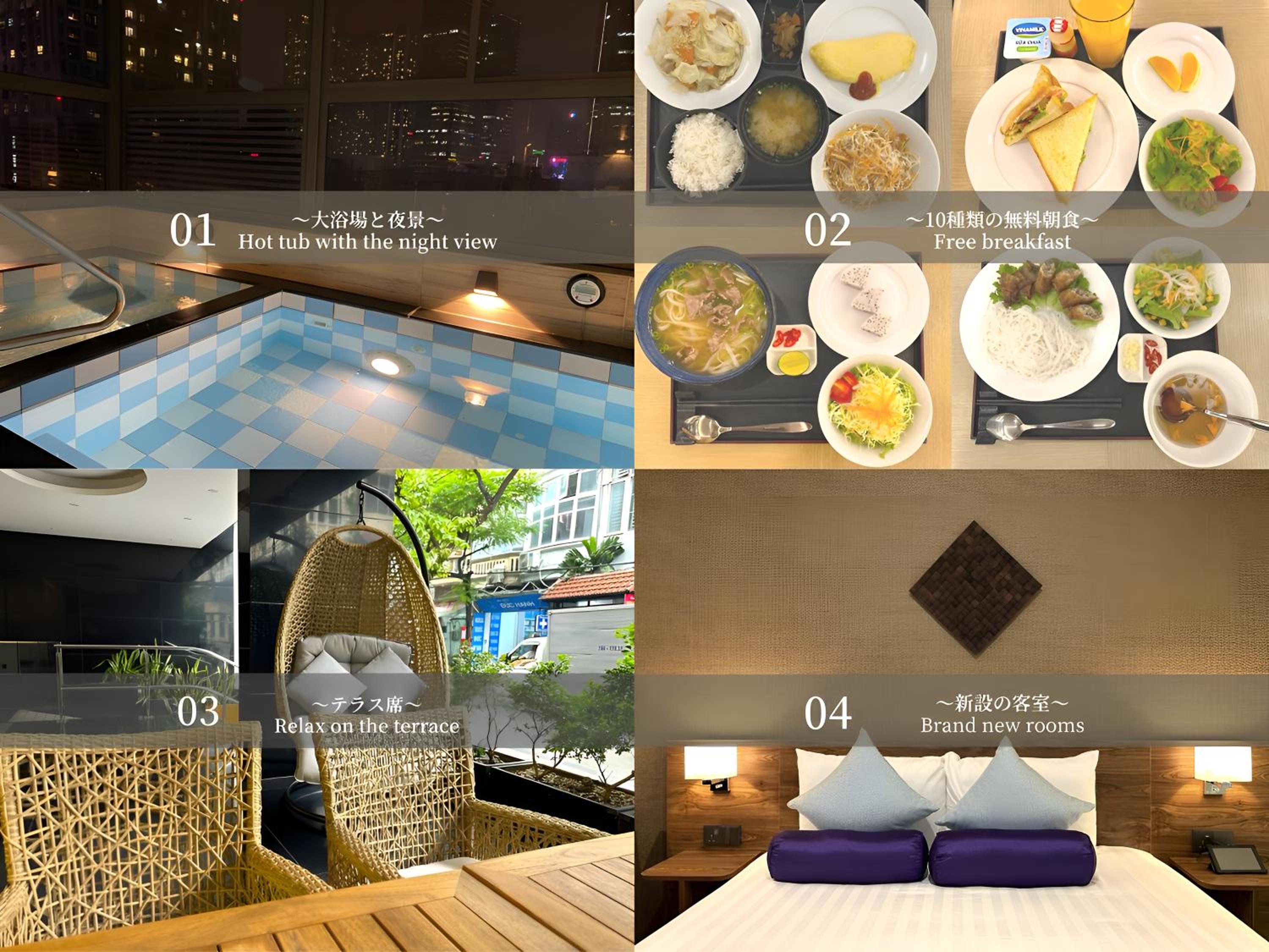 部屋きれい、ウォシュレットありがたい、大浴場ありがたい、日本人街から近い、コンビニすぐ、朝ごはん美味しい、フロントは皆日本語OK