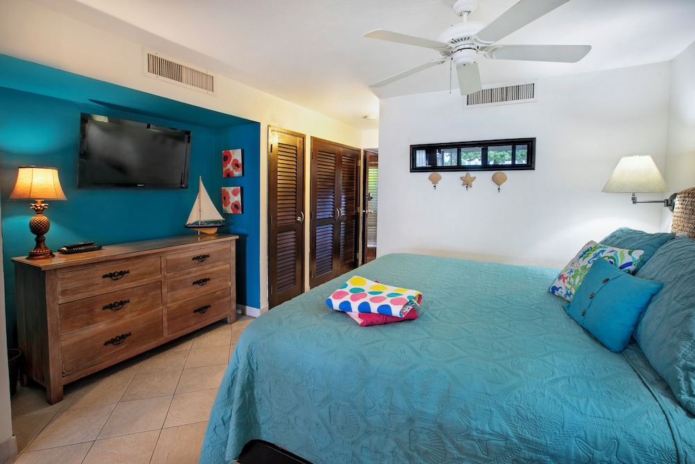 Very good location, short drive to red hook, bar, food, and beach right in front of the condos.
