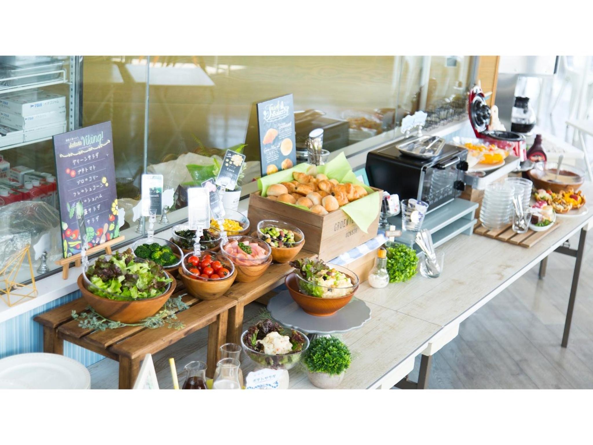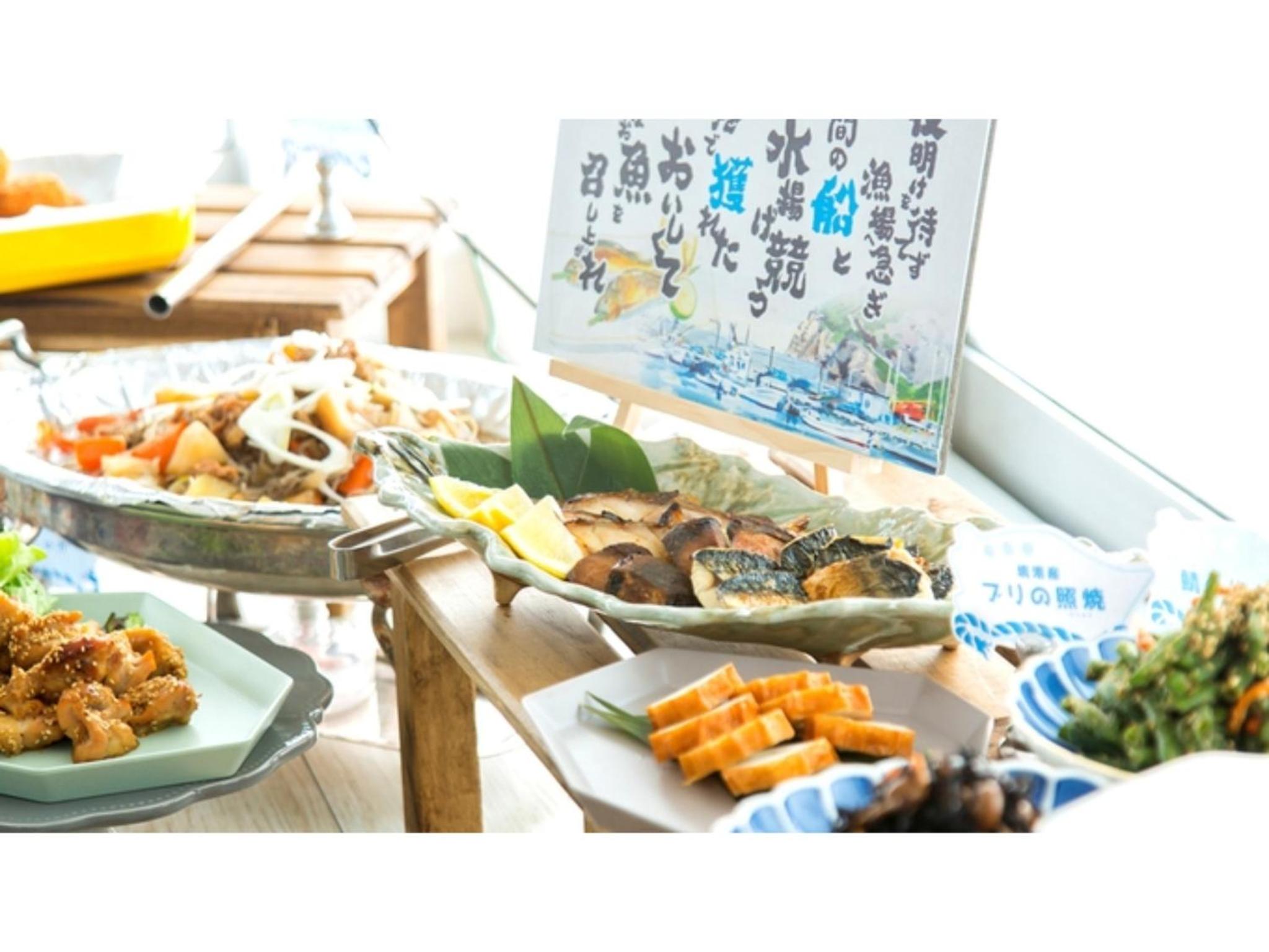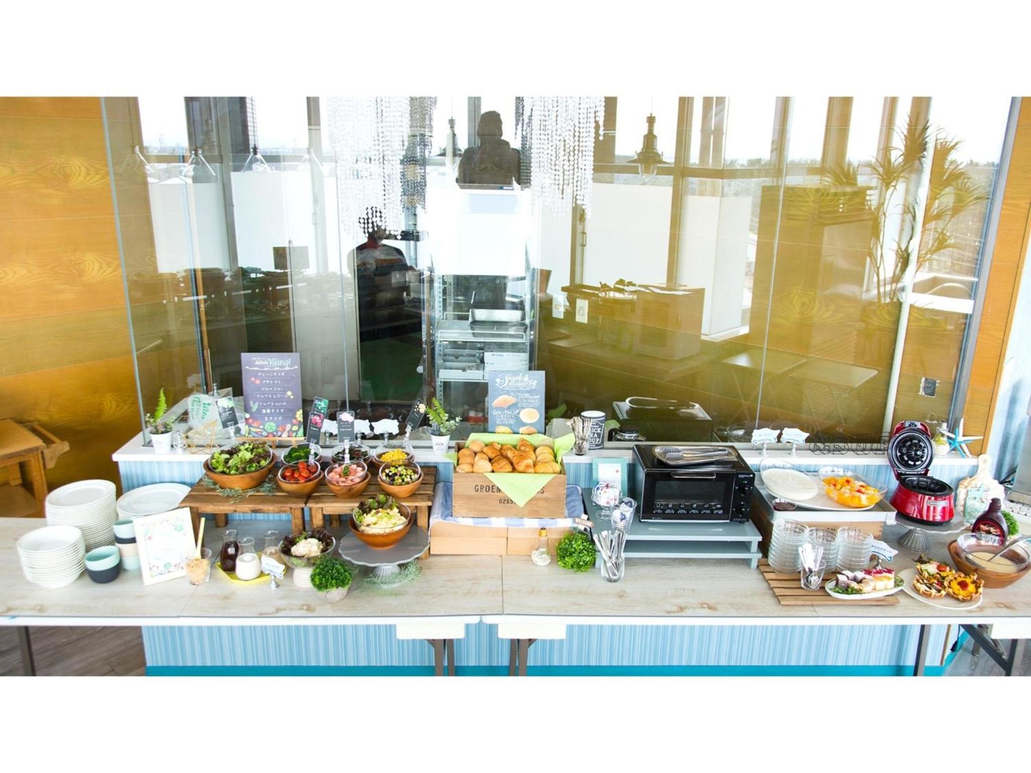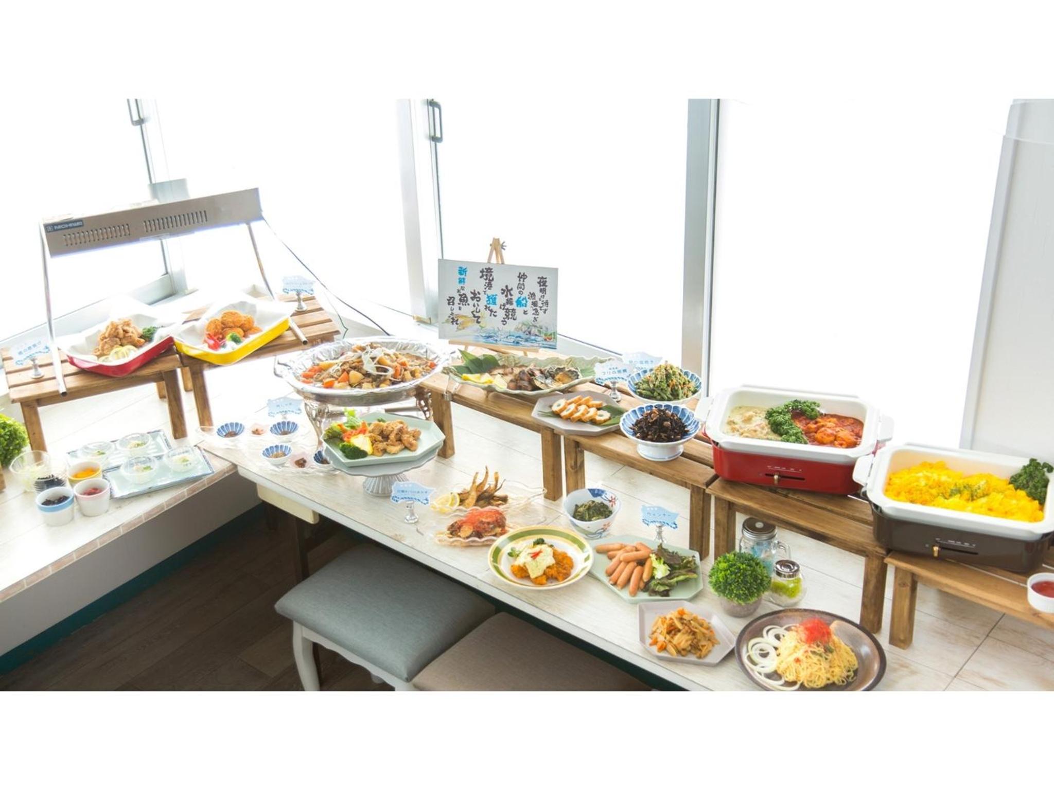 朝食会場からの眺め&食事(海鮮丼作れます)。