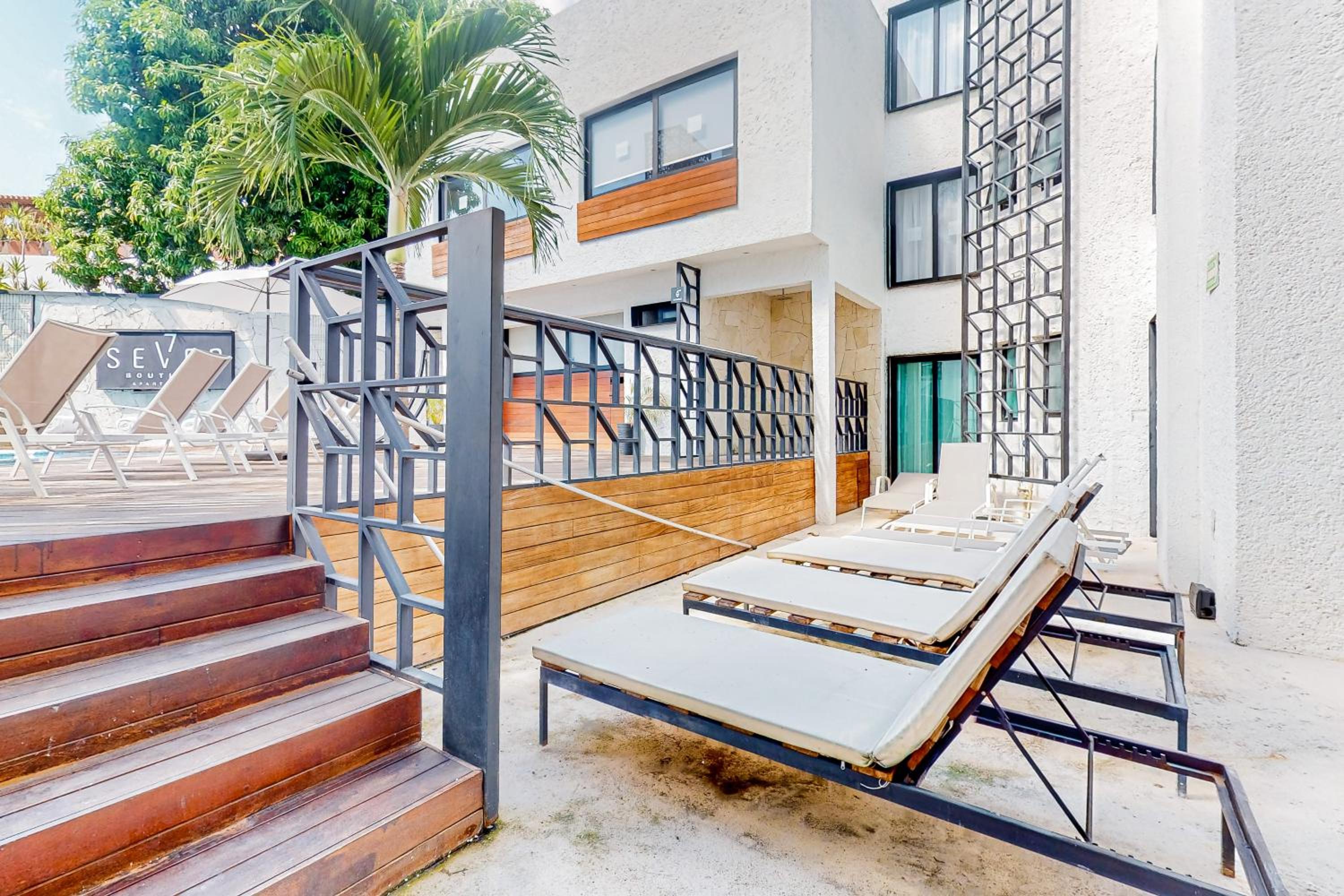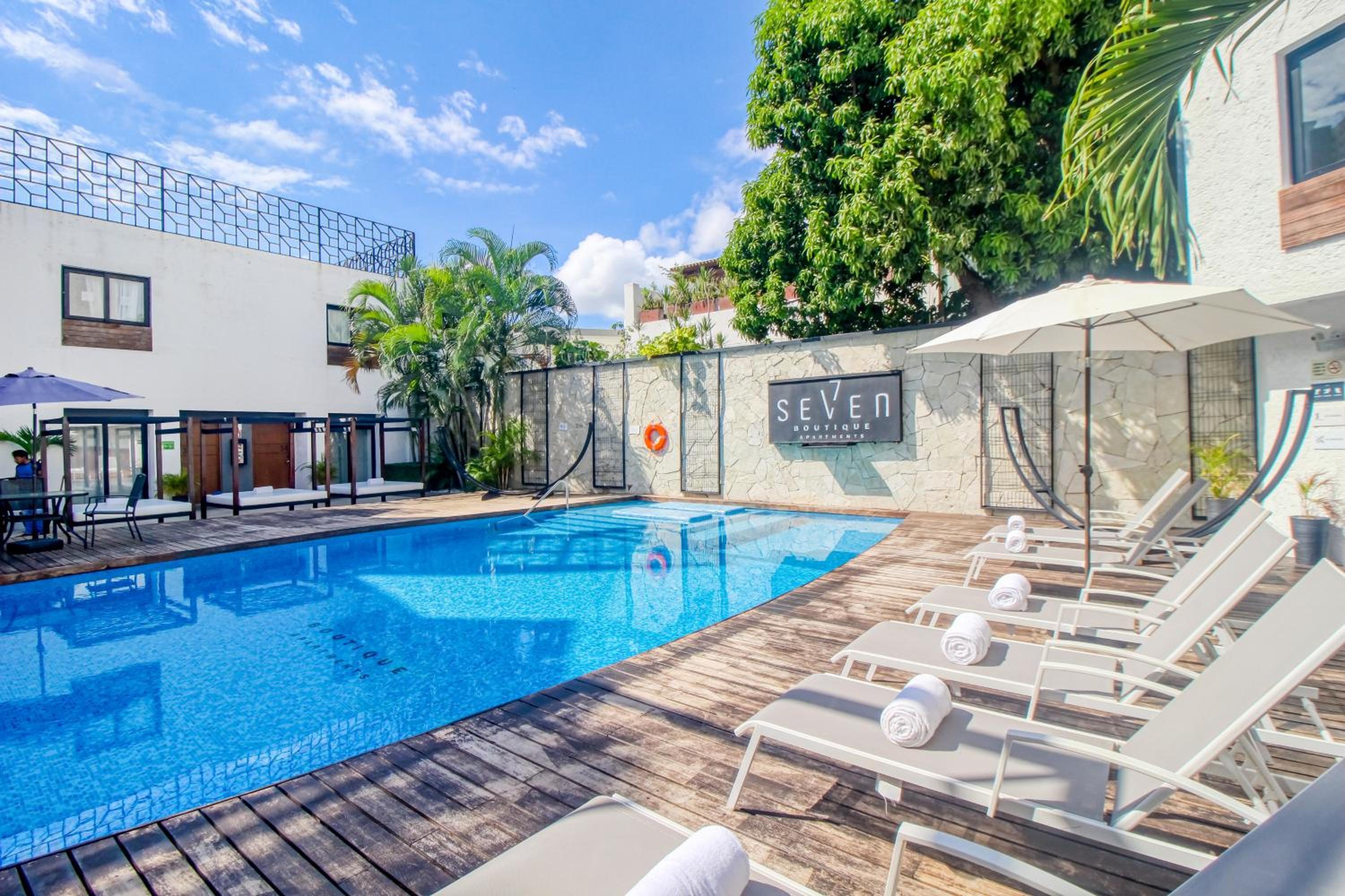 Seven Boutique 25, nestled in the heart of Cancún, offers a lavish stay with modern amenities. The 2-bedroom aparthotel boasts a fully equipped kitchenette, a plunge pool, and a private entrance, ensuring a comfortable and exclusive experience for guests.