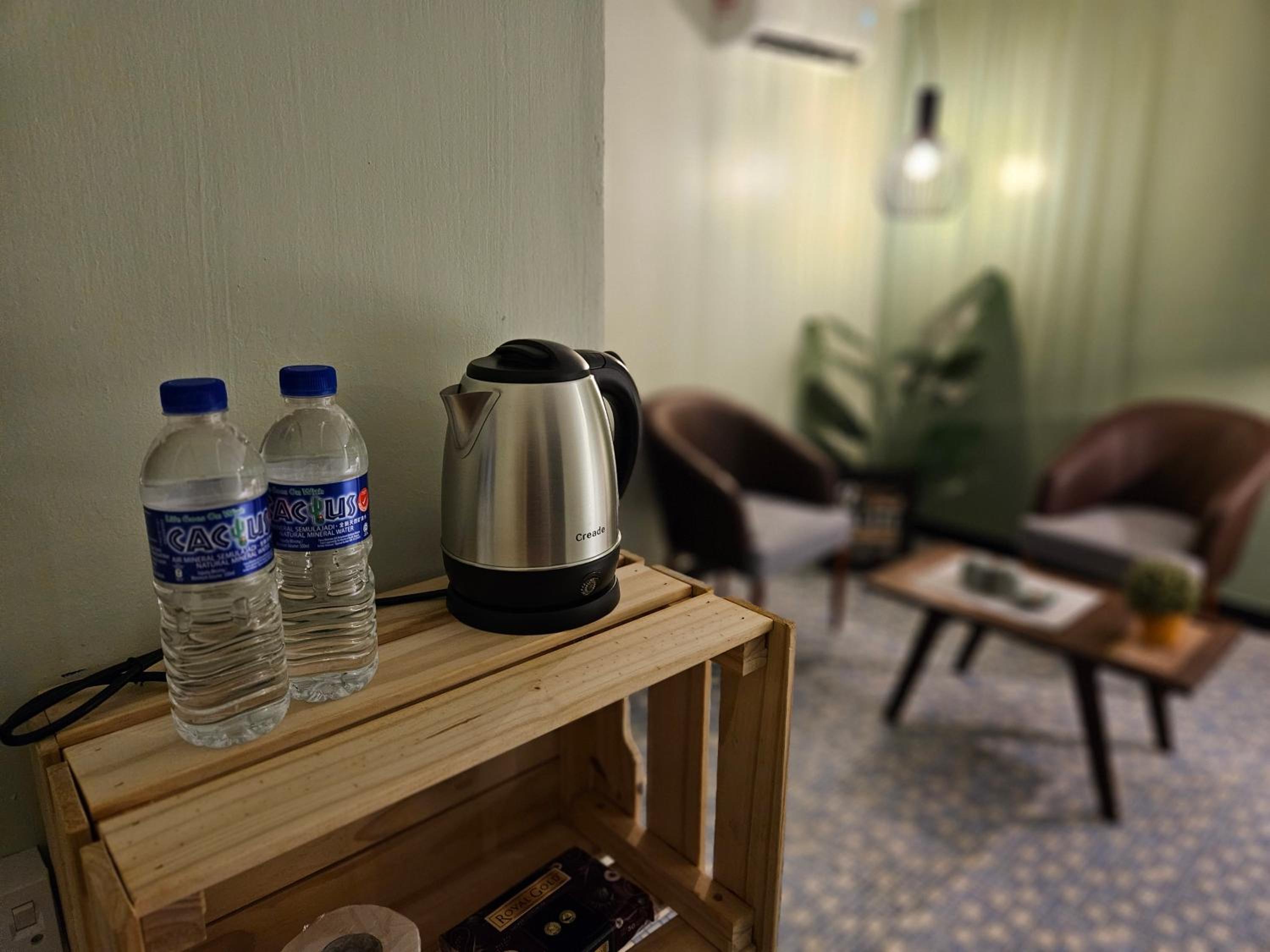 Just the basics, location location, great bed, good aircon, good shower, hot water kettle a mini frig. would be nice addition. Worked for me.