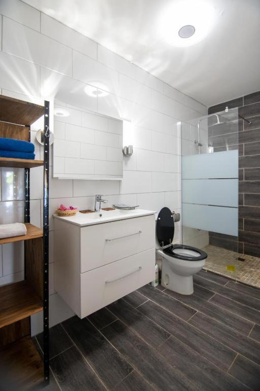 J ai pris un certain temps à localiser les interrupteurs des lumières! Peut etre penser a mettre une prise électrique dans dans la salle de bain. a part de ça c etait parfait pour moi.