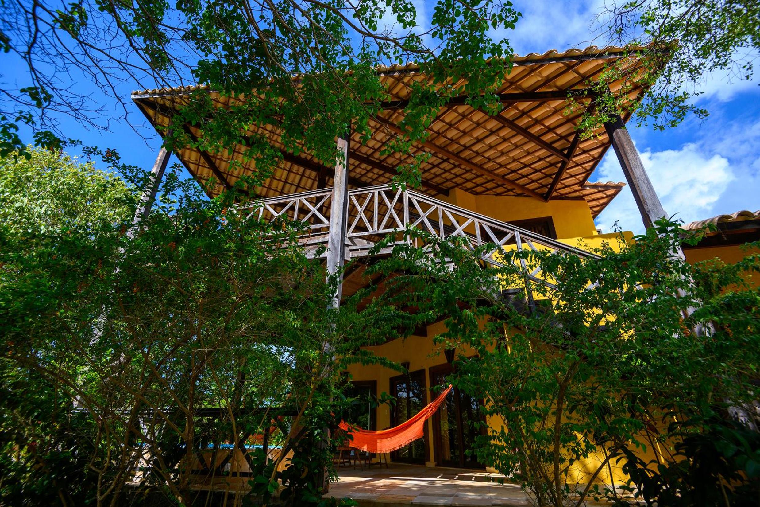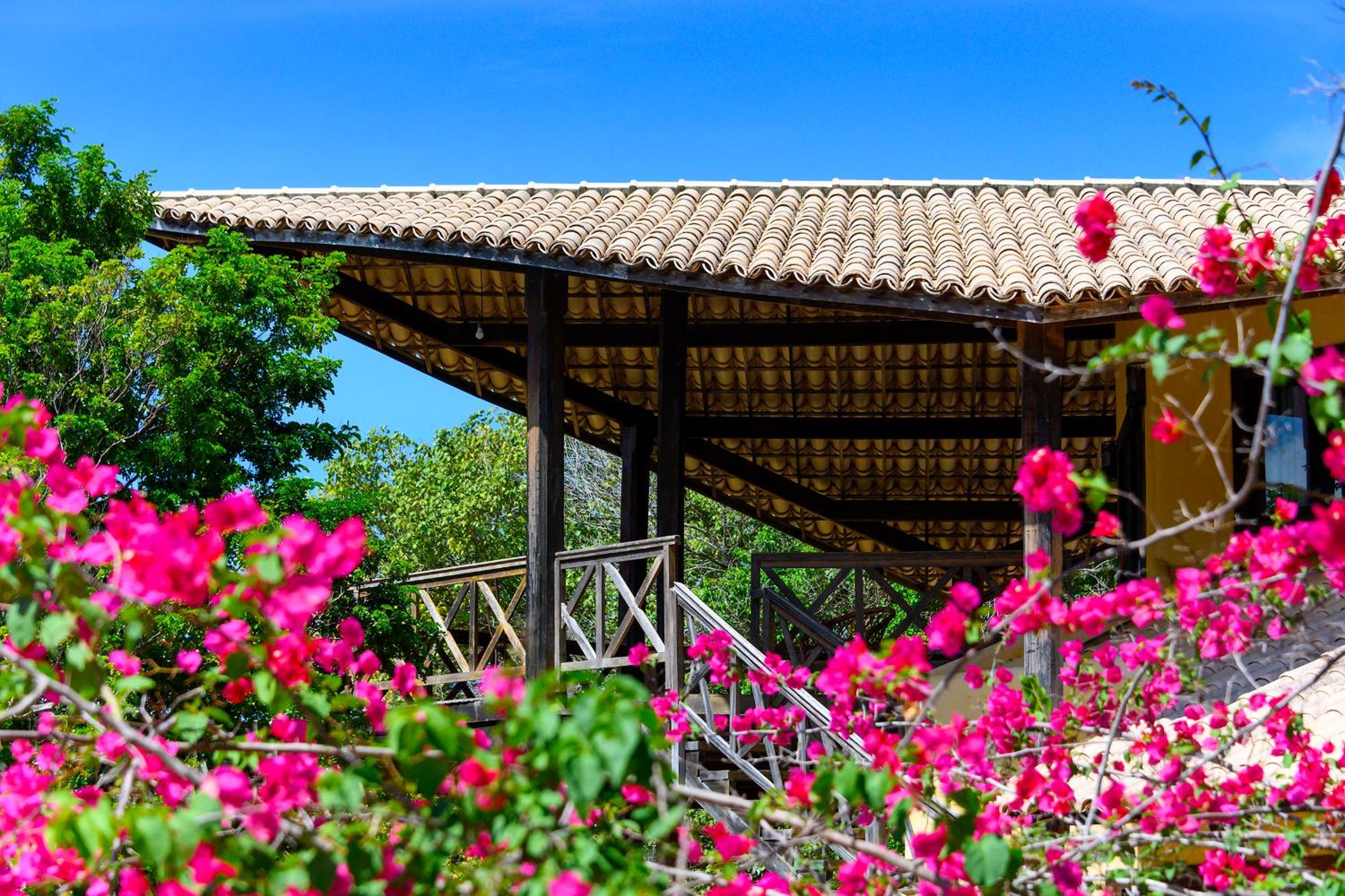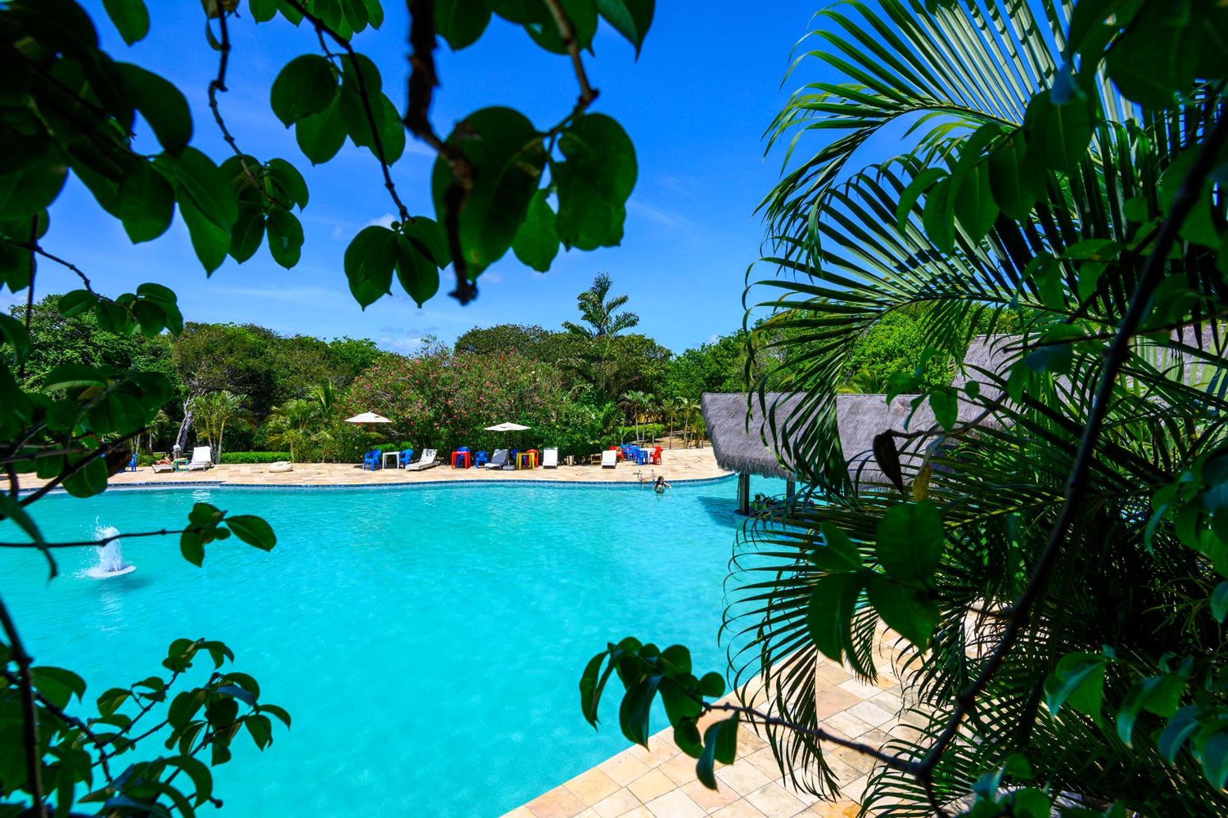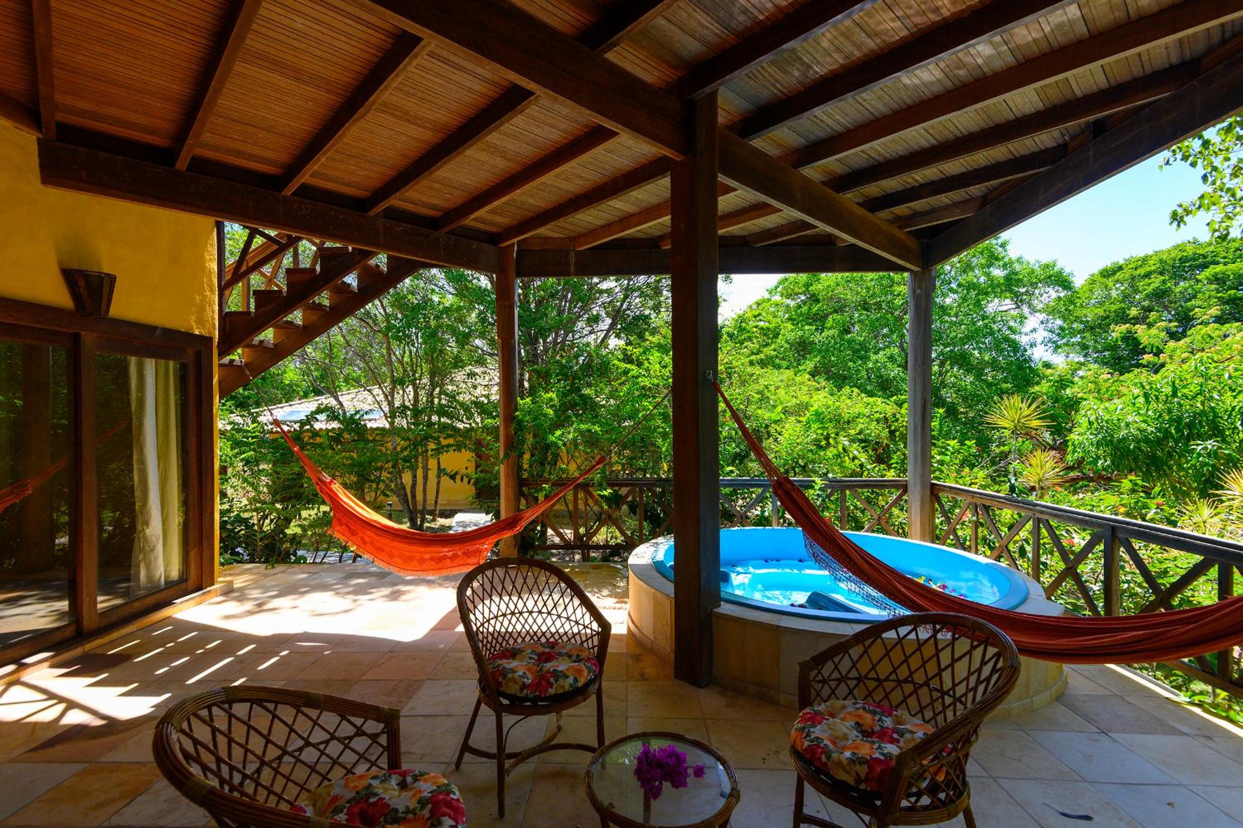 Lago Hotel in Pipa offers a unique experience, nestled in a large rainforest with native plants and fruit trees. The tranquil setting is perfect for a relaxing getaway.
