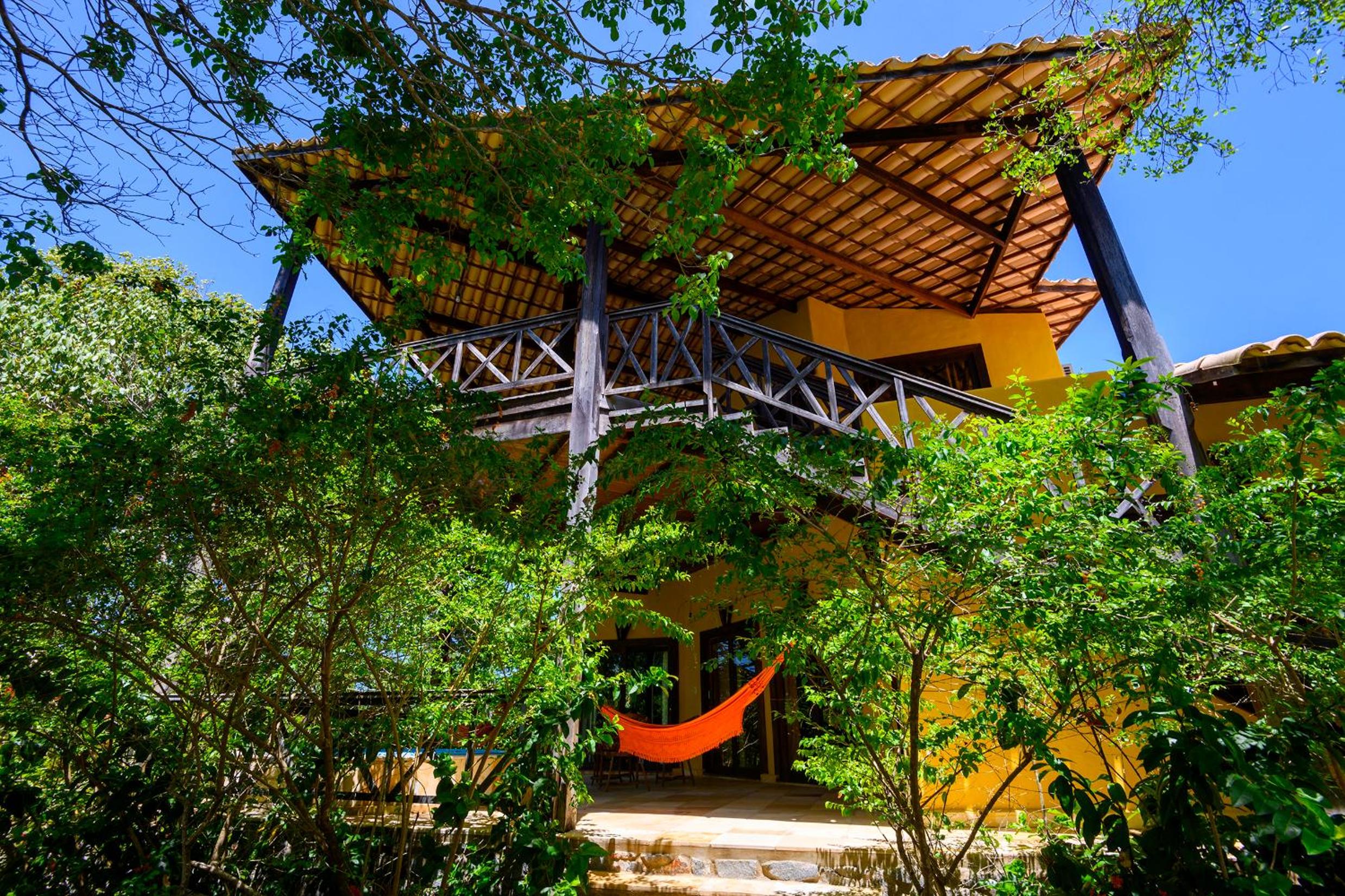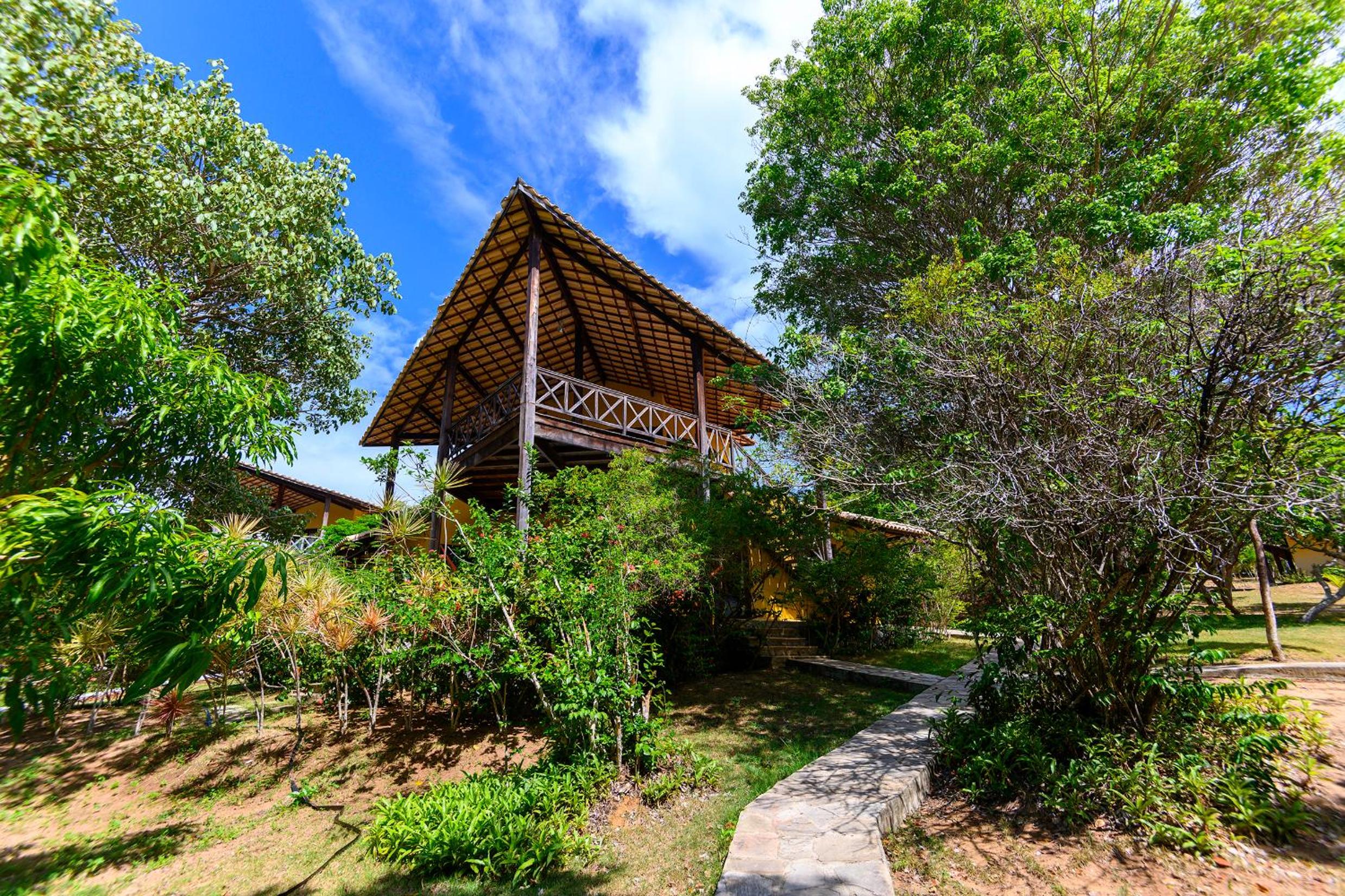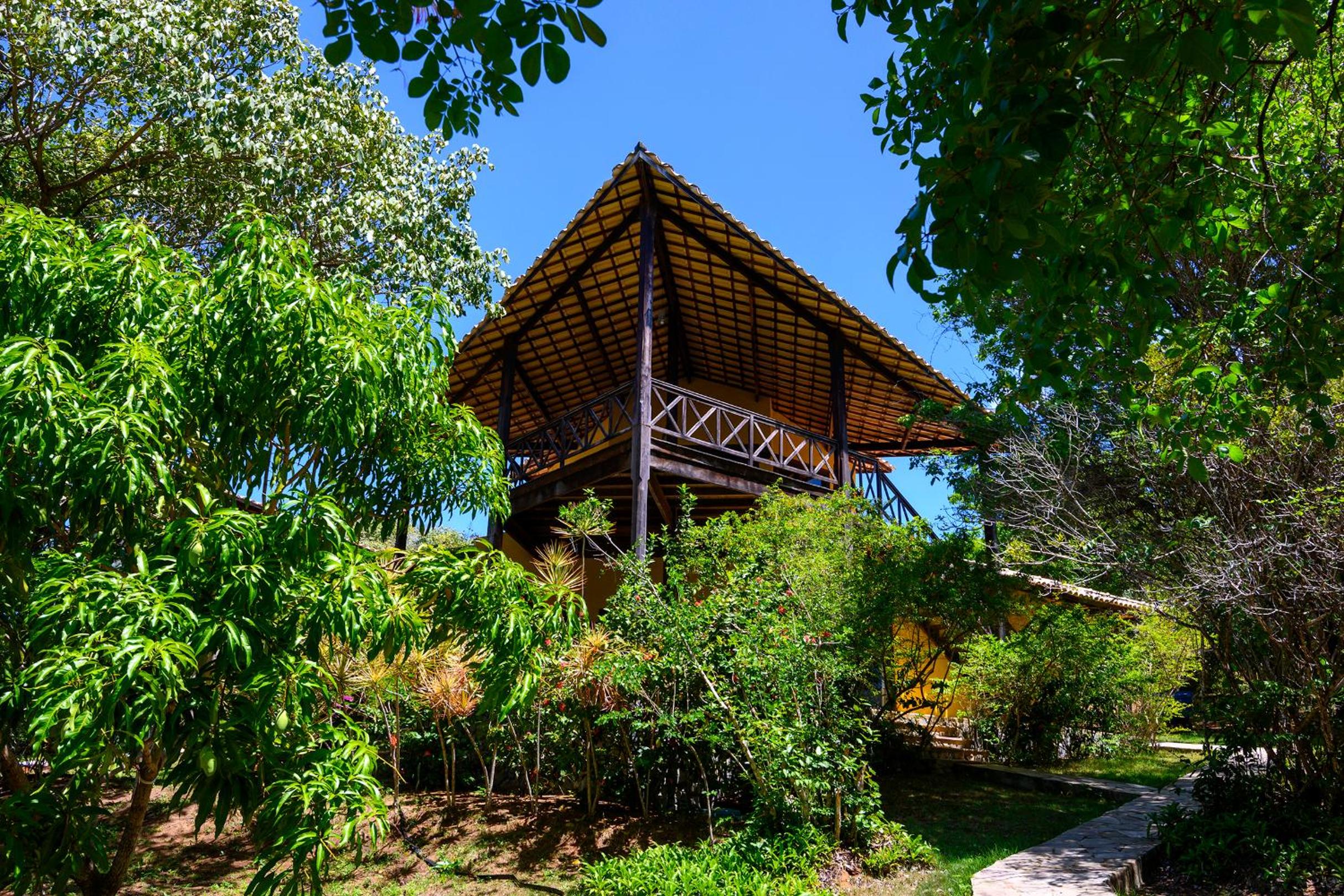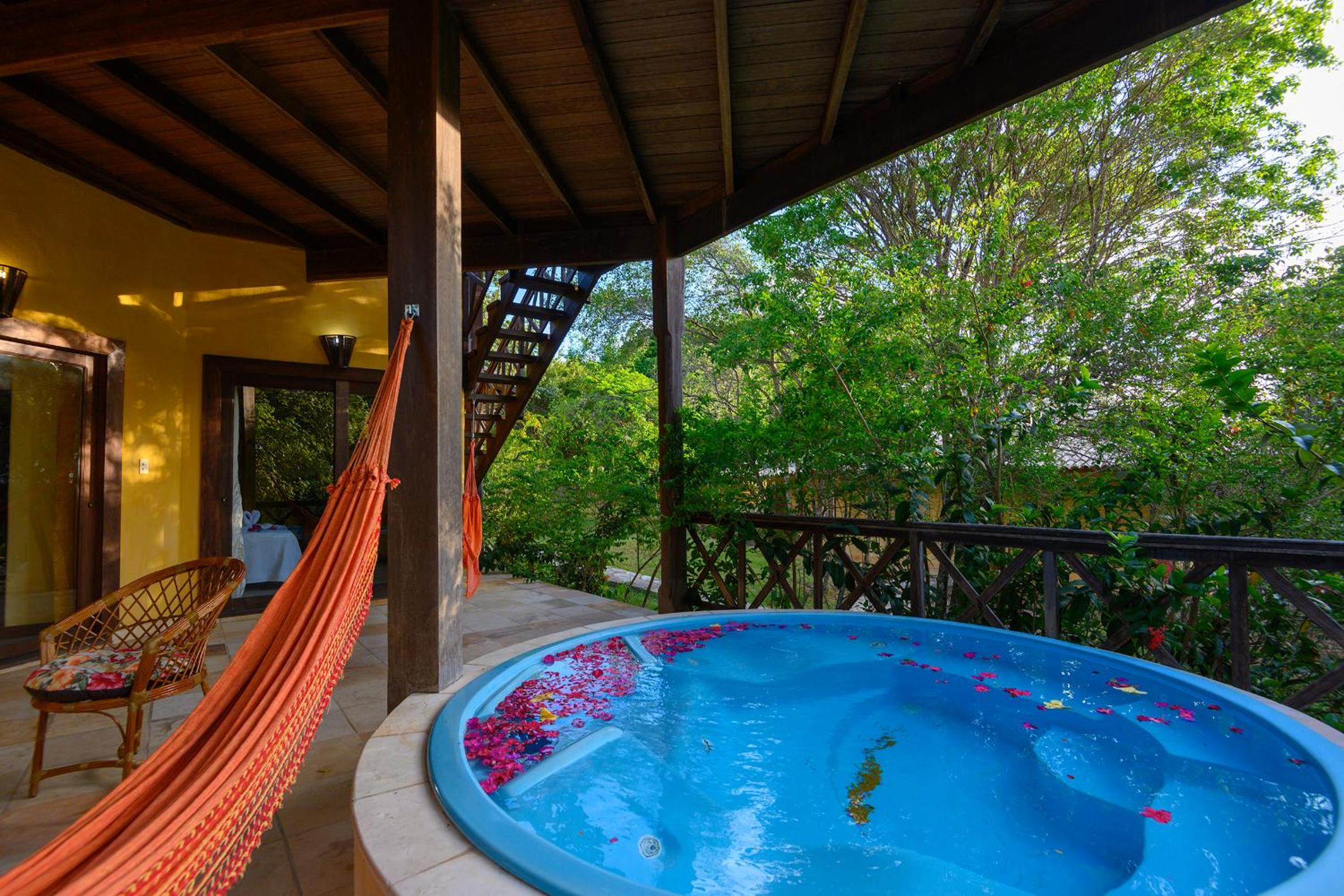 Lago Hotel in Pipa offers a unique experience, nestled in a large rainforest with native plants and fruit trees. The tranquil setting is perfect for a relaxing getaway.