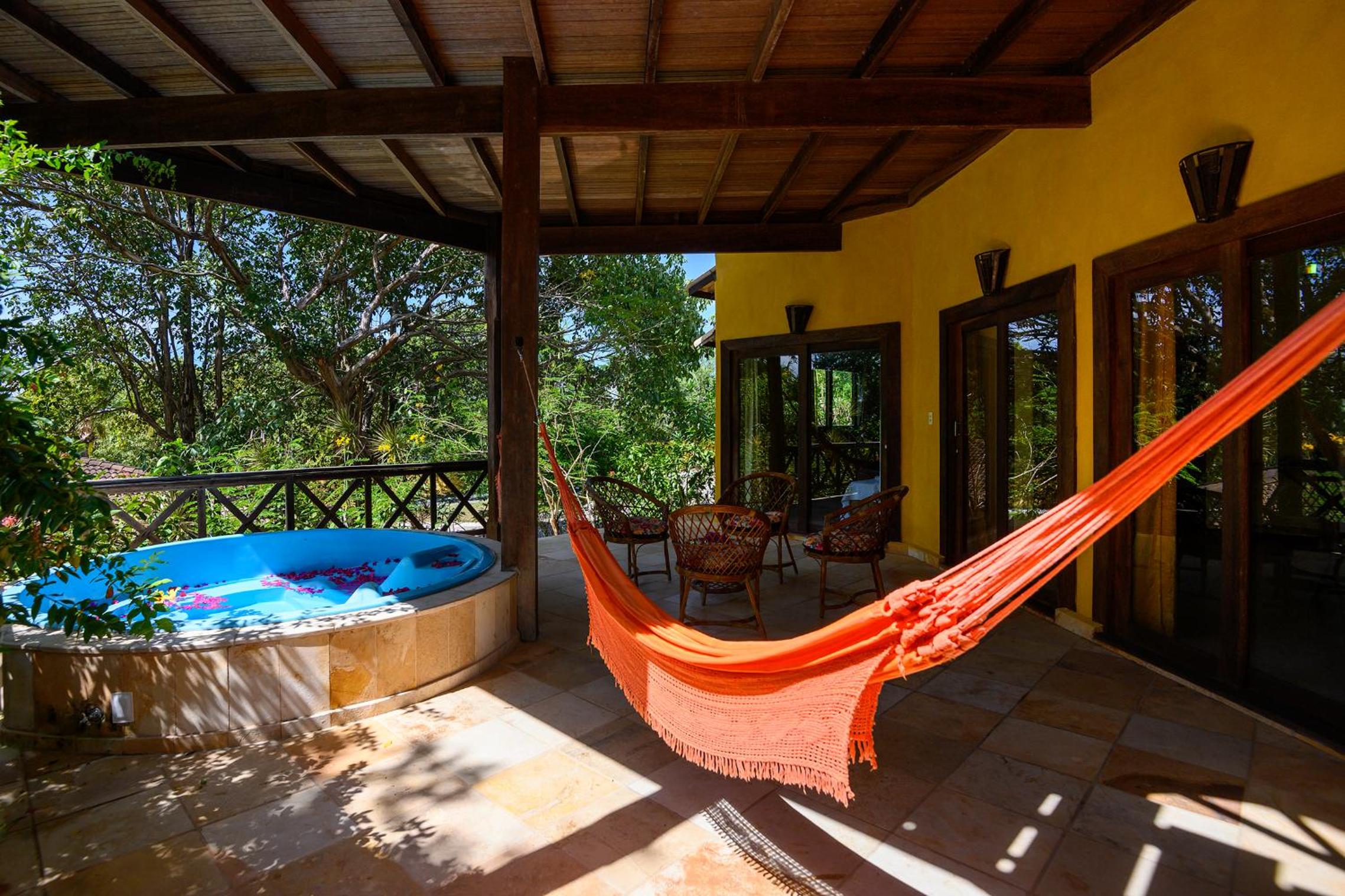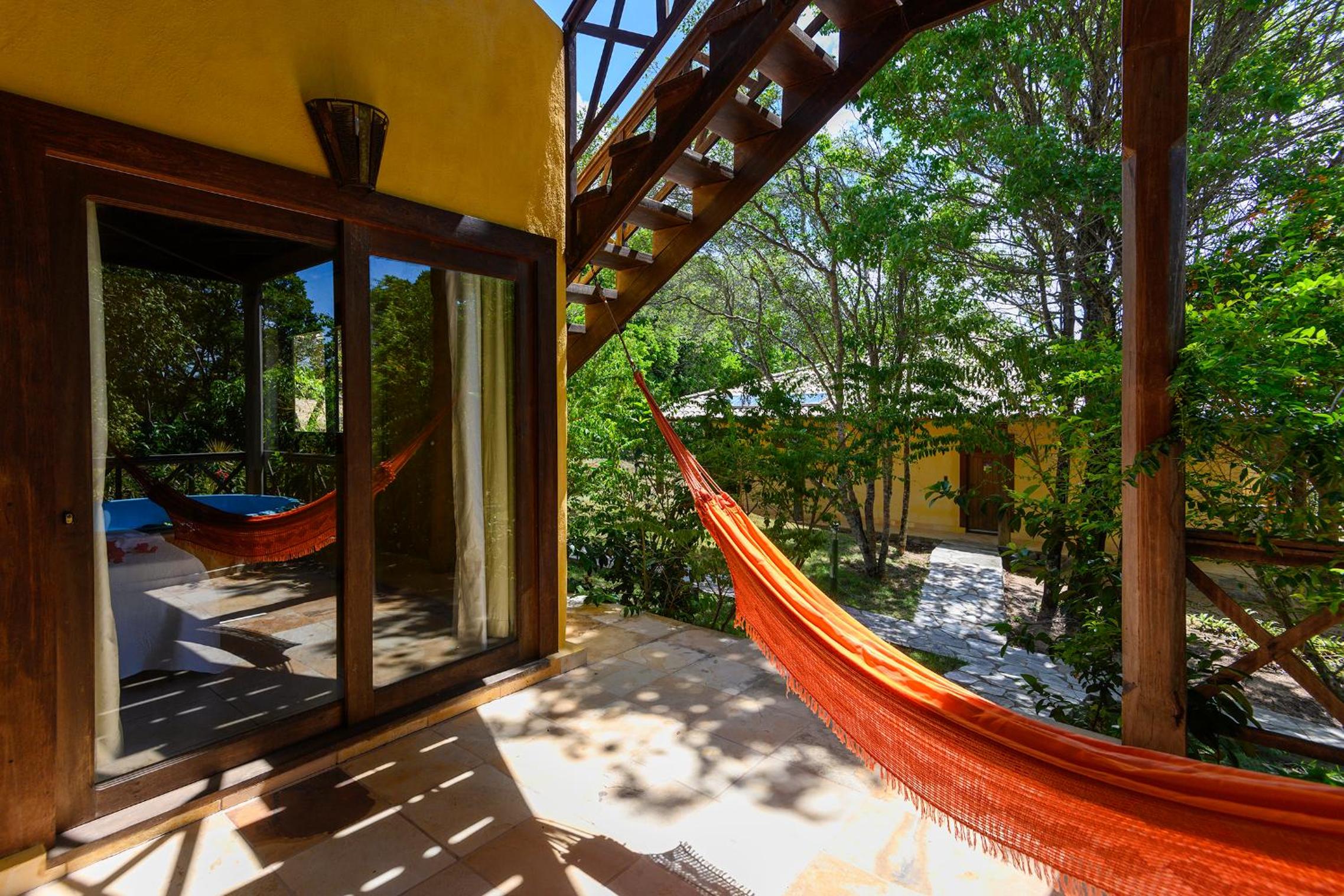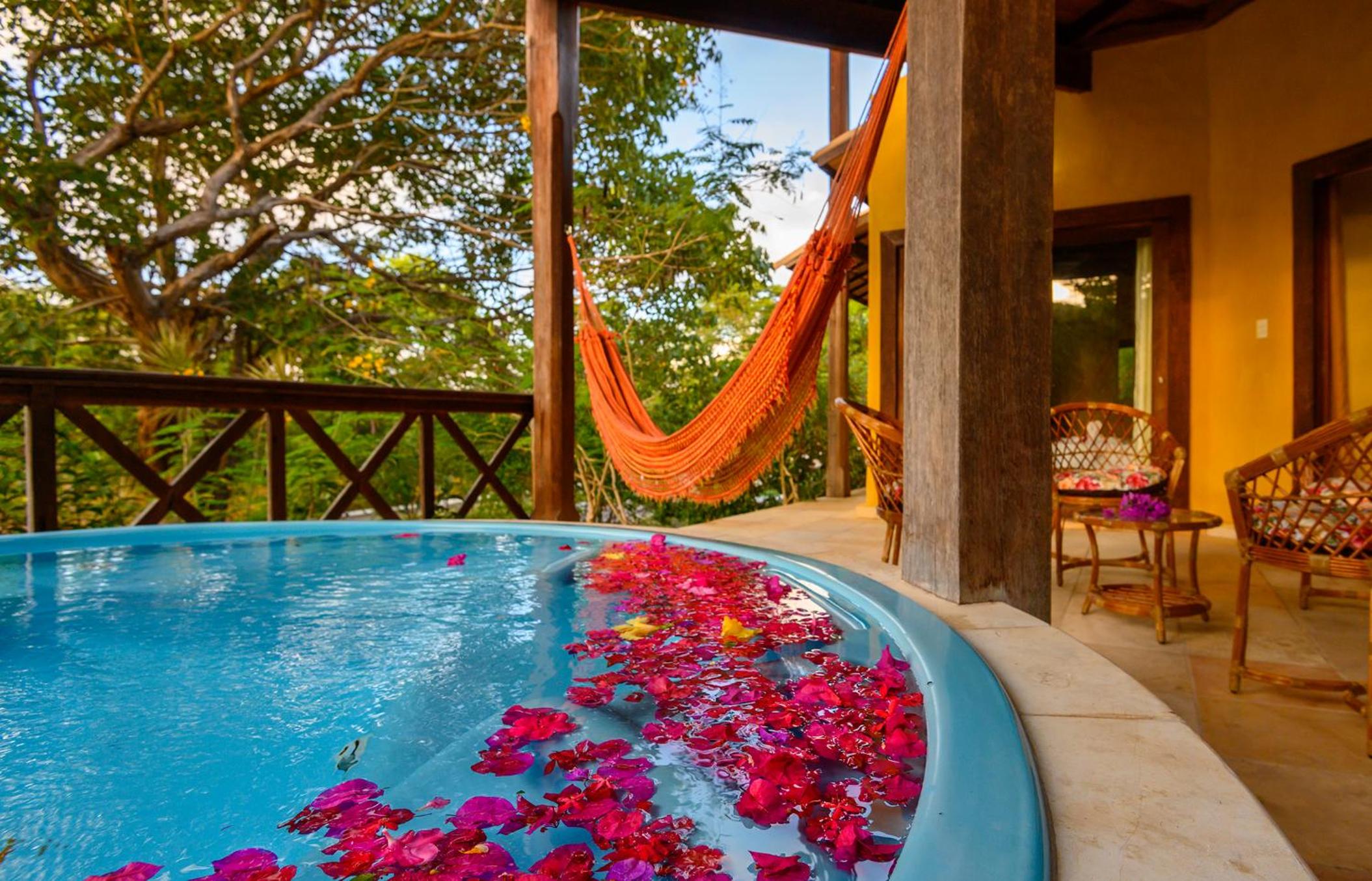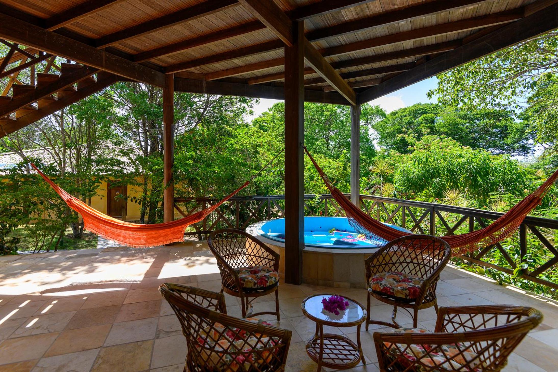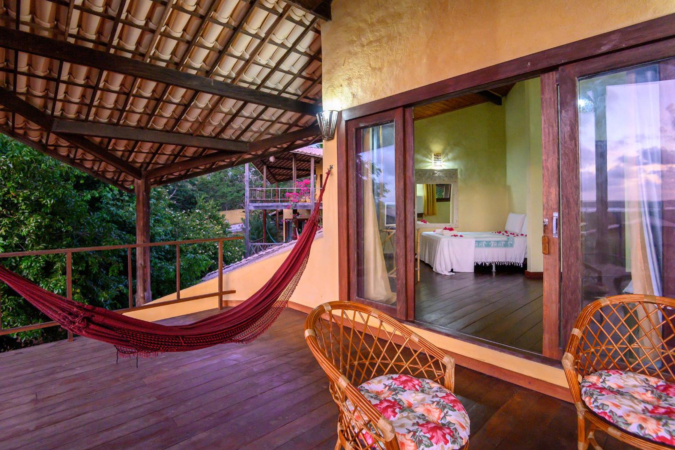 Lago Hotel in Pipa offers a unique experience, nestled in a large rainforest with native plants and fruit trees. The tranquil setting is perfect for a relaxing getaway.