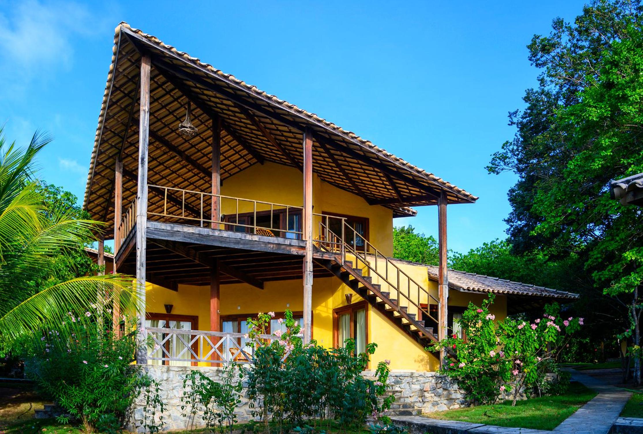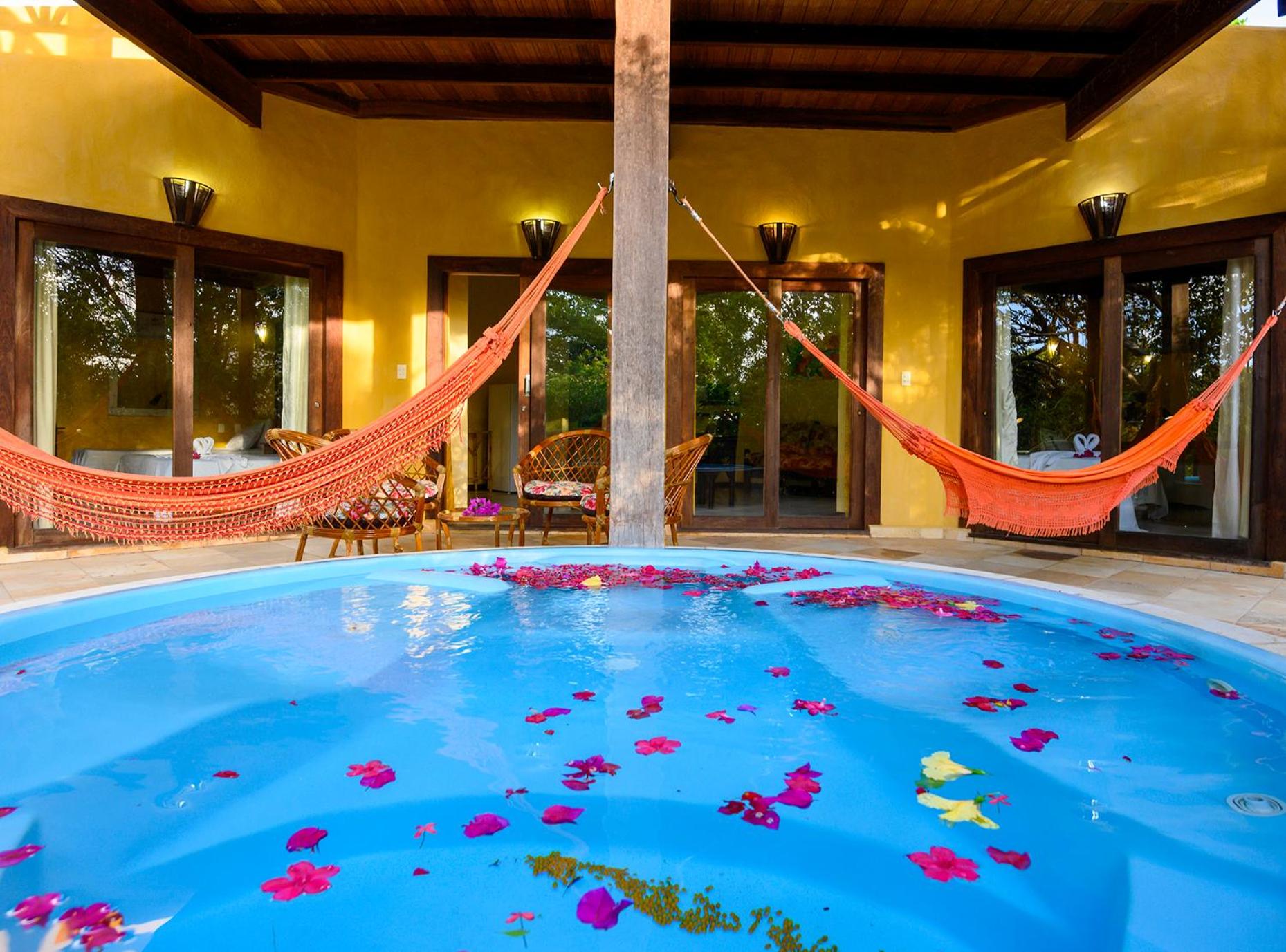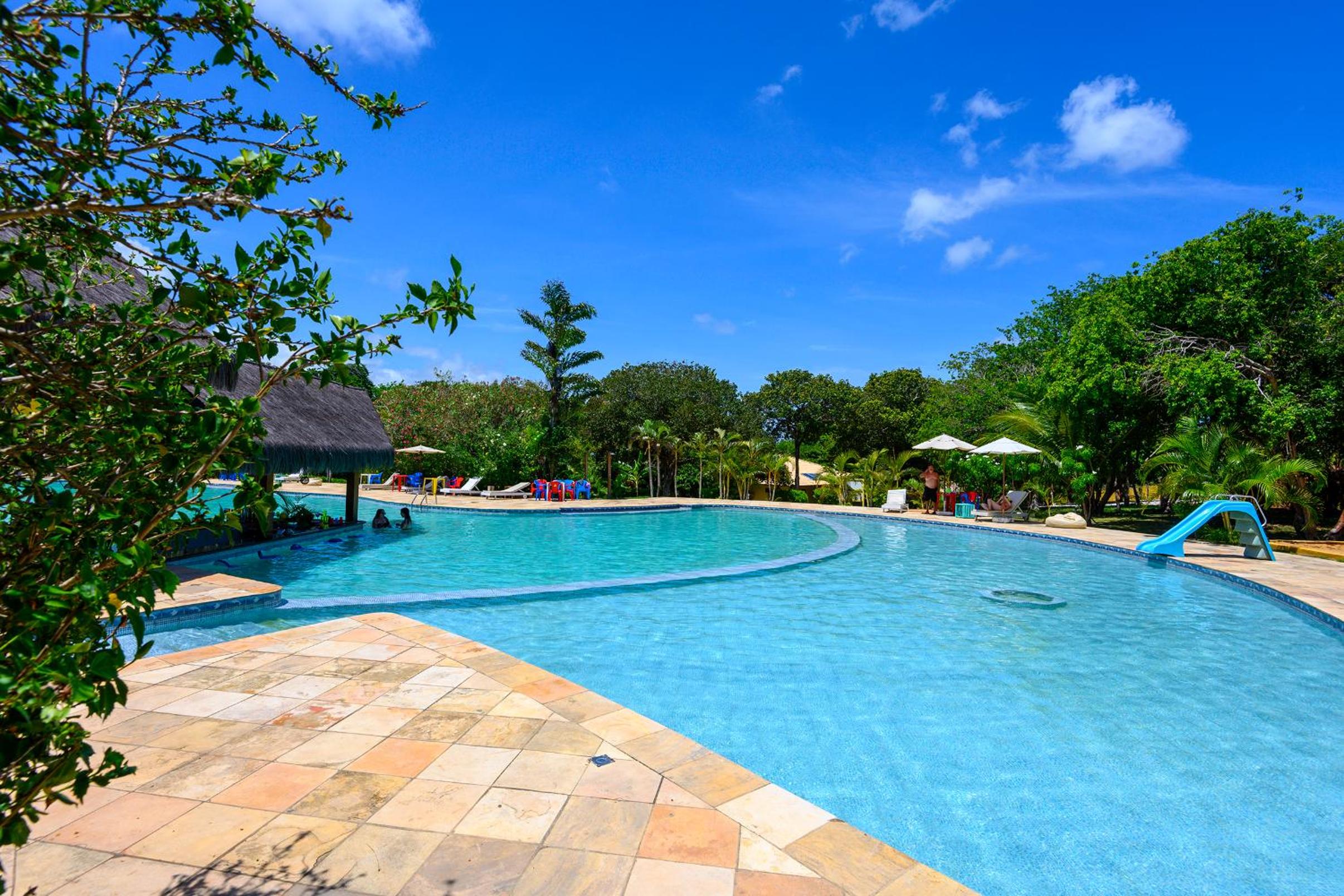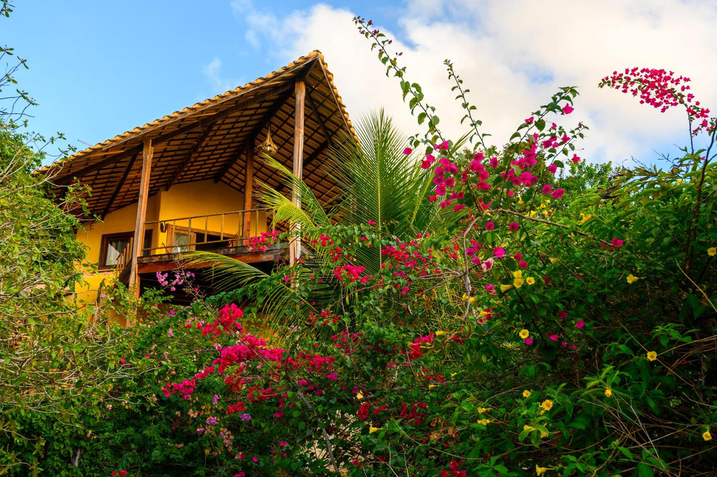 Lago Hotel in Pipa offers a unique experience, nestled in a large rainforest with native plants and fruit trees. The tranquil setting is perfect for a relaxing getaway.