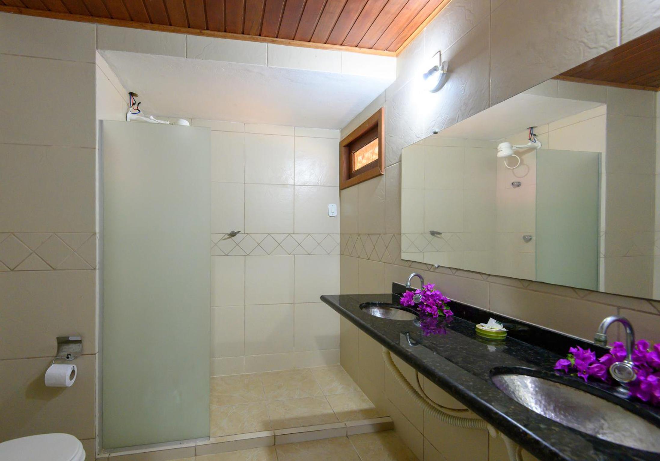 Banheiro sem local pra por sabonete, shampoo, toalha, la fora muito escuro a noite, distancia de onde o carro ficar pra o quarto espaço muito pouco meu carro é uma toro quase não consigo tirar devido os carro ficarem muito juntos, café da manhã muito tarde e sem organização pois os funcionarios chegam atrasados e somos obrigado a pede tempo esperando o cafe, traviseiro duro feito uma pedra, sem tomada pra carregar o celular.