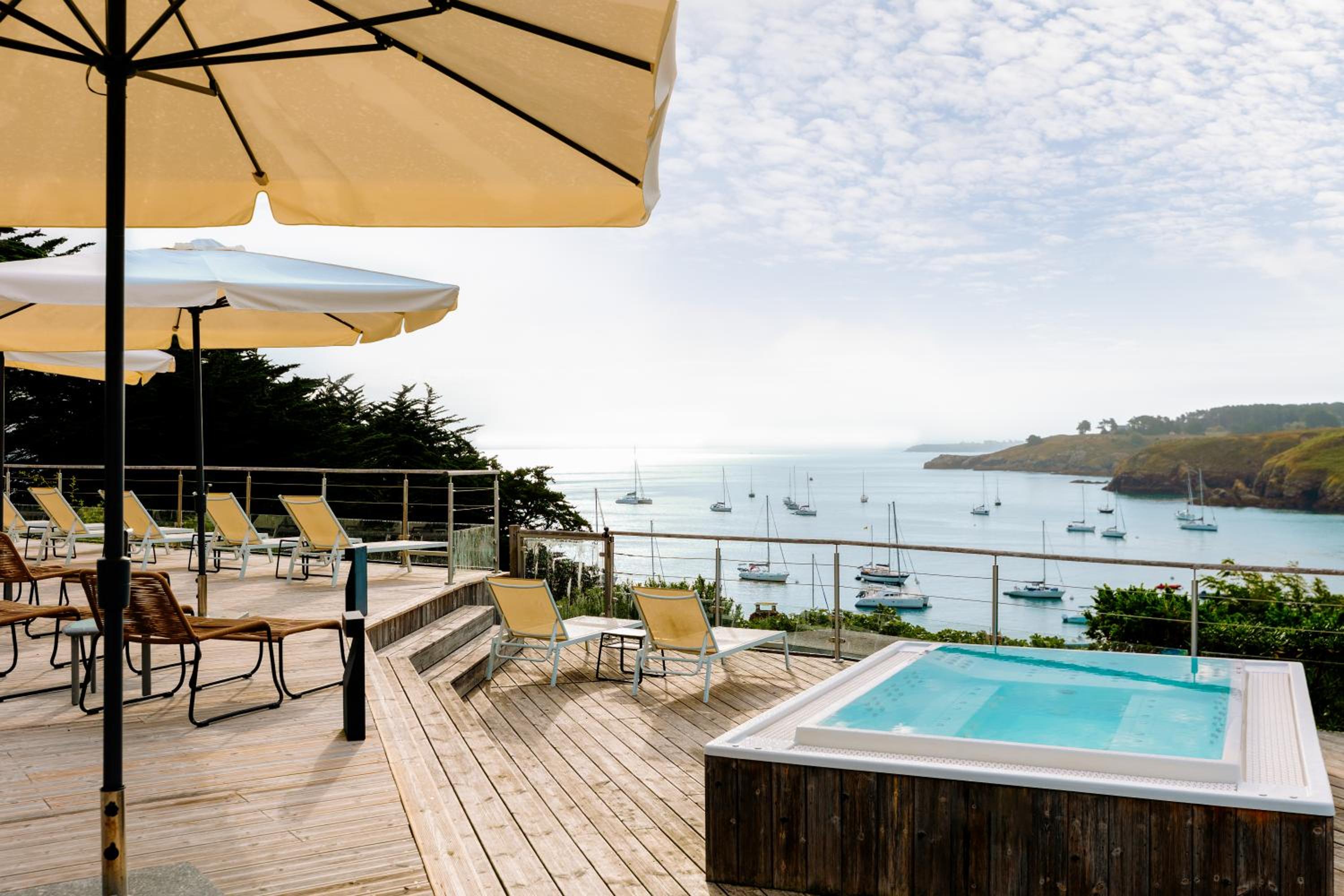 Le Cardinal Hotel, nestled on Sauzon Bay in Brittany, offers a serene escape with an outdoor pool, children’s playground, and a private beach.