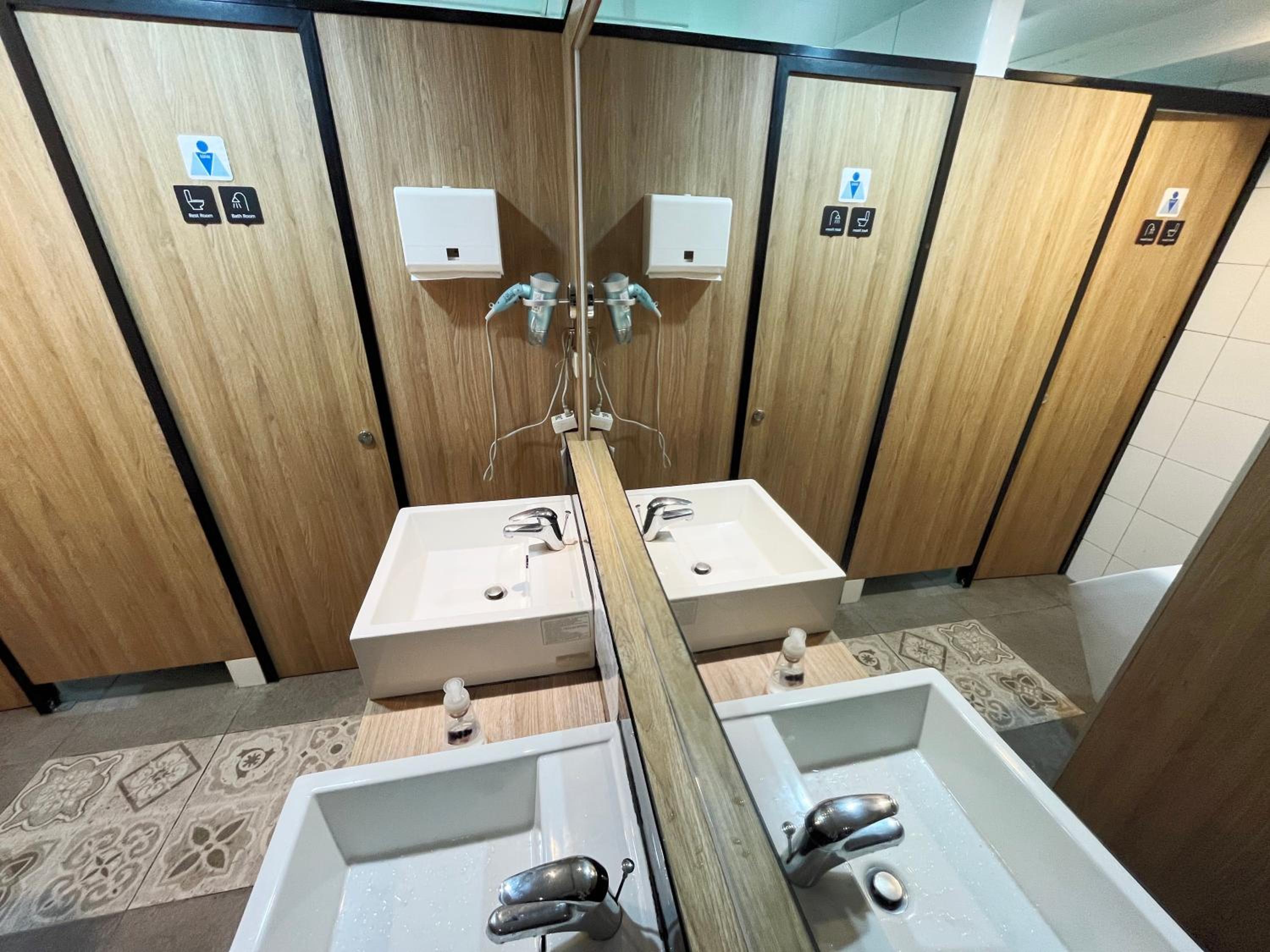 Die Gemeinschaftsbadezimmer sind wirklich etwas eklig, in jeder Damendusche lag ein faustgroßer Haarbüschel, Toiletten wurden nach dem großen Geschäft nicht geputzt, überall Haare auf dem Boden und im Waschbecken