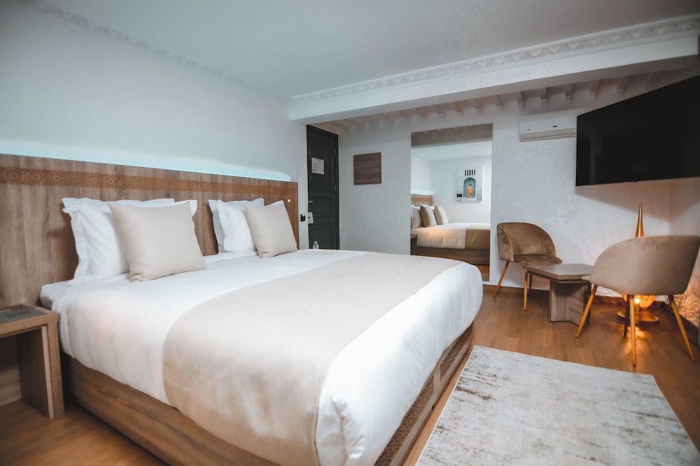PIOR EXPERIÊNCIA NO MARROCOS! Quando fizemos a reserva, não dizia que teria uma casa de festas noturna junto com o hotel, não tem nada disso na descrição! Não conseguimos dormir nada a noite toda, mesmo estando na suíte. O gerente Youssef disse que não iríamos escutar nenhum barulho a noite e nenhuma vibraca por estarmos na suíte, e que qualquer coisa poderia ligar diretamente para ele, mas o gerente é um mentiroso, não atendeu o telefone quando precisamos e os quartos eram muito barulhentos e vibrava tudo! Pior experiência da viagem!