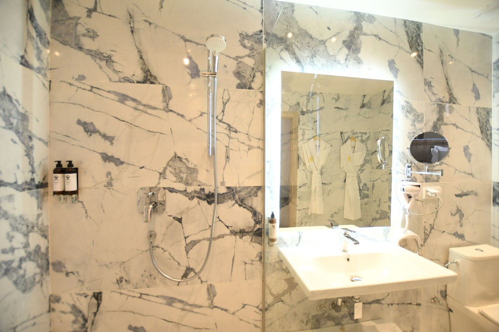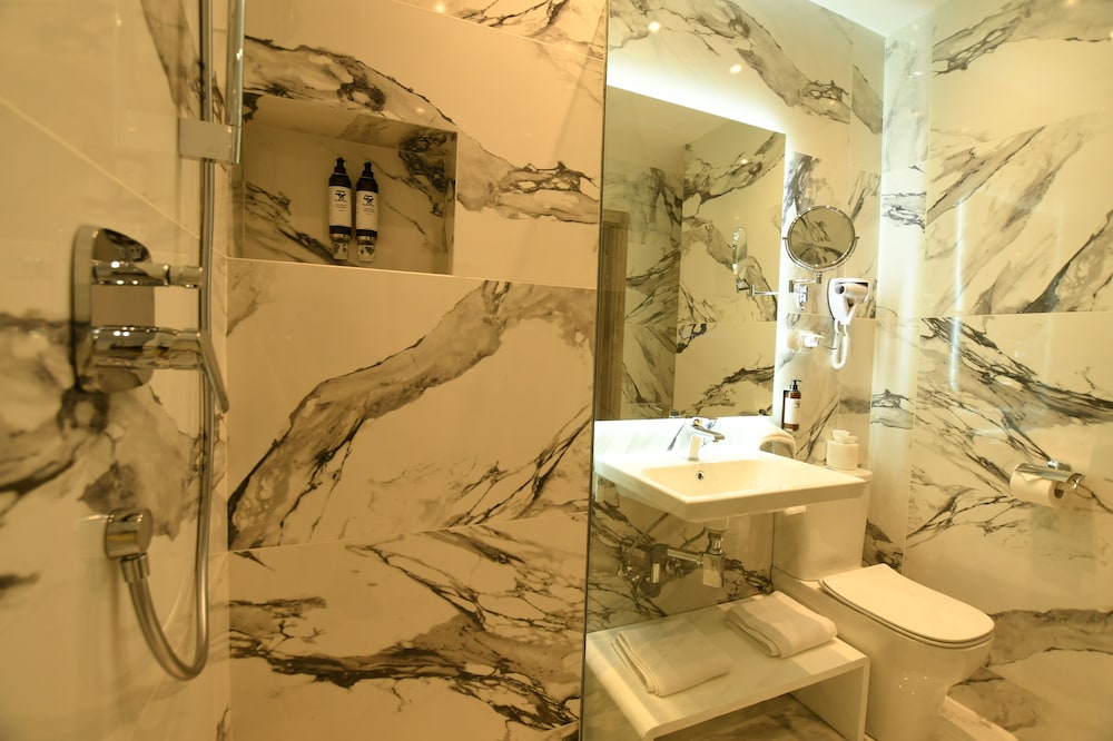 Night club next to the hotel,open from 12 till 5 am , no sleep as you could hear the loud music and the vibrations, in need of sound proof. Felt very uncomfortable every time you go up to the swimming you get searched by the security in case you have even a small bottle of water so they can sell you their own !!!! No fridge in the room . By the pool , guests allowed to sit in the pool with drinks in glass !!! And smoking by the edge of the pool. Tendency to favour Frensh guests over other nationalities ! No lift in the property consisting of three floors which is not mentioned in their brochures. In general guest should be informed that in advance that it is very hard to get a good night sleep due to the vibrations and the super loud music from the night club.the property is amazing only been opened for six months but still lots of work to be done regarding the health , safety and the well being of the guests. Cameras everywhere which is good but not in the public toilet !! Where else they have cameras ????many times I and other guests slipped in the pool and I have lots of photos and videos to confirm all of this. I personally will not recommend this hotel to any of my friends or relatives. My shower wa