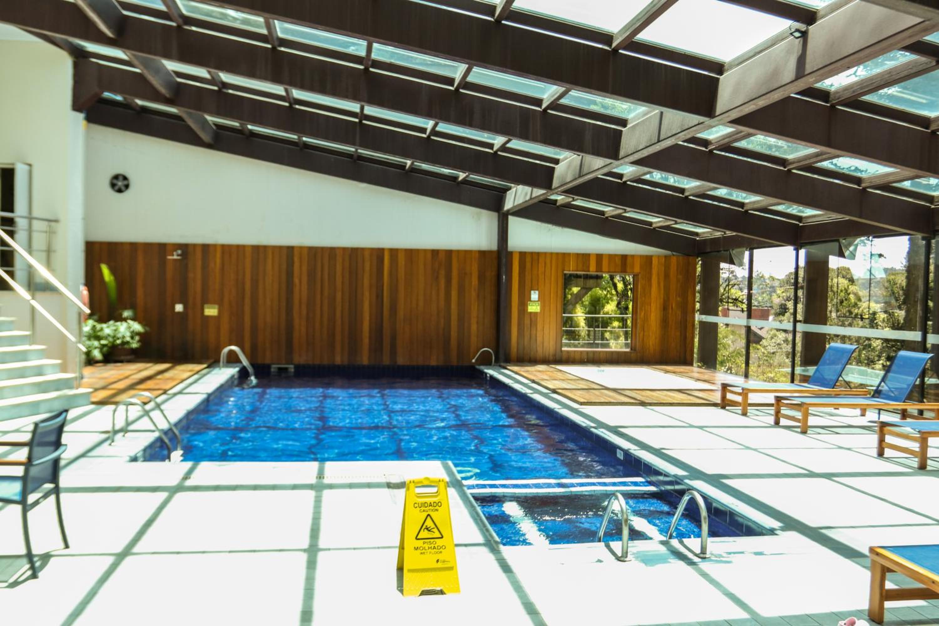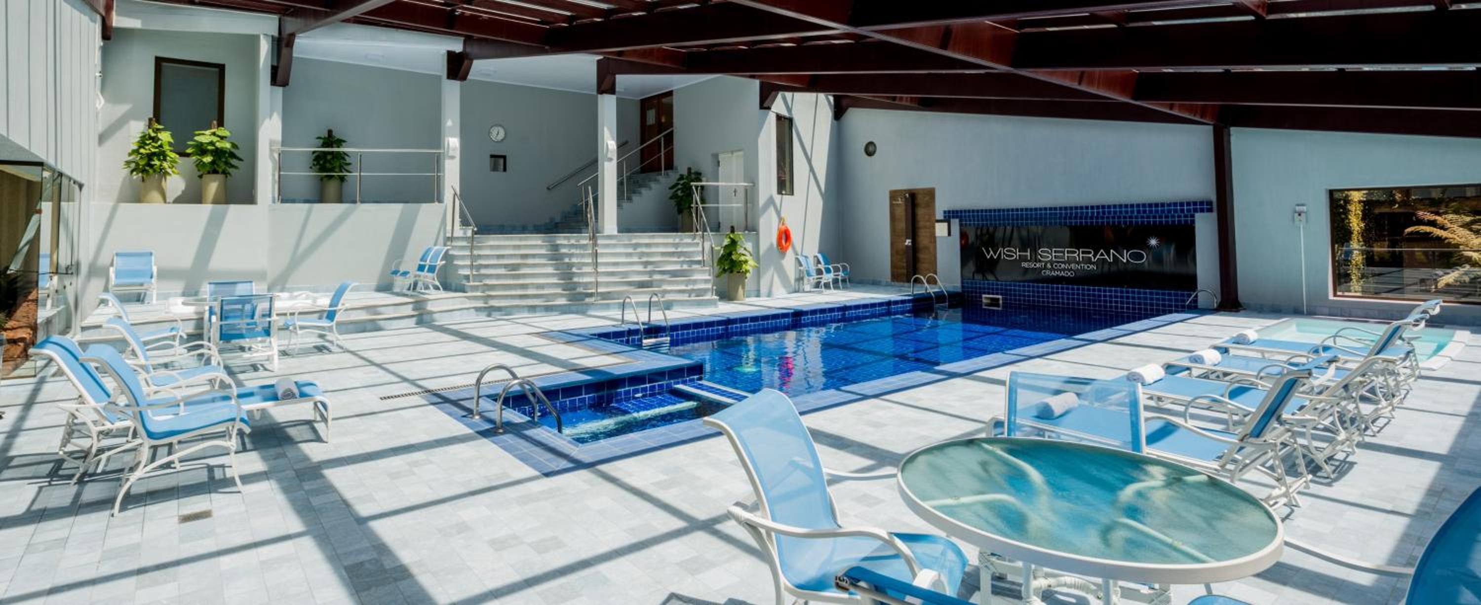Hotel Serrano Gramado offers a range of luxurious amenities such as a hot tub, sauna, and both indoor and outdoor pools for a relaxing stay.