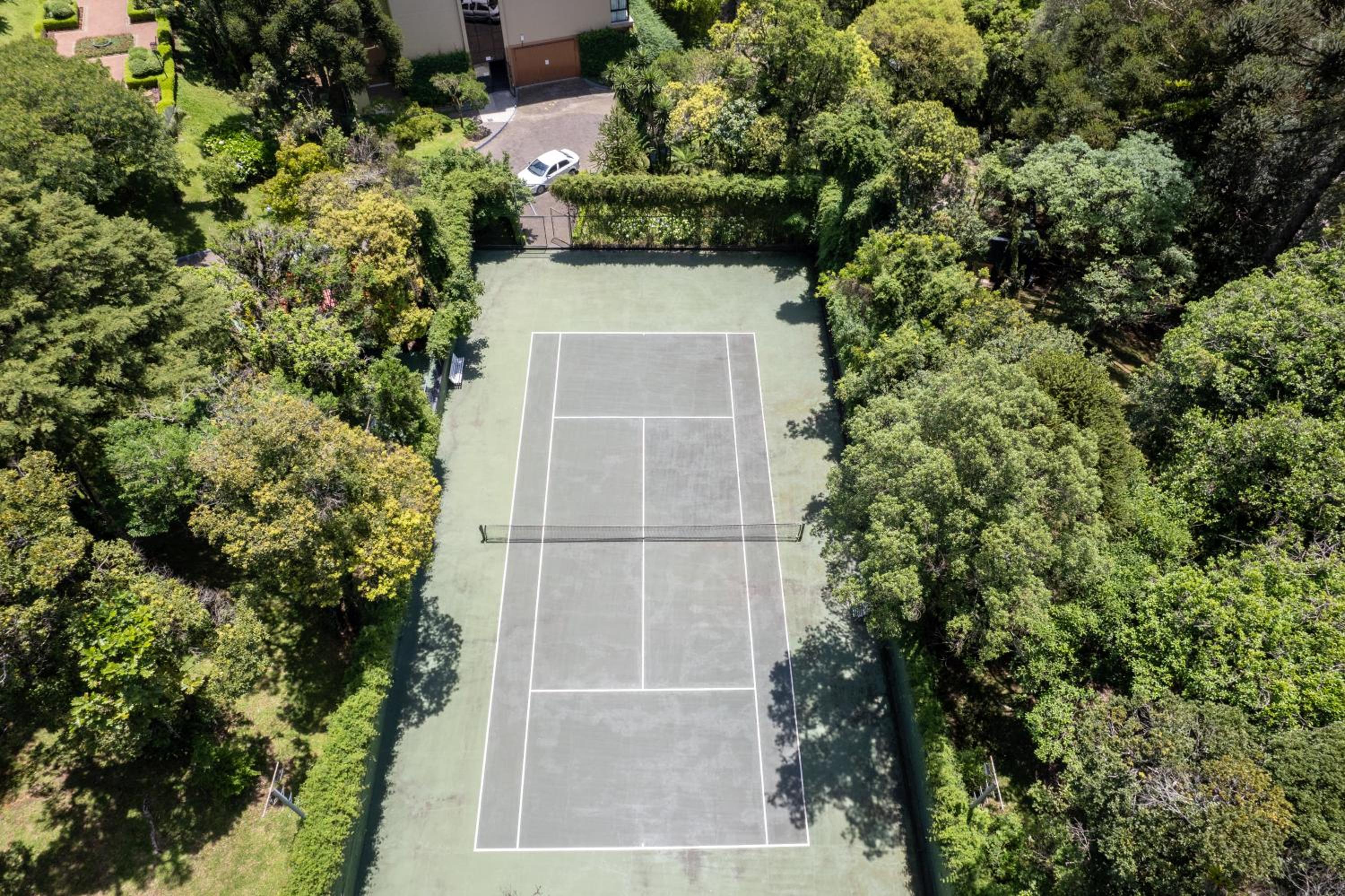El hotel tiene varios espacios, piscina, tenis, espacios verdes con pasillos para caminar