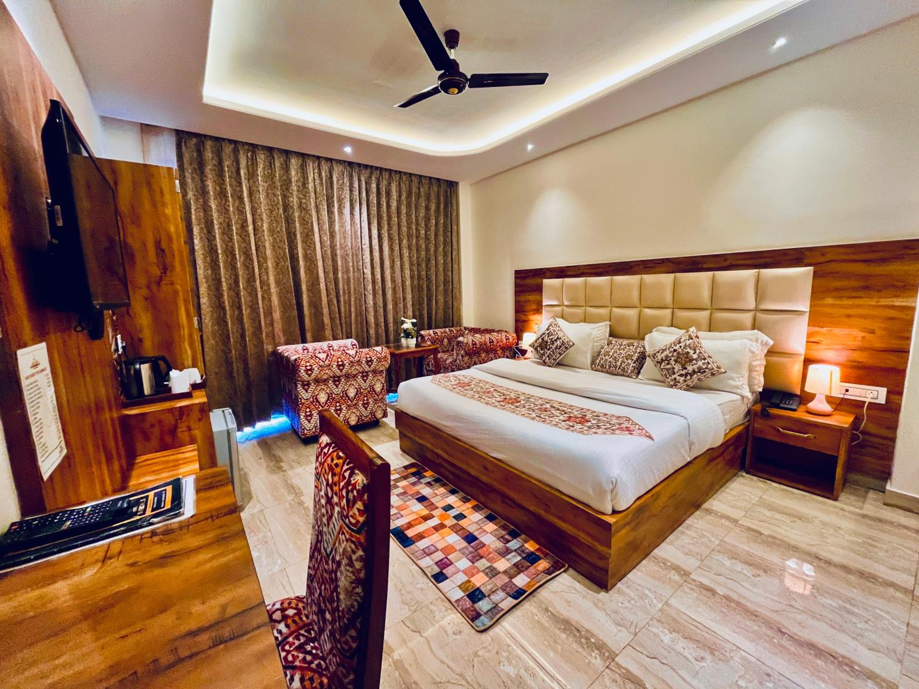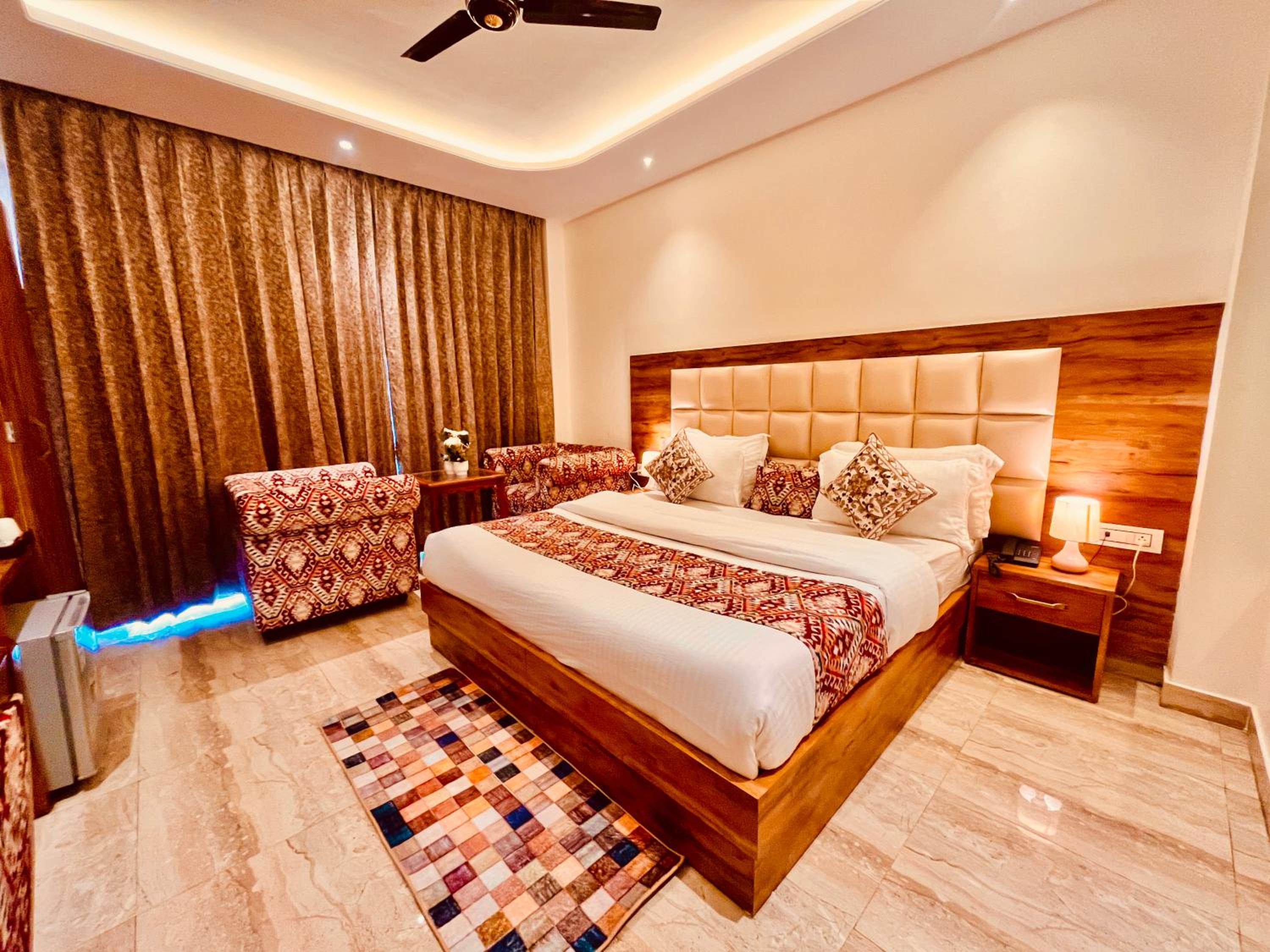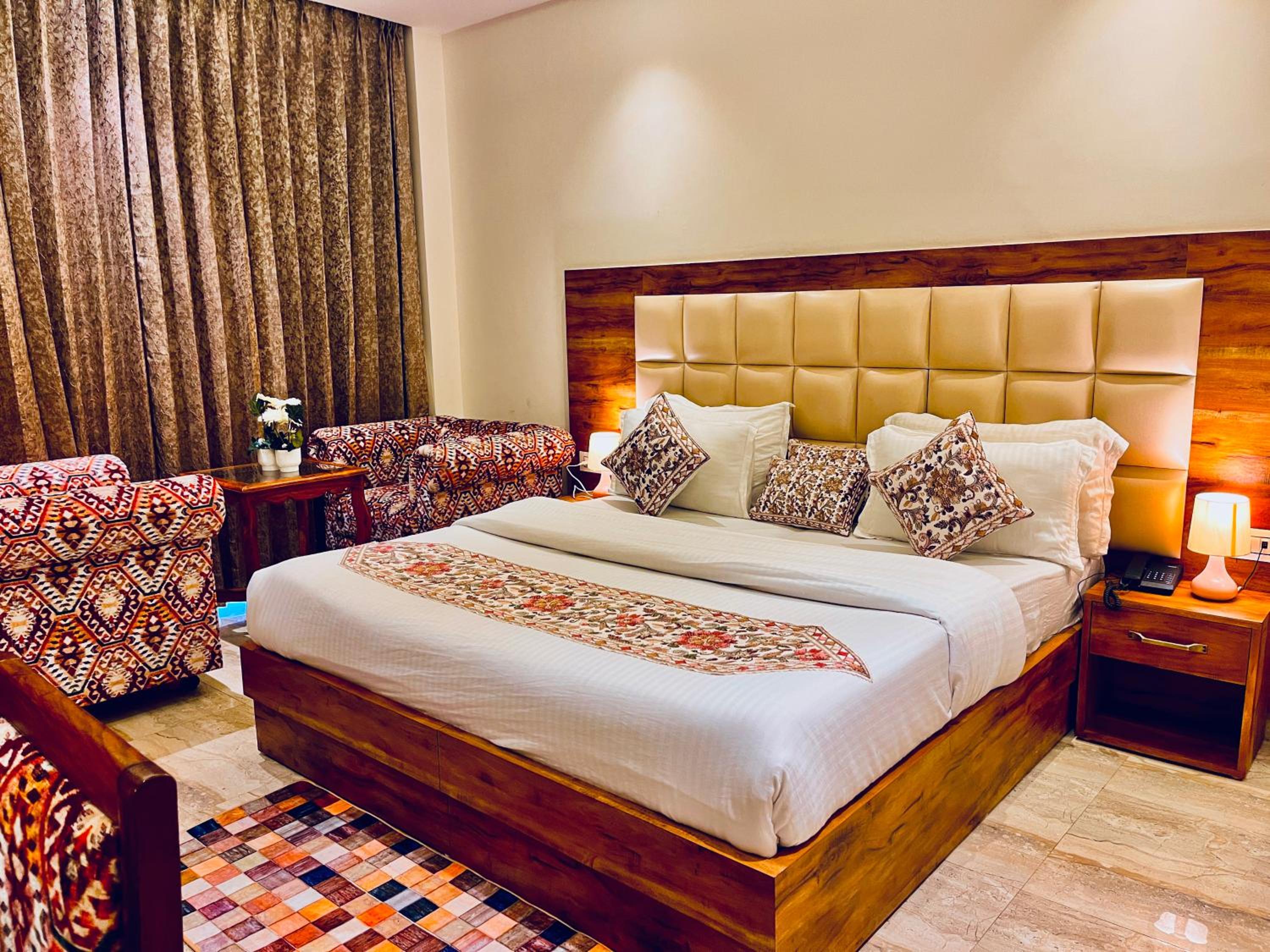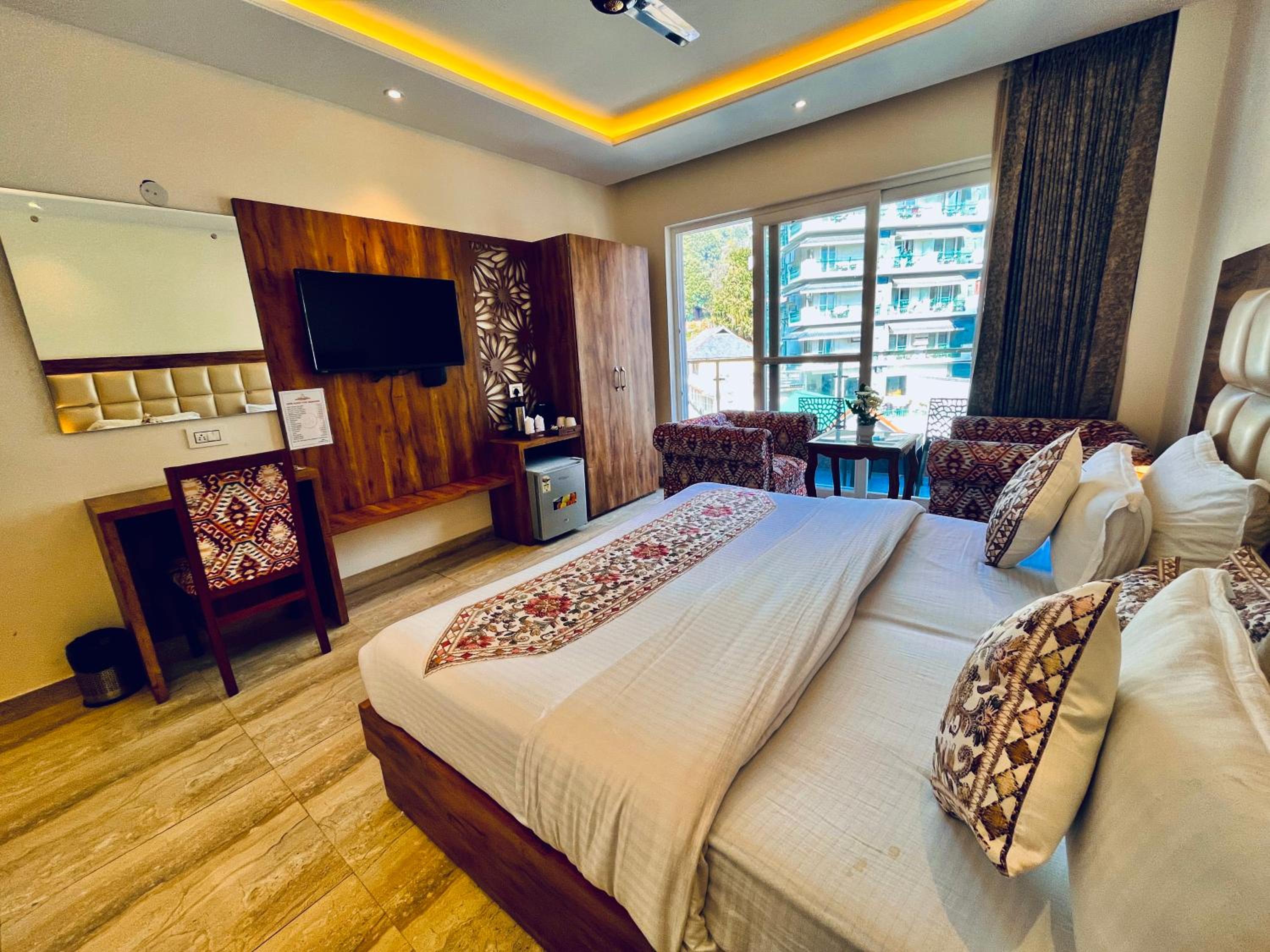 Enjoy the lavish and luxury rooms at Maclo Classic Luxury Resort, each with a private balcony offering stunning views of the surrounding mountains.