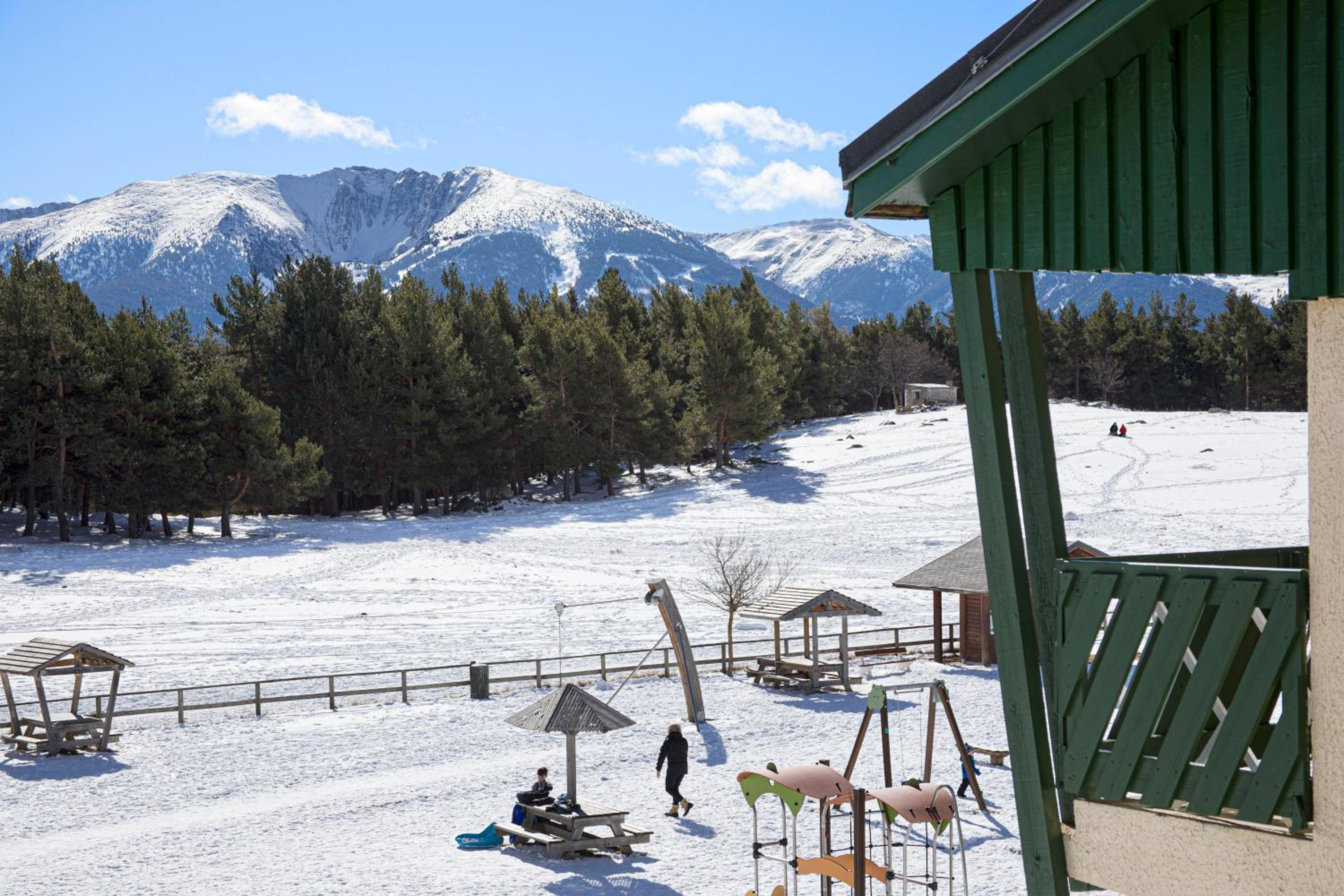 La ubicación entre las pistas, un parque infantil y un bosque de pinos precioso. Es tranquilo y las terrazas van muy bien.