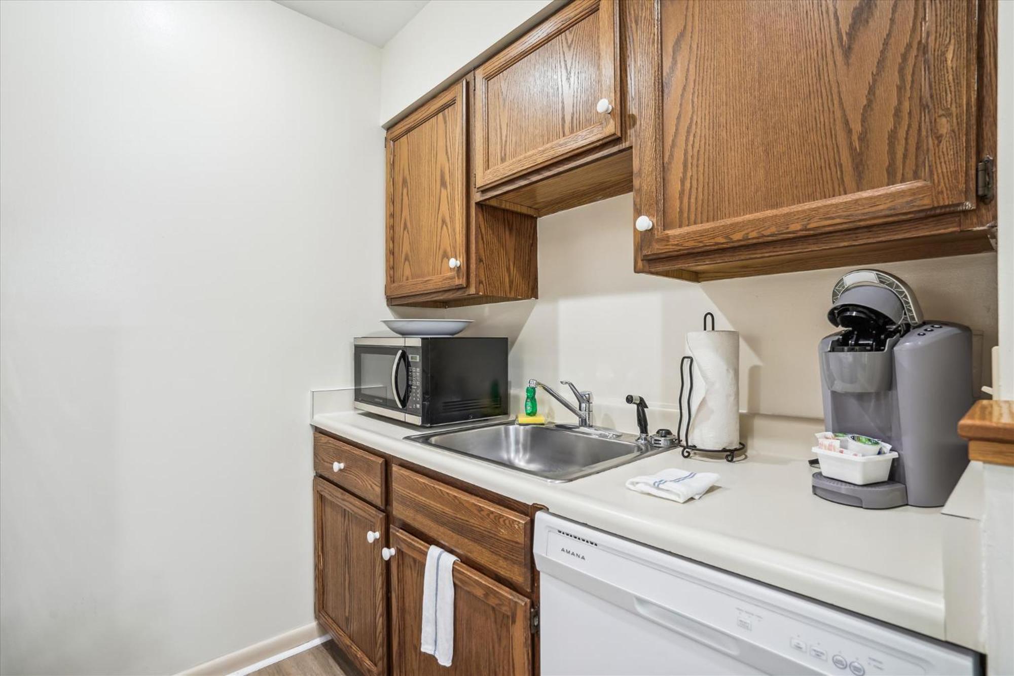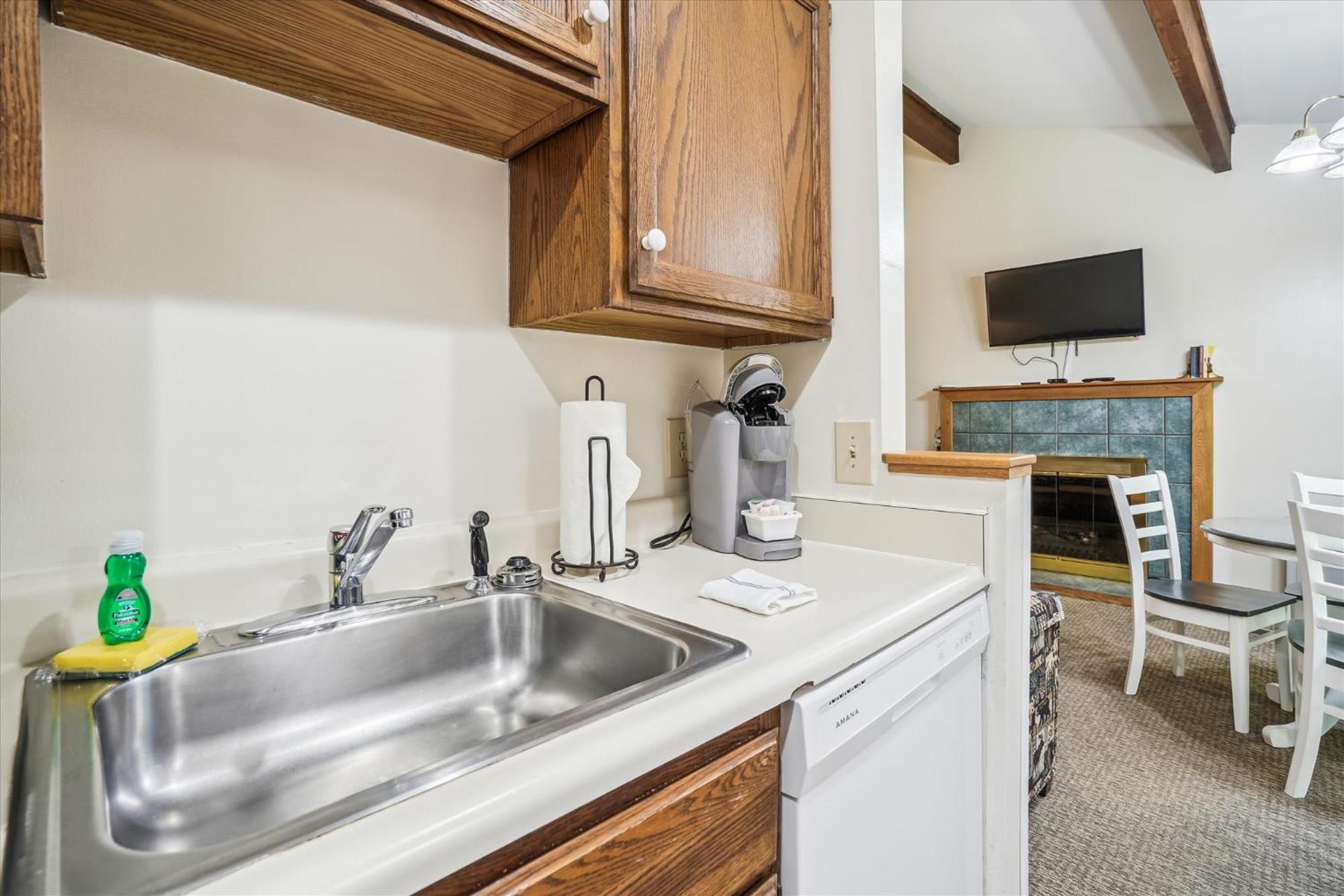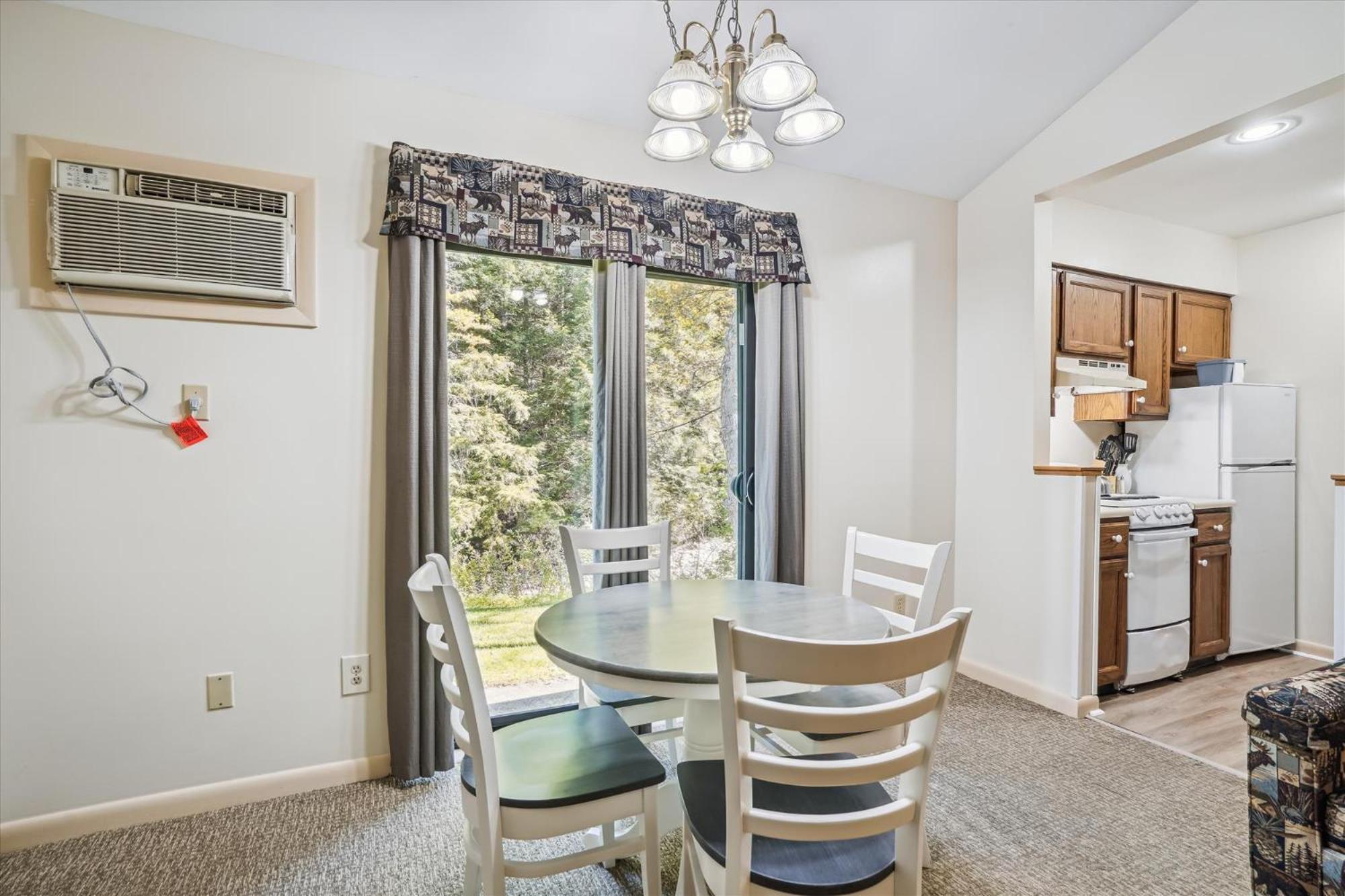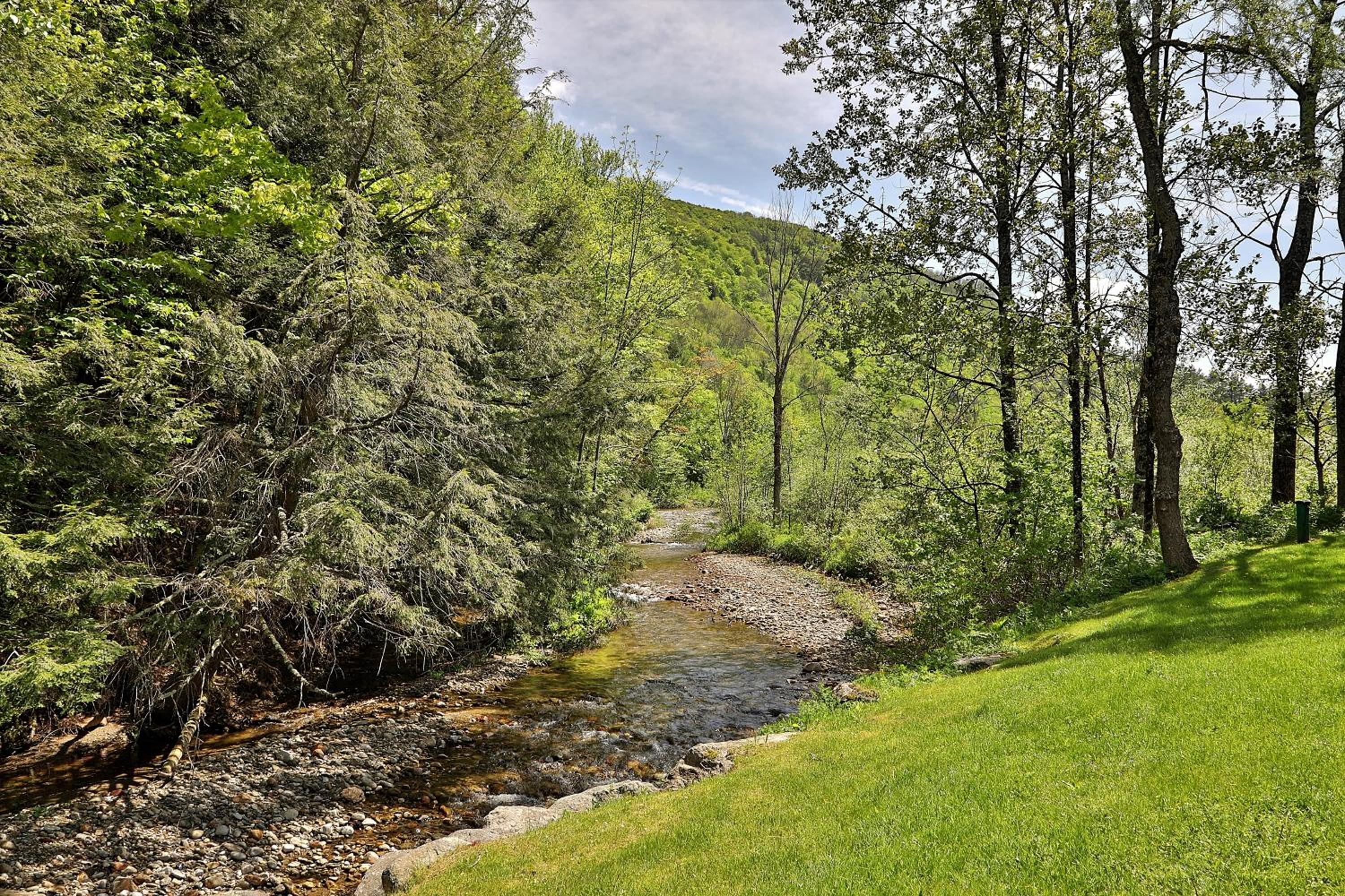 Large comfortable one bedroom apartment with fully stocked kitchen. Great deck facing stream.