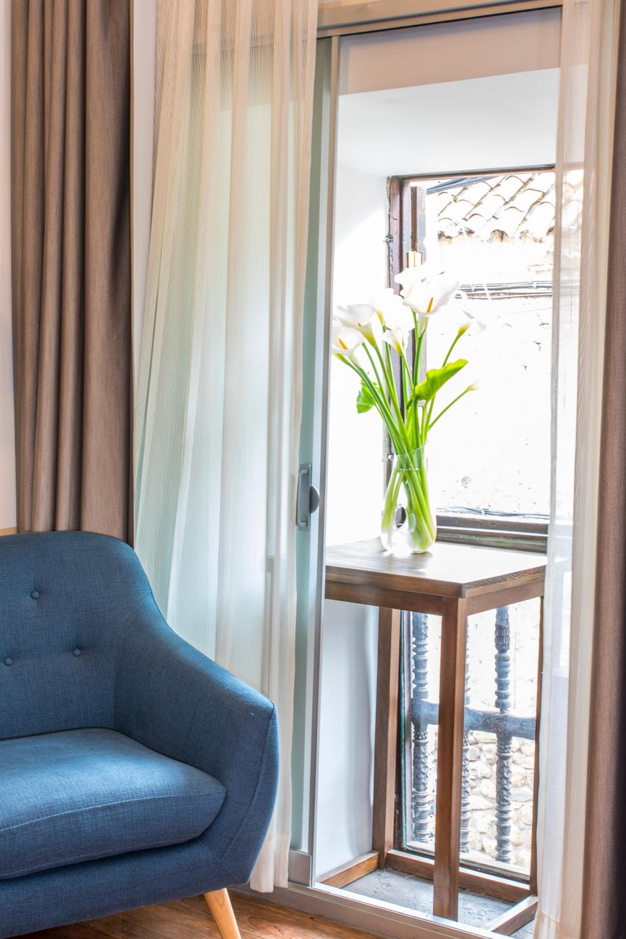 Very tastefully decorated, great breakfast, quirky art, warm and welcoming staff. The rooms are fitted out with water, snacks and toiletries that are all refreshed daily. Door man on 24/7 to let you in. Street can be a little noisy but they have doubled glazed the windows. There is a pharmacy and laundry within 50 meters. Walk to Plaza de Alms in 5-10 mins. Bring raincoat for the showers. Love it here