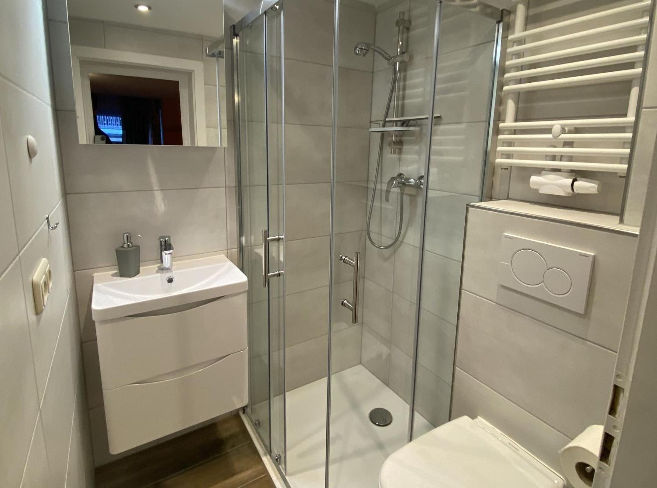 A very cozy place. Fast and independent check-in. Clean room and bathroom. The kitchen is shared, but it seems we were the only ones in the hotel, and this was not a problem for us. The kitchen has everything you need. A very nice balcony with a picturesque view of the city. Free parking. Dog friendly!