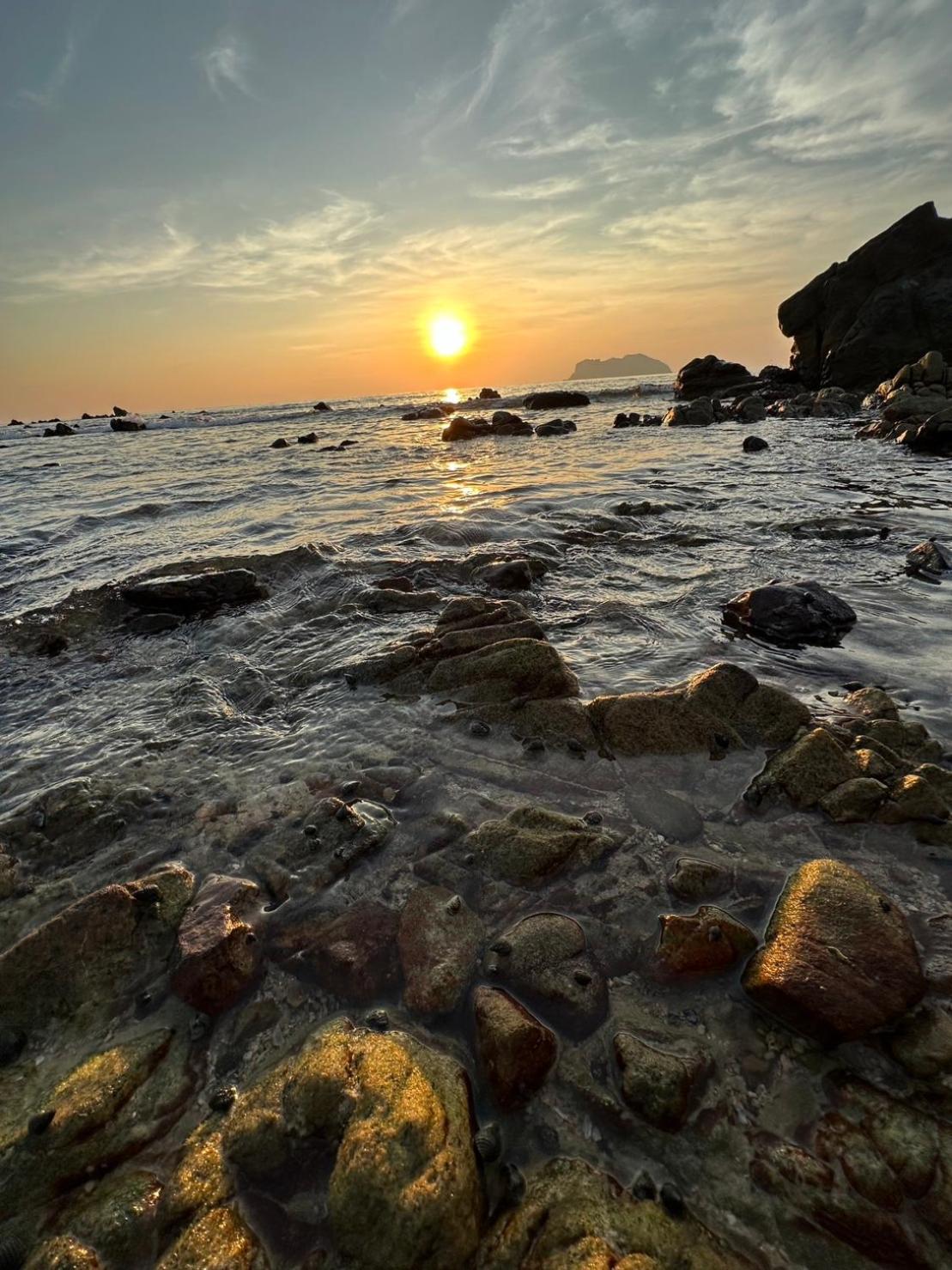 Het hotel had een mini stukje strand verder veel rotsen.