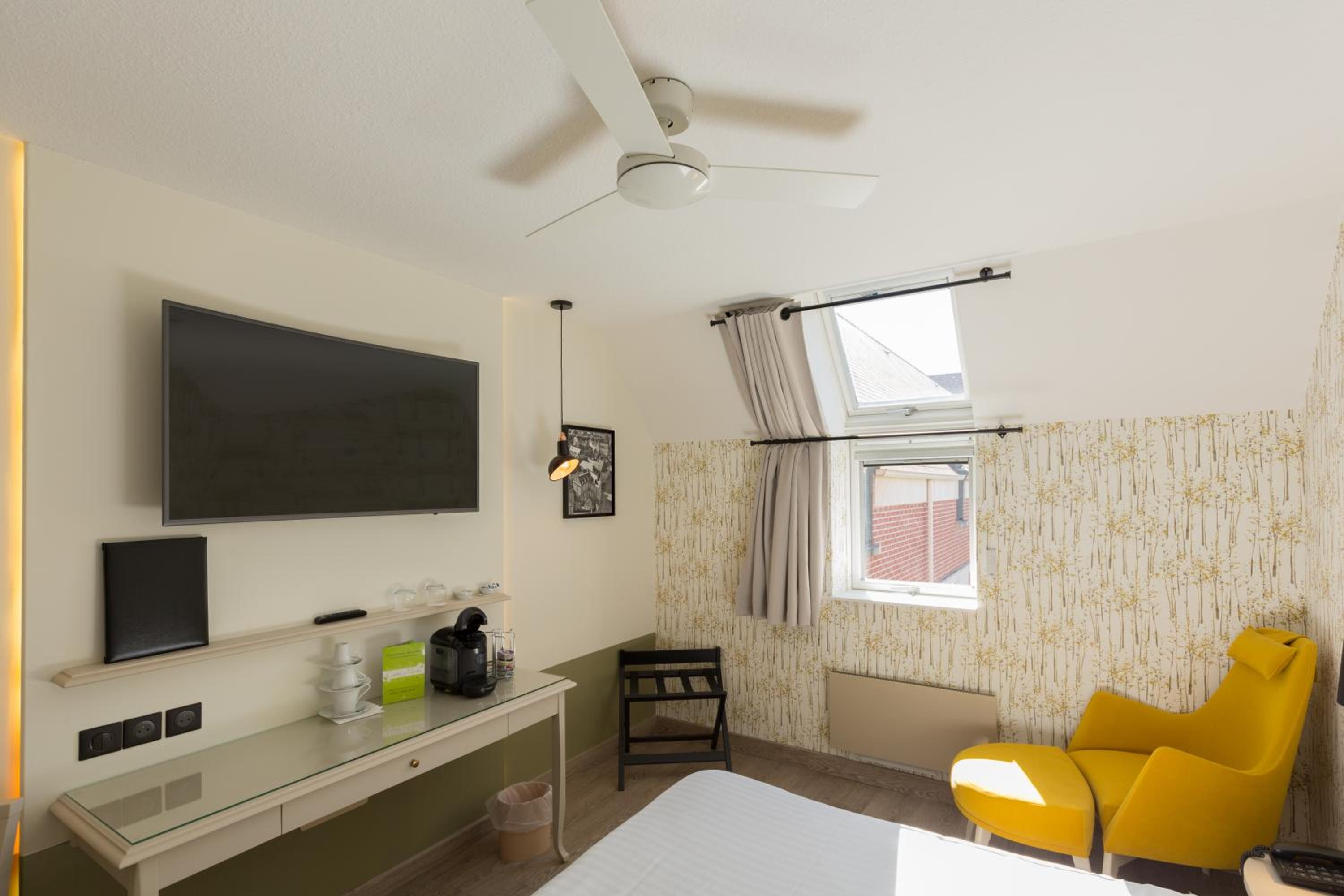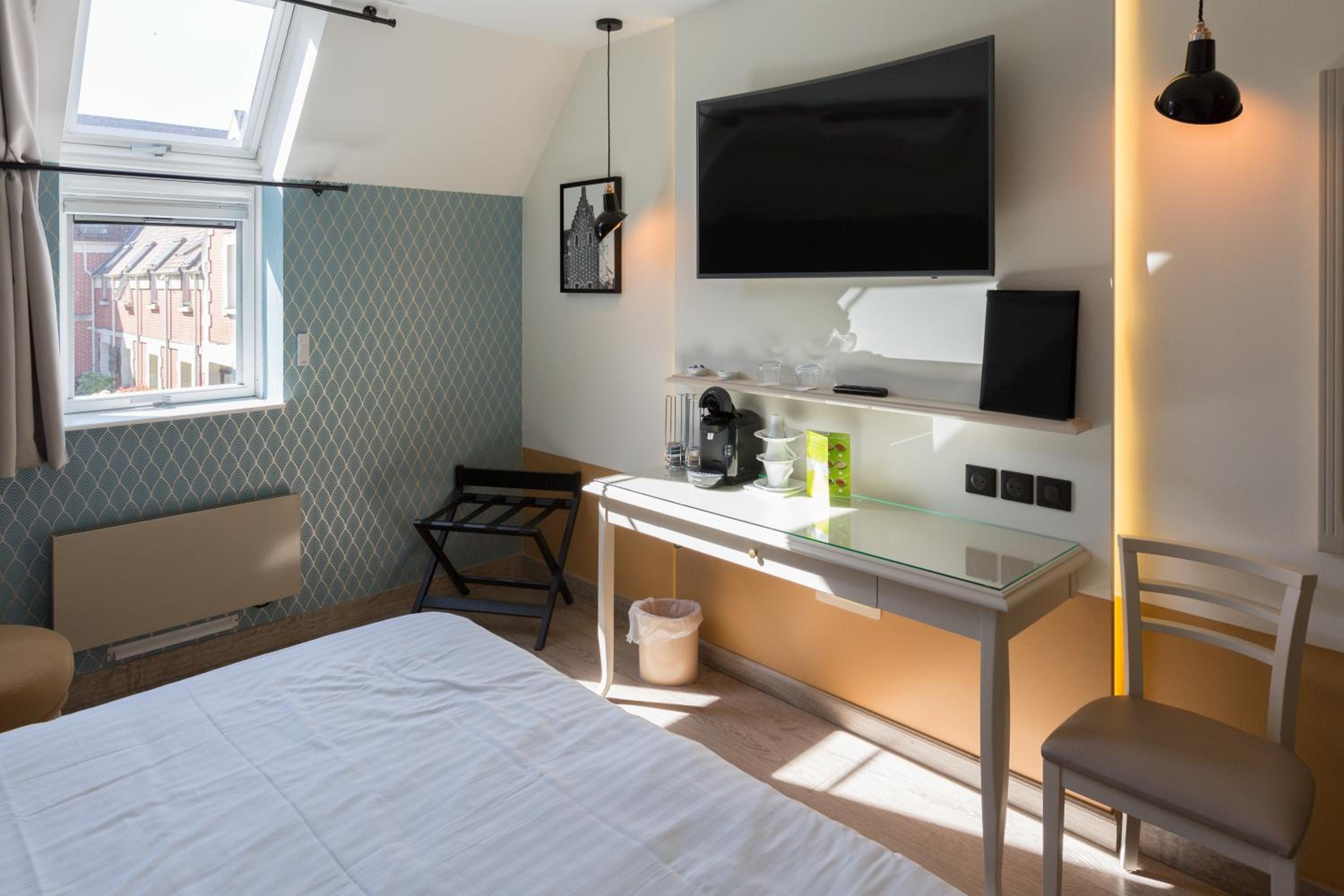 Very central in Noyon, secure cycle storage, comfortable bed, helpful receptionist. And there was a coffee machine in the bedroom. Great view of the cathedral from the hotel.
